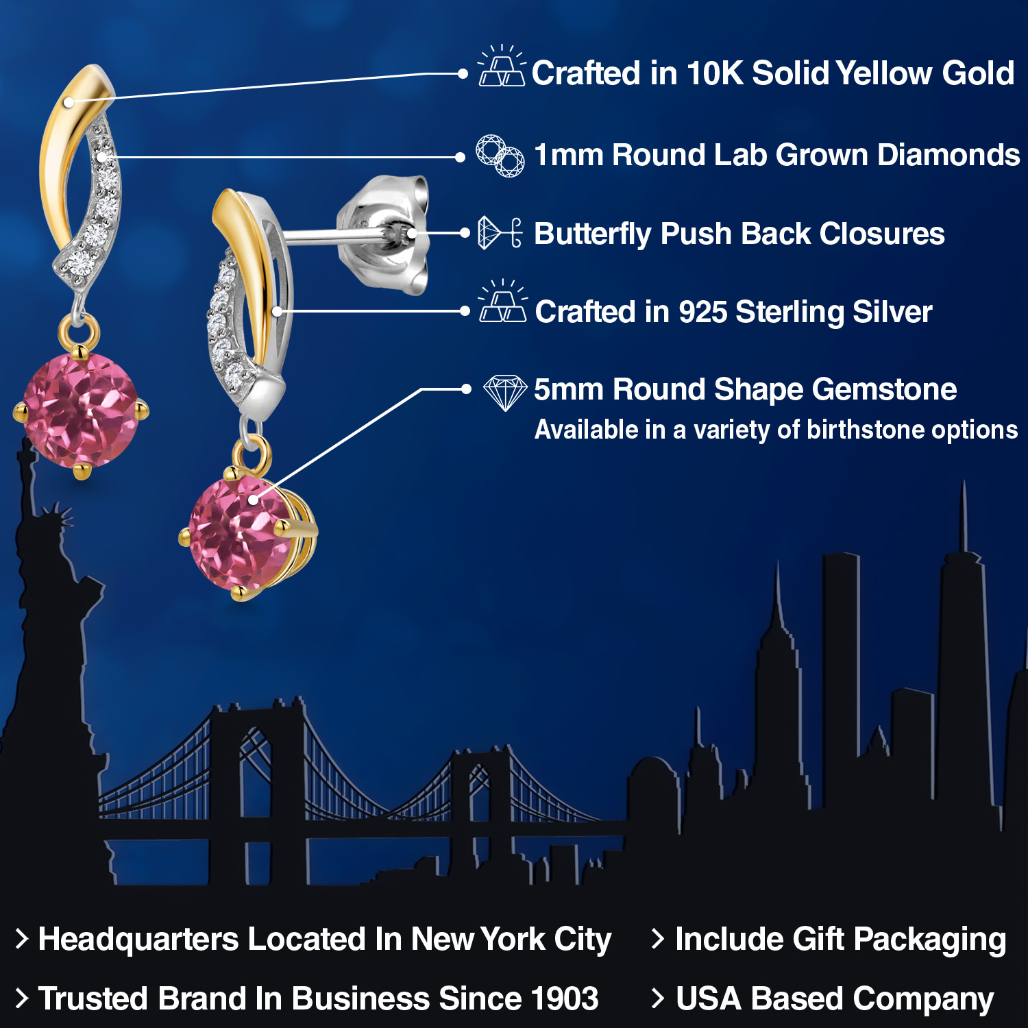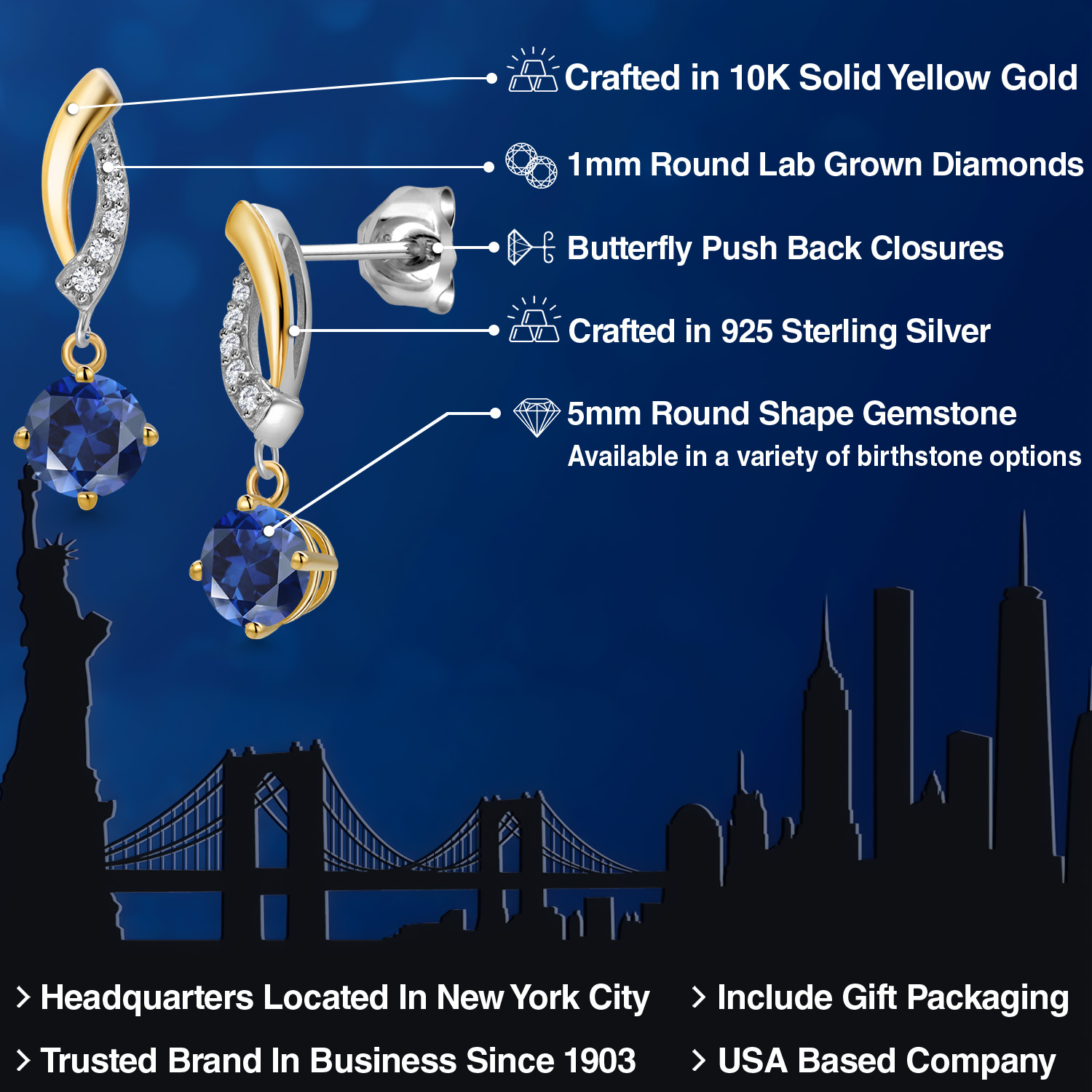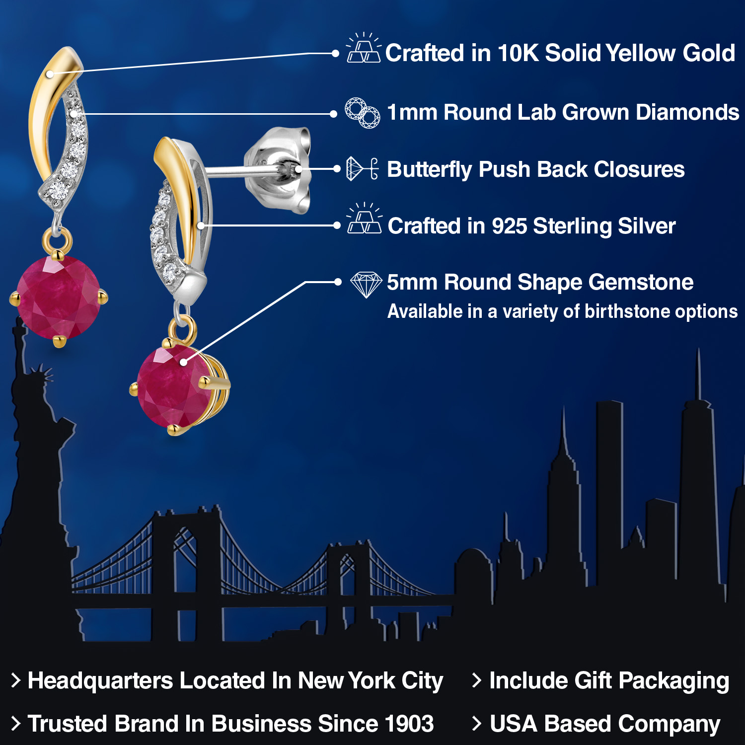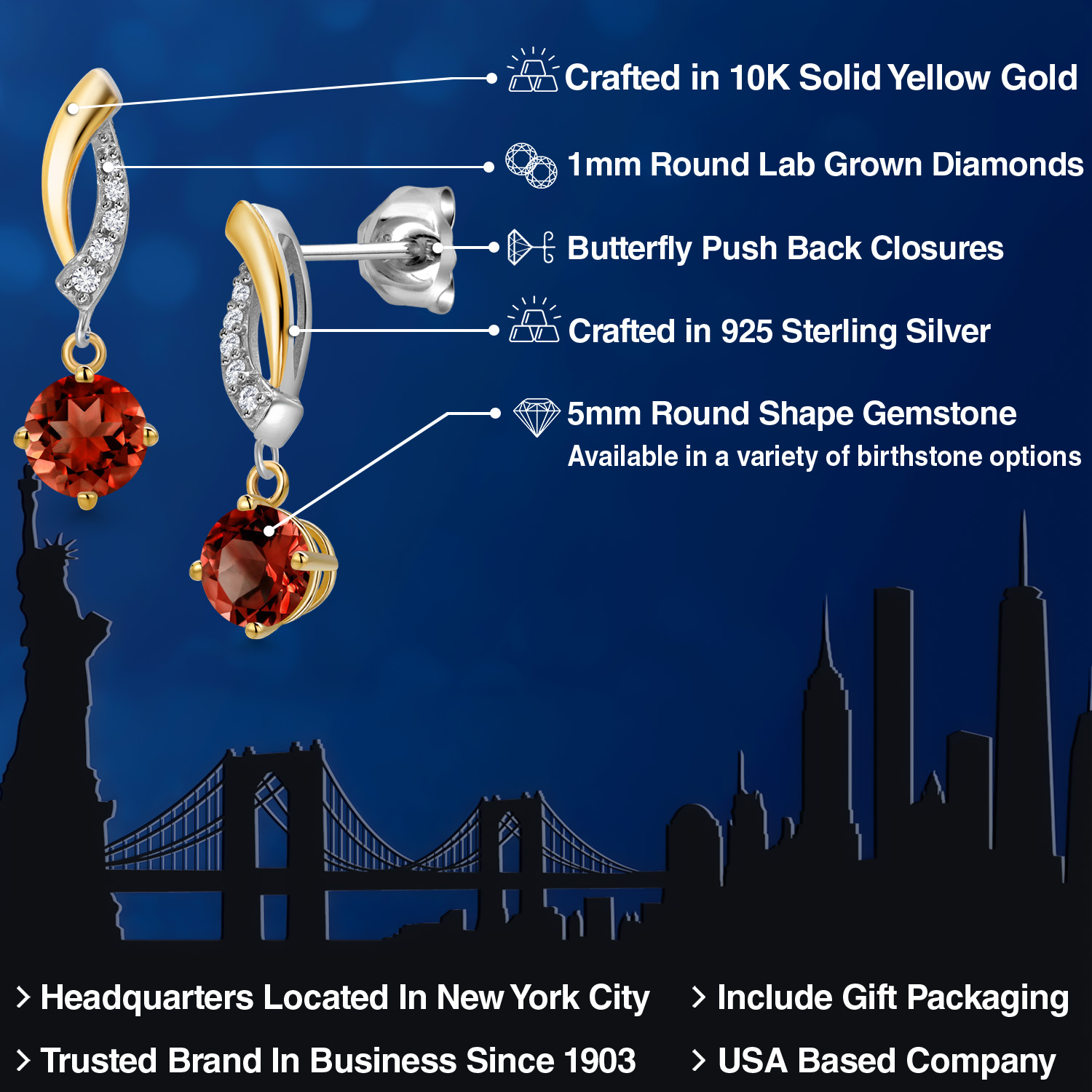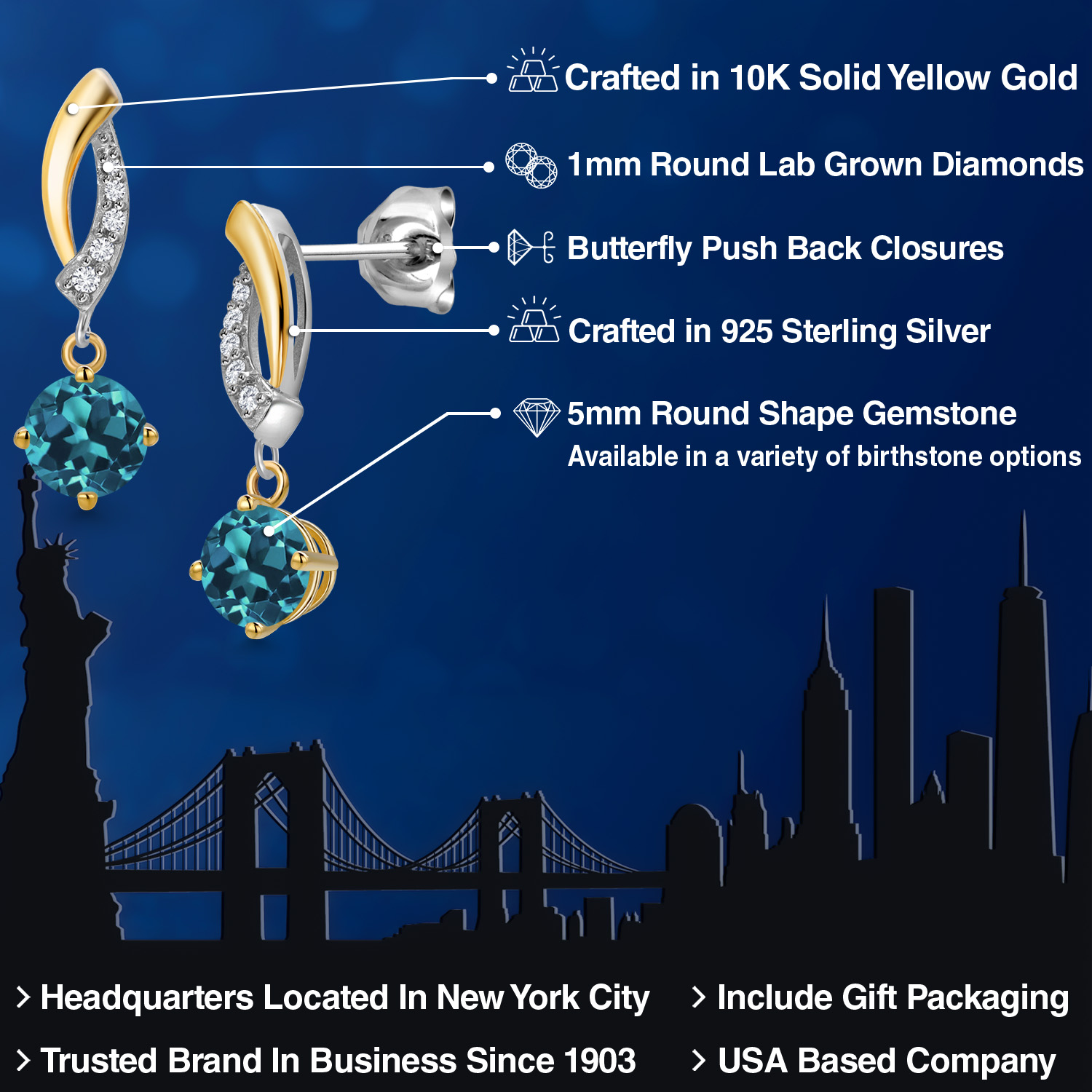 DAZZLING CUSTOMIZABLE GEMSTONES: Adorned with a mesmerizing 5MM round gemstone, these earrings offer the perfect blend of personalization and brilliance. Choose from a variety of vibrant birthstones, each carefully selected to enhance its radiant glow. The rich hues of the stones catch the light beautifully, making these earrings a striking statement piece that adds an elegant, personal touch to any outfit or occasion.