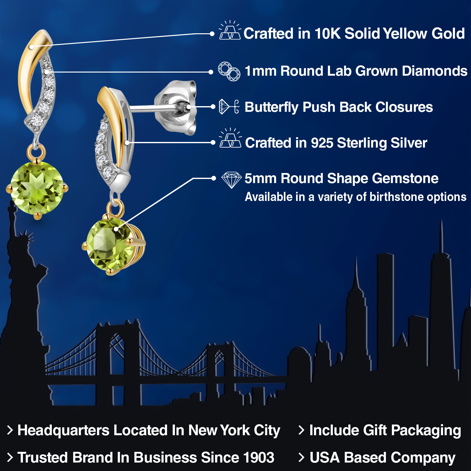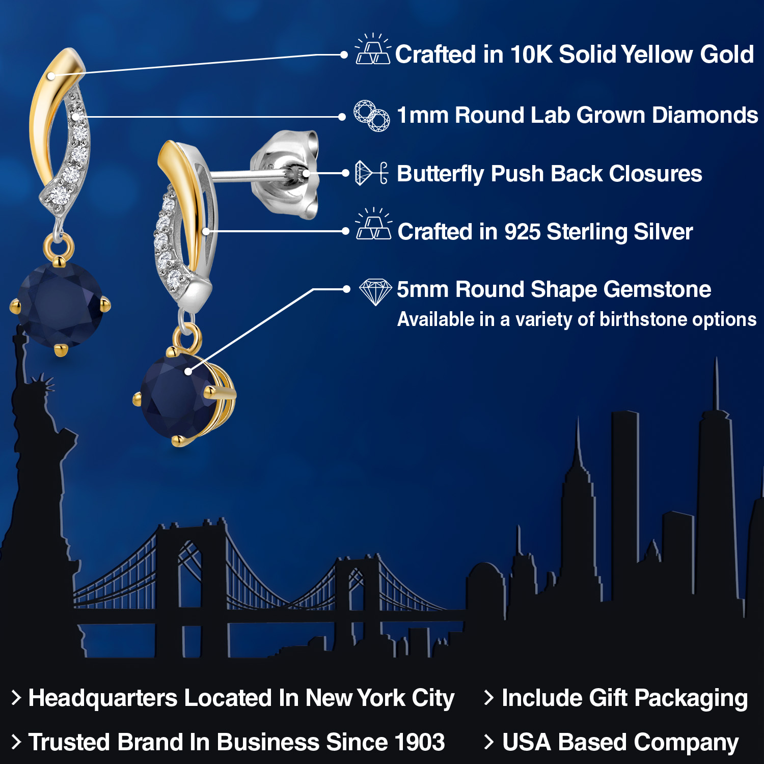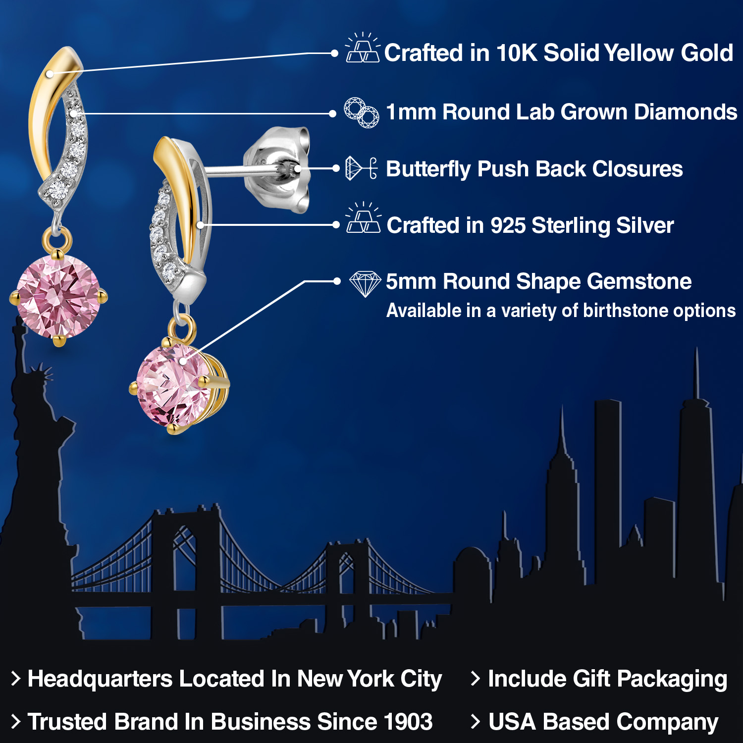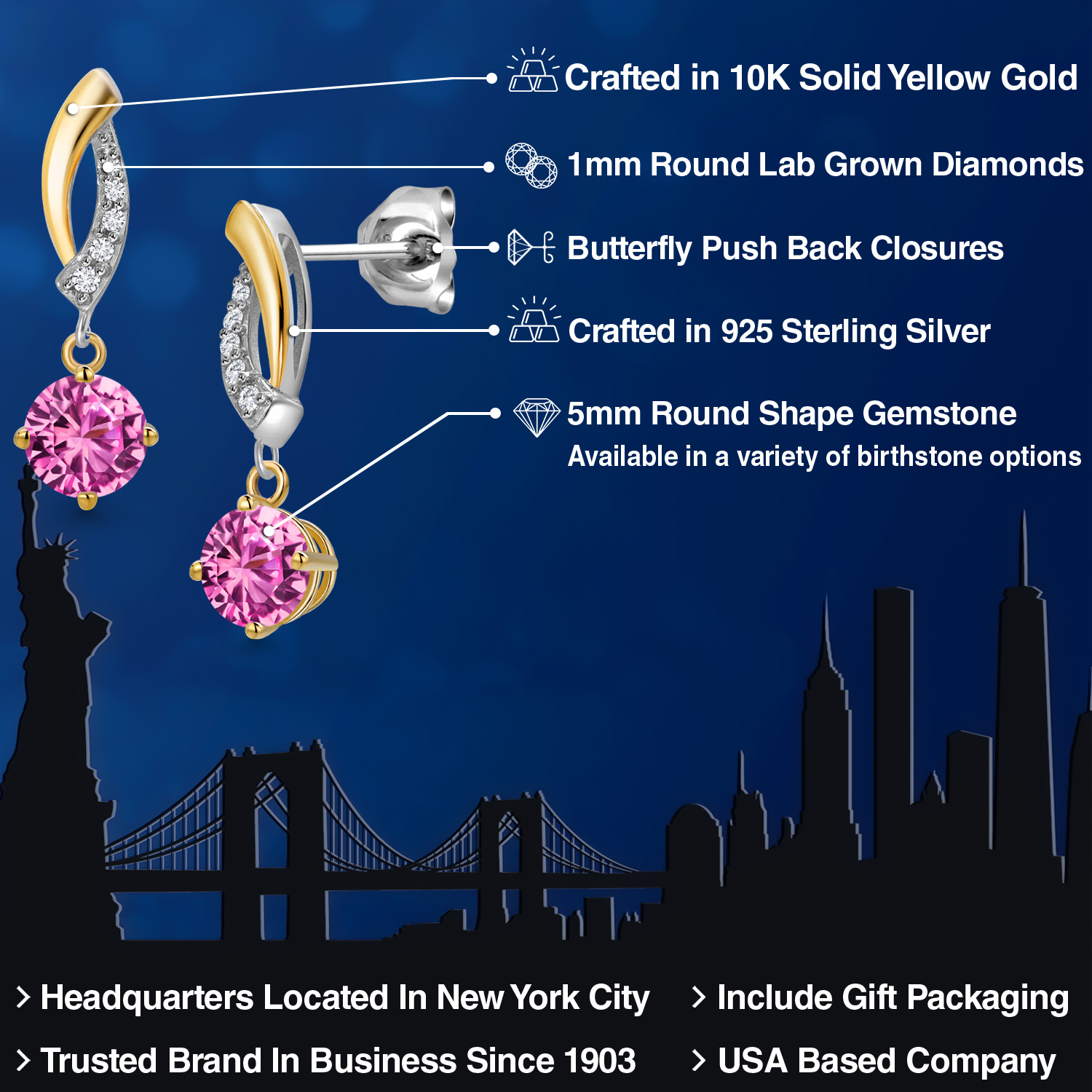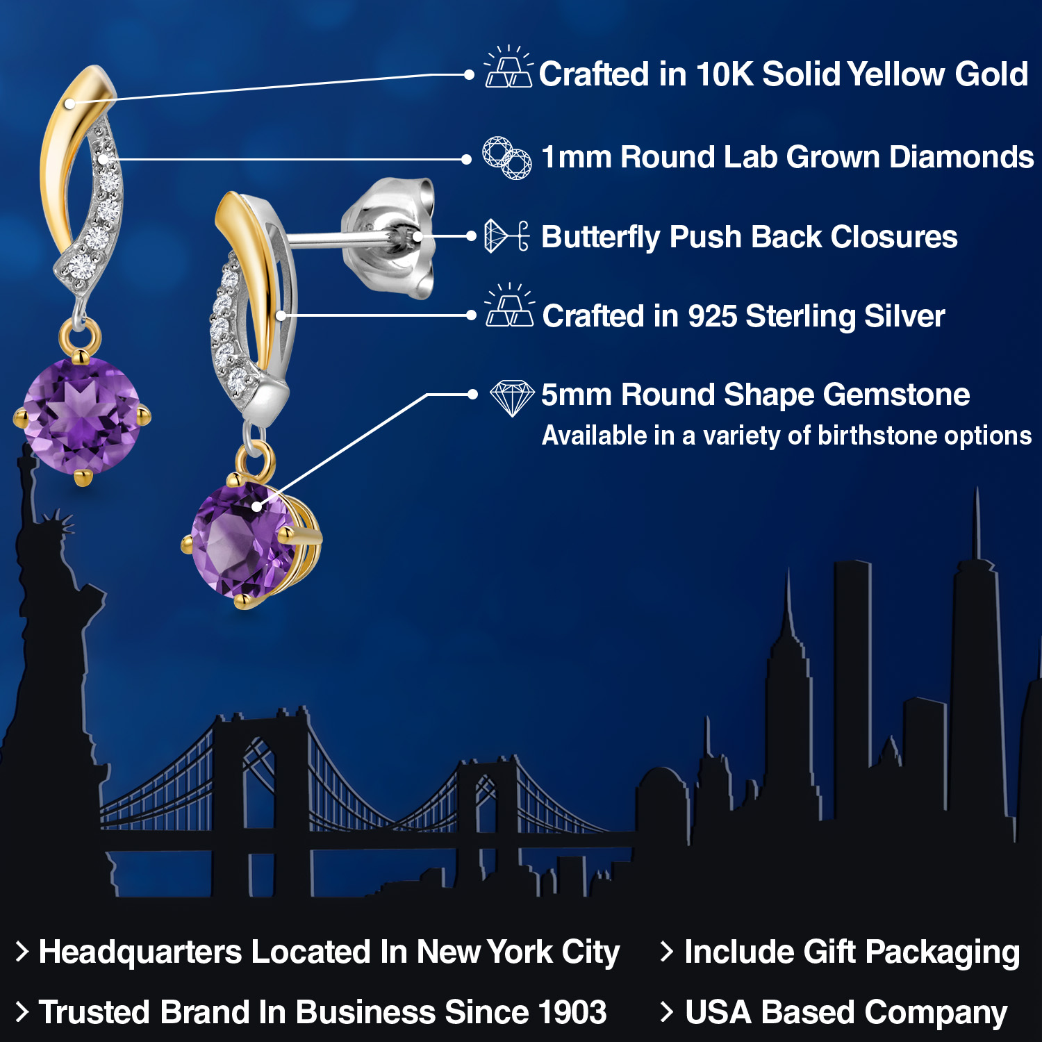 DAZZLING CUSTOMIZABLE GEMSTONES: Adorned with a mesmerizing 5MM round gemstone, these earrings offer the perfect blend of personalization and brilliance. Choose from a variety of vibrant birthstones, each carefully selected to enhance its radiant glow. The rich hues of the stones catch the light beautifully, making these earrings a striking statement piece that adds an elegant, personal touch to any outfit or occasion.