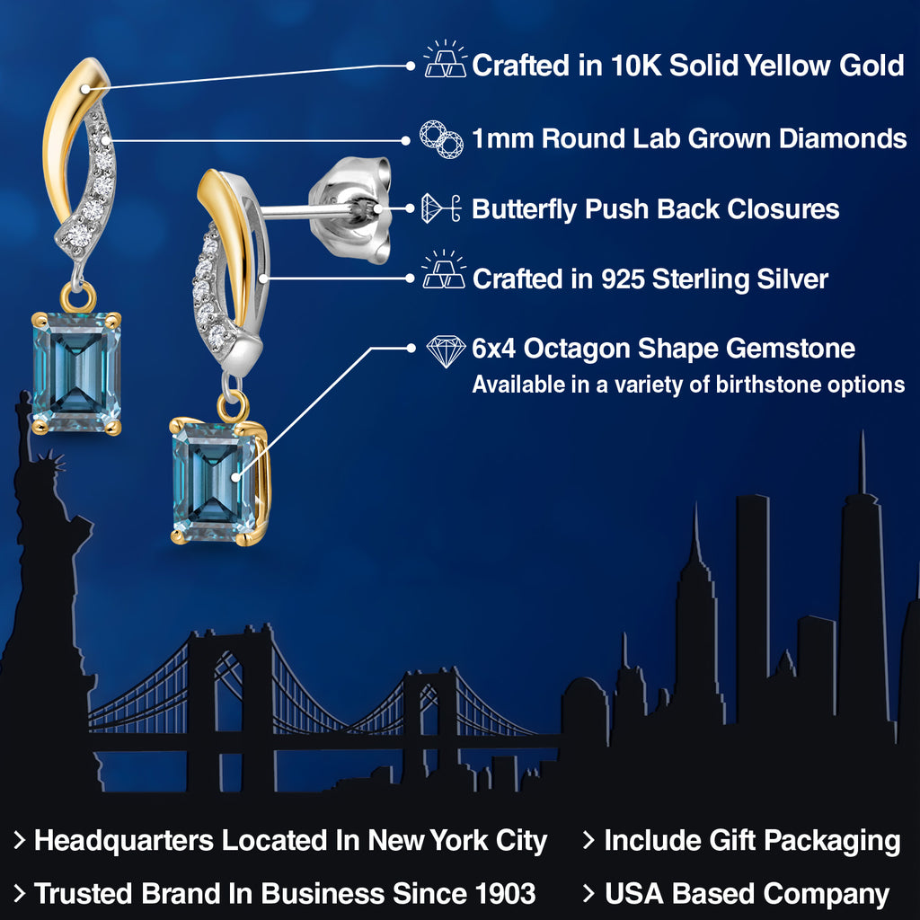 PERSONALIZED BIRTHSTONE ELEGANCE: These eye-catching dangle earrings feature a 6X4MM Emerald Cut gemstone, expertly chosen to reflect your personal birthstone. The precisely cut gemstones stand out with their vibrant colors, bringing a bold touch to your everyday style or special occasion outfits.