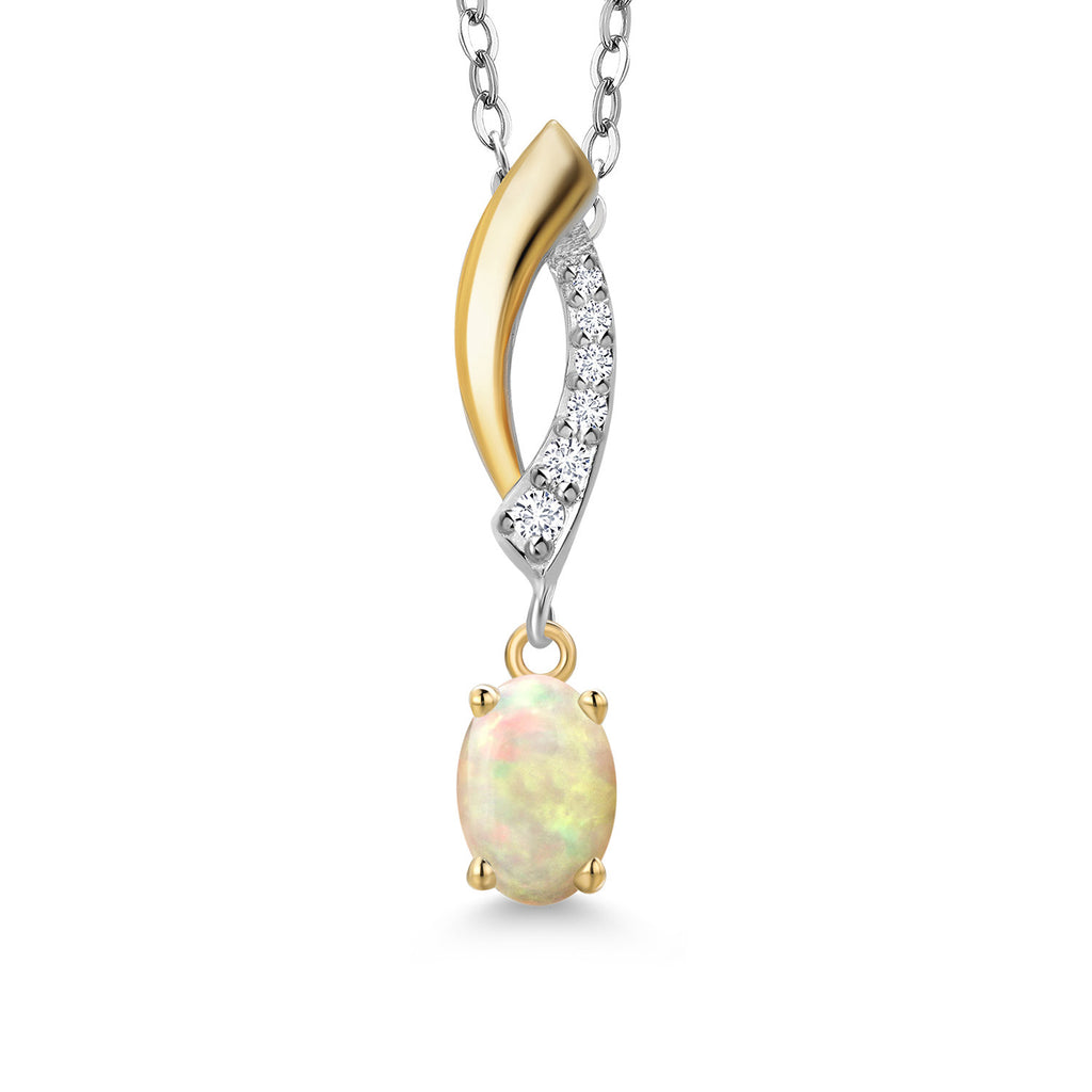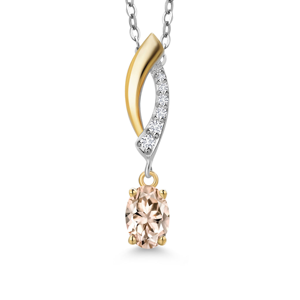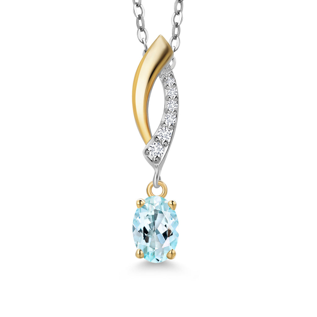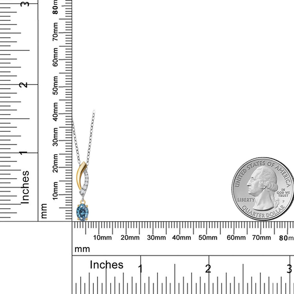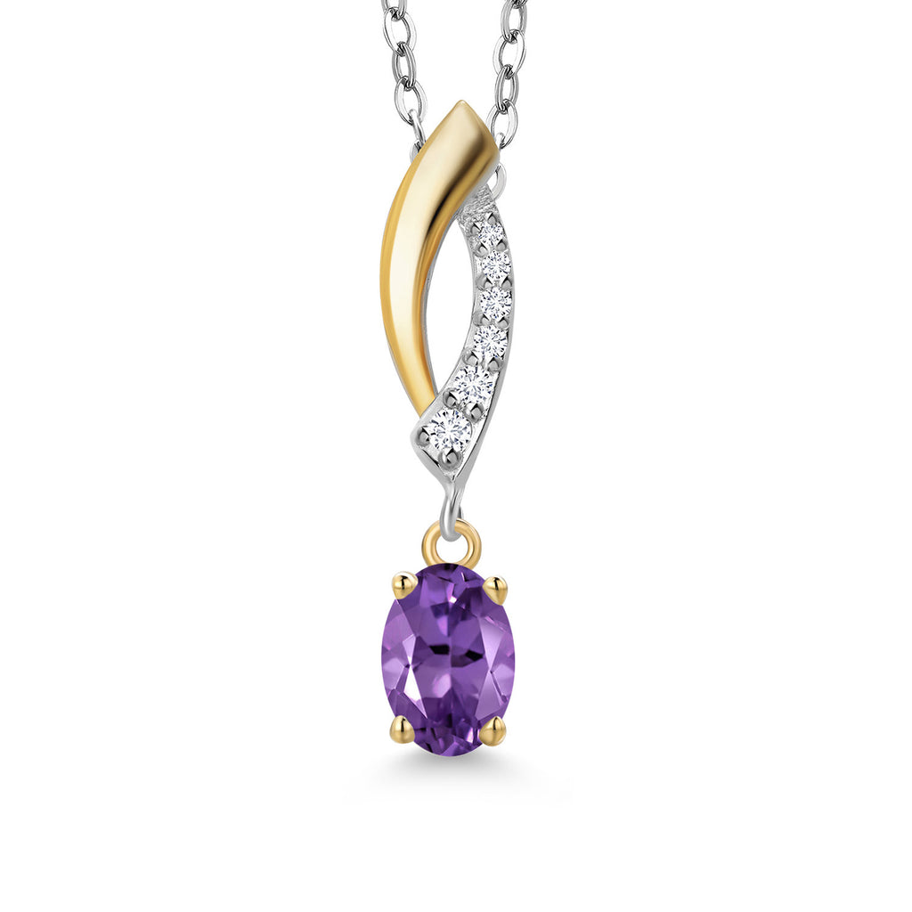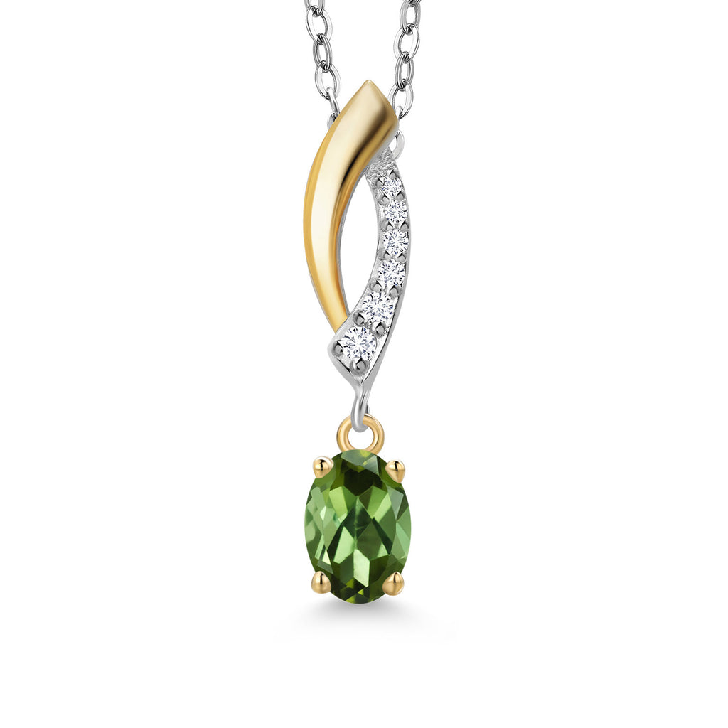 925 Silver and 10K Yellow Gold 6X4MM Oval Gemstone Birthstone and White Lab Grown Diamond Pendant Necklace | Two-Tone Necklace for Women | With 18 Inch Chain