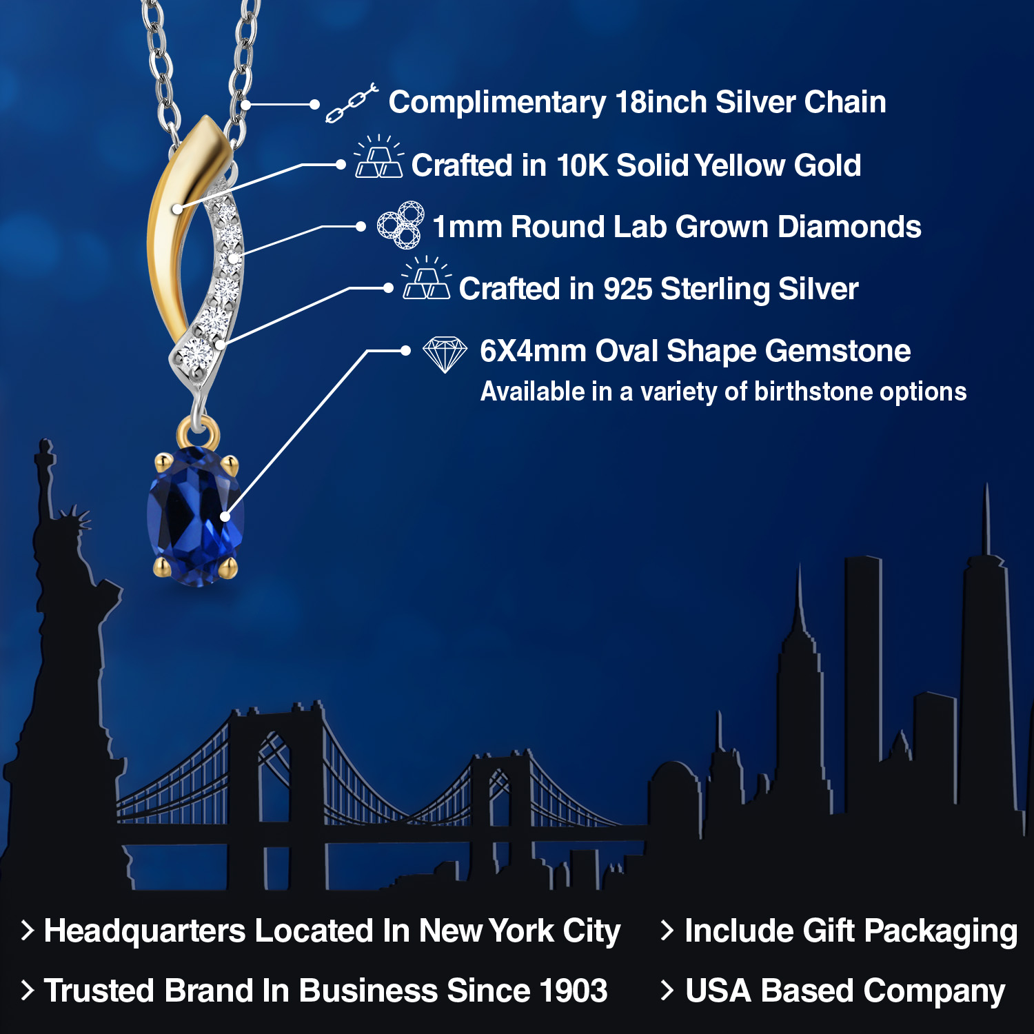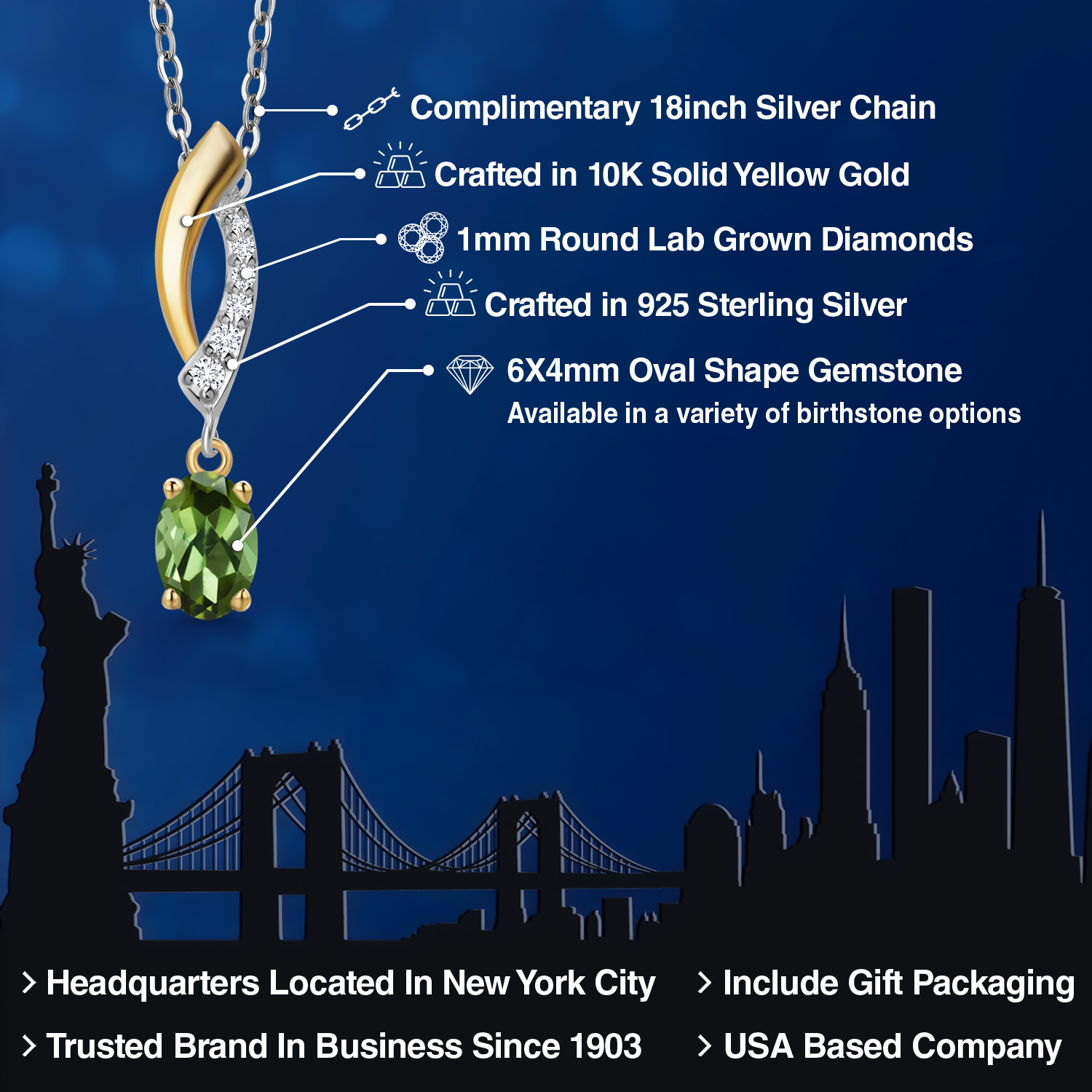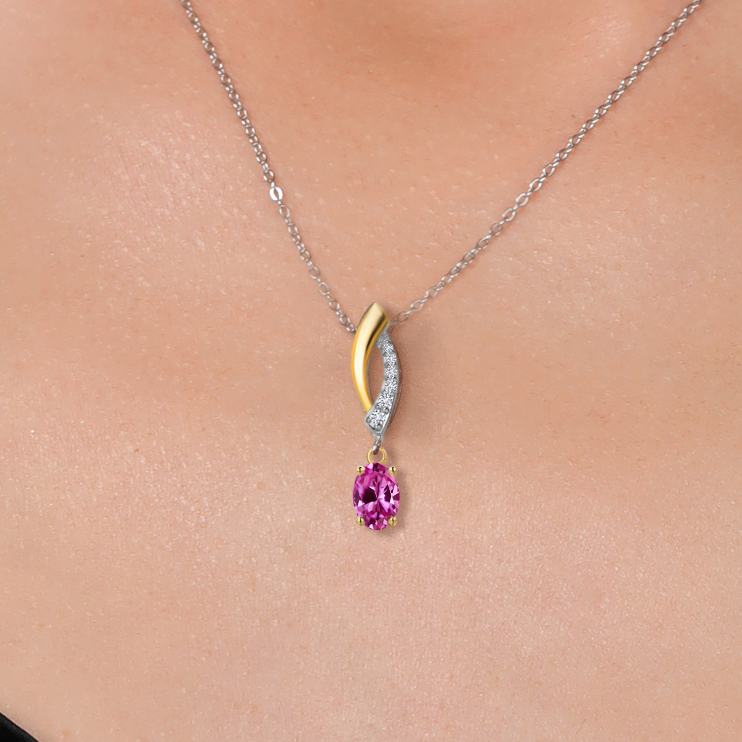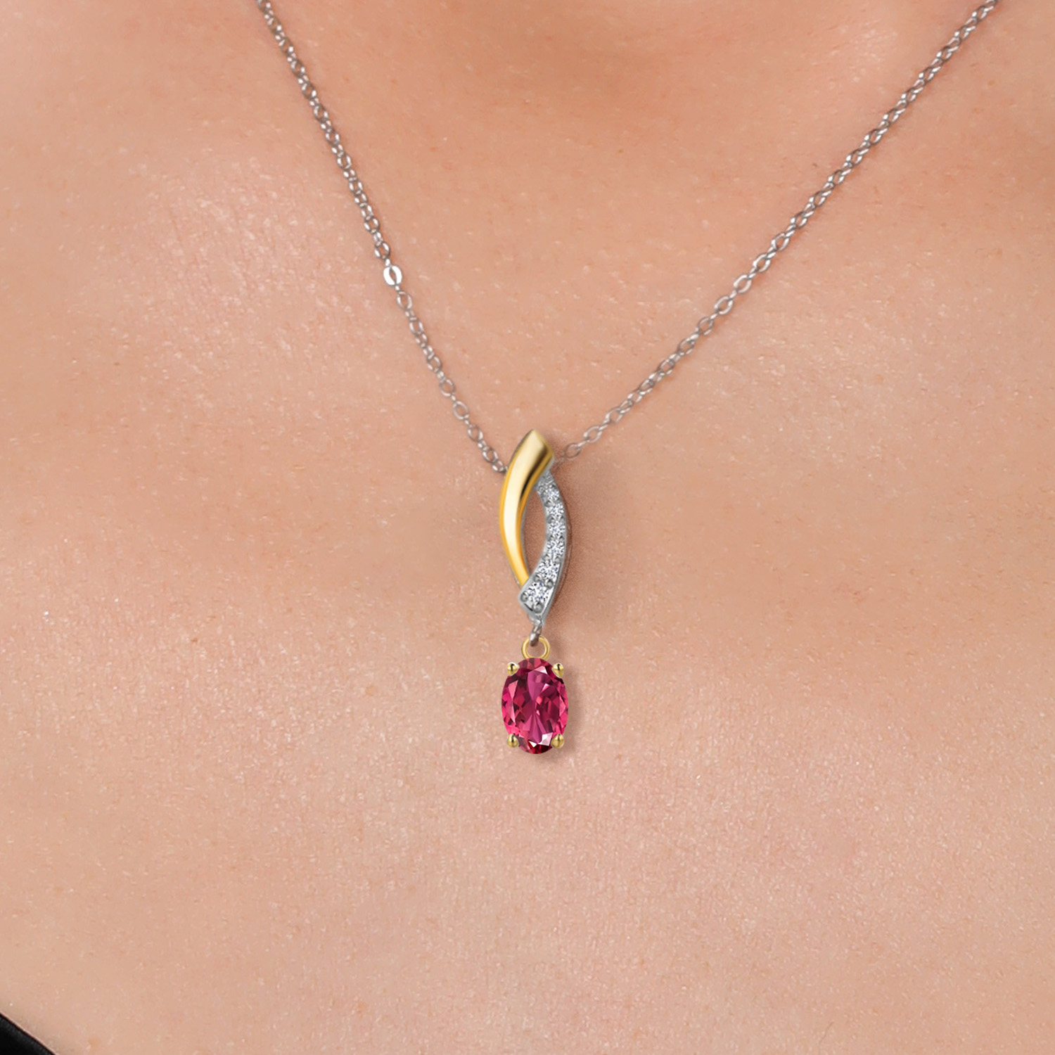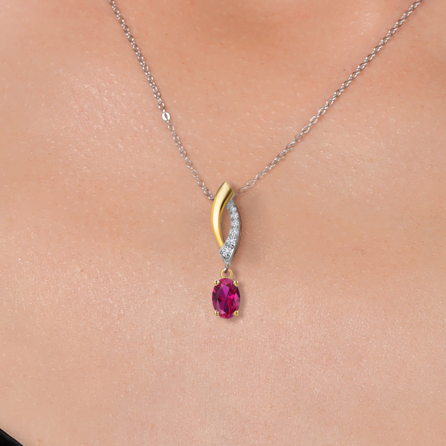 925 Silver and 10K Yellow Gold 6X4MM Oval Gemstone Birthstone and White Lab Grown Diamond Pendant Necklace | Two-Tone Necklace for Women | With 18 Inch Chain