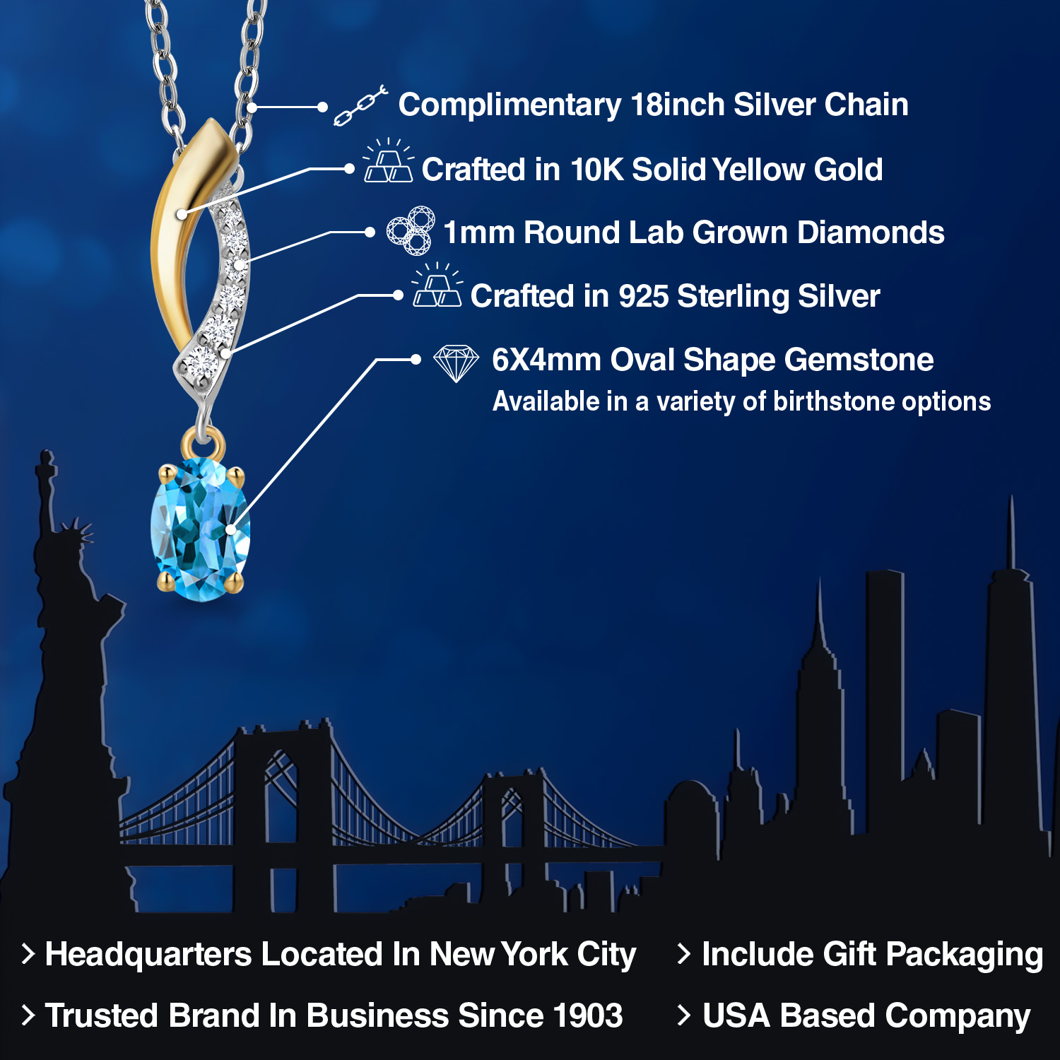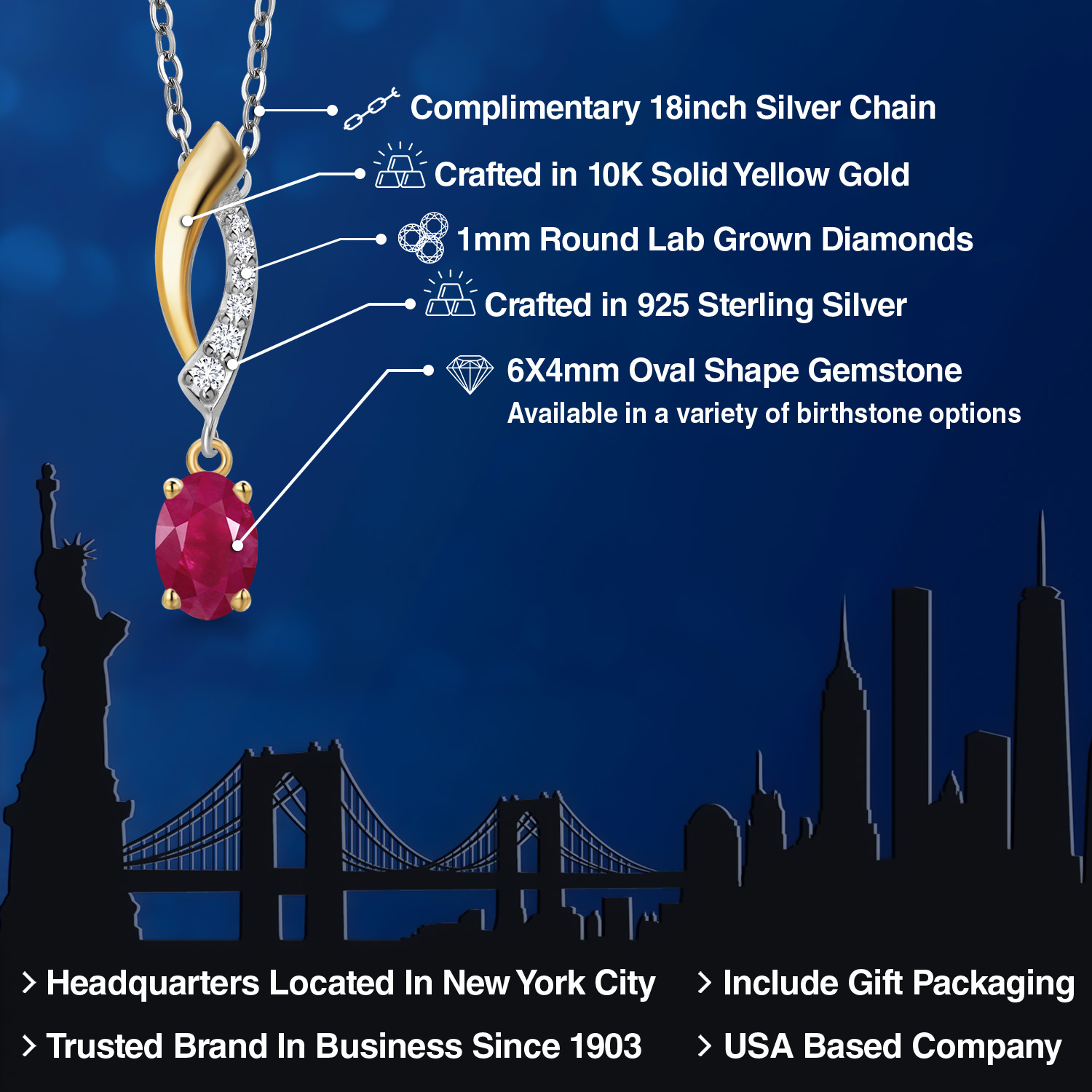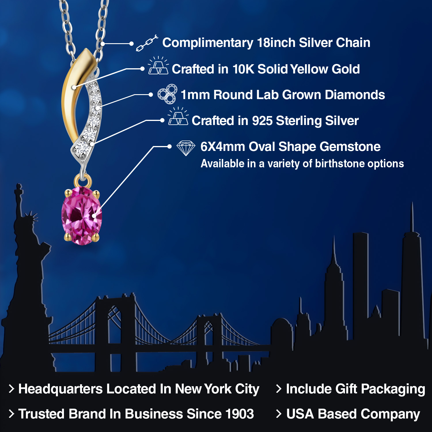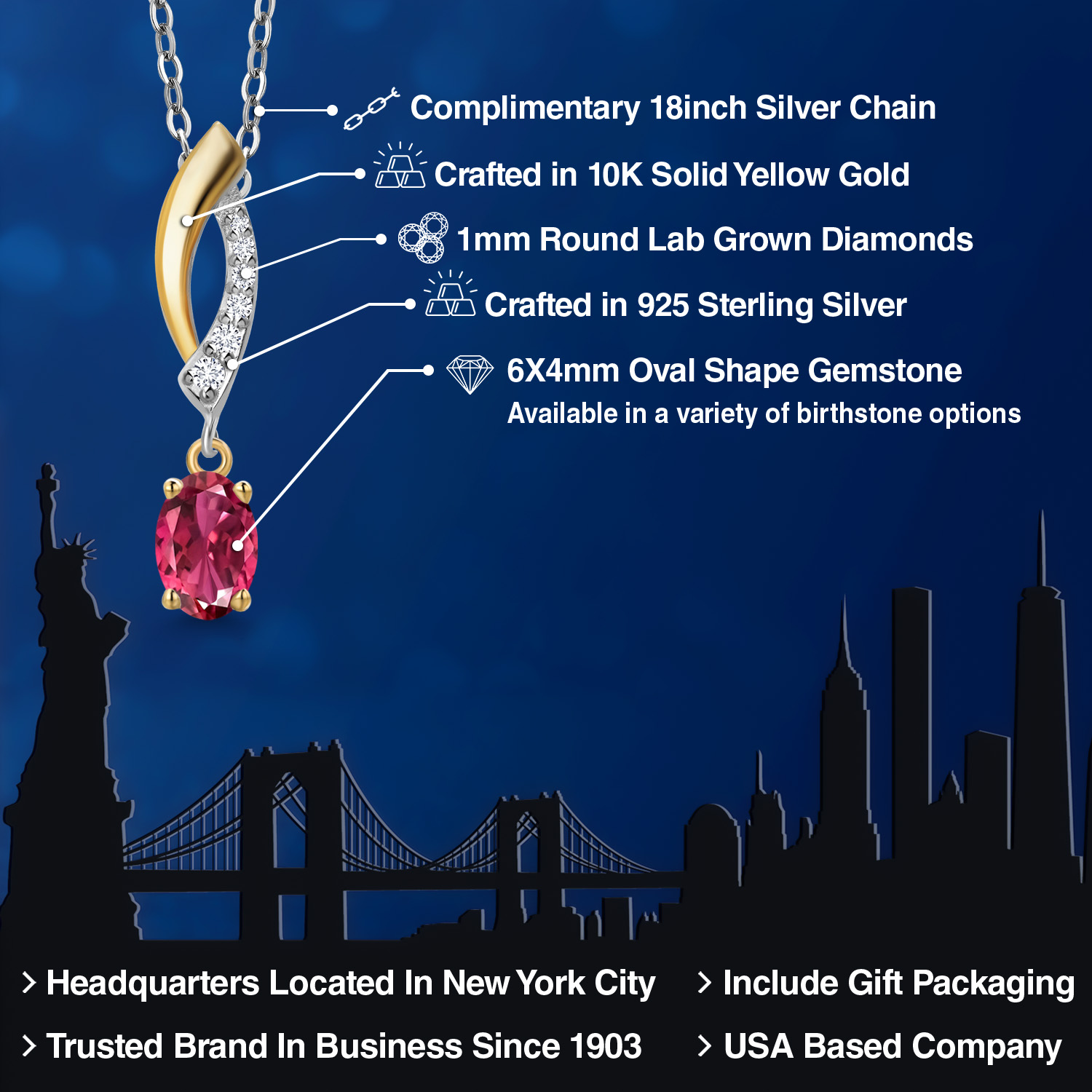 OVAL BIRTHSTONE ELEGANCE: The pendant features a stunning 6x4mm oval-shaped gemstone, carefully selected for its vibrant color and clarity. Choose from a variety of birthstone options to celebrate your individuality or create a meaningful gift for someone special. Each stone is expertly set to enhance its natural beauty and sparkle.