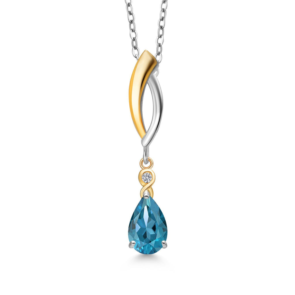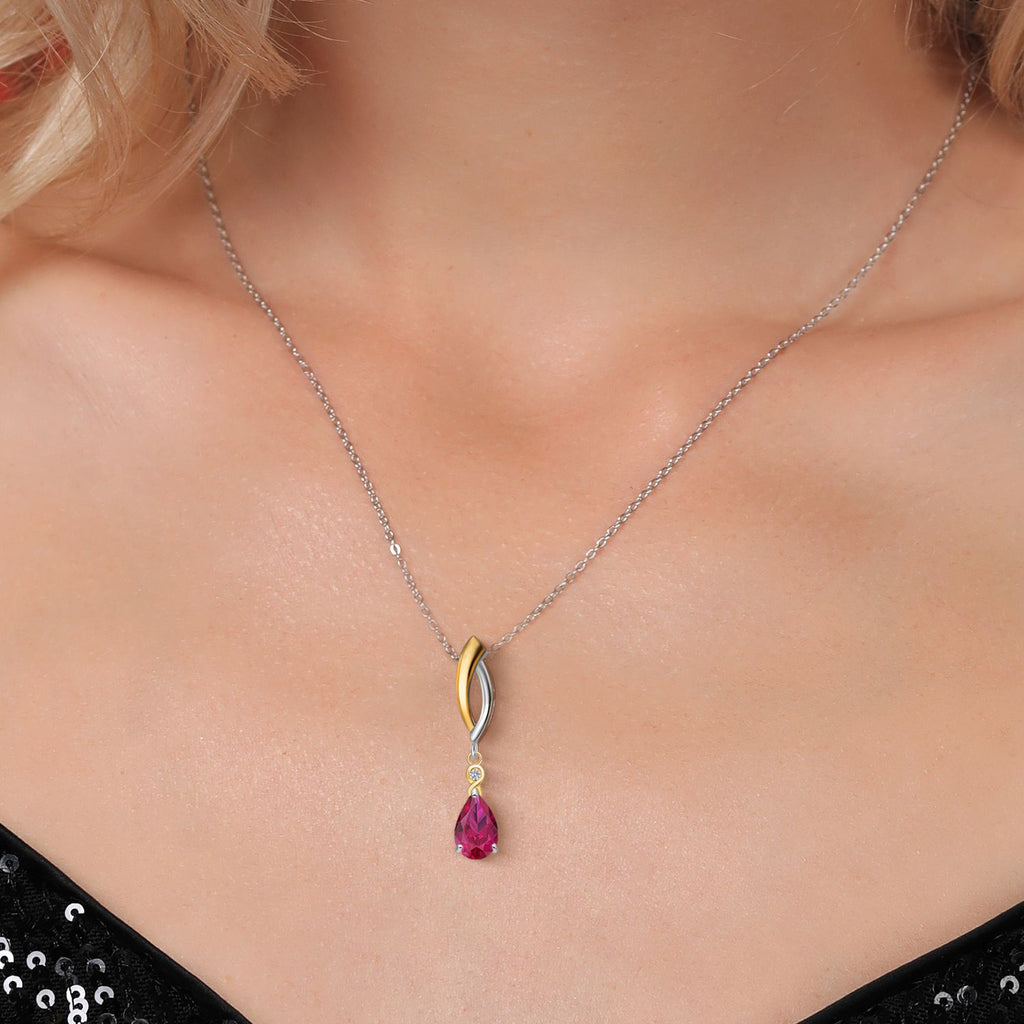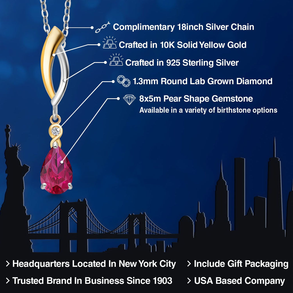 ELEGANT TWO-TONE DESIGN: This beautiful pendant necklace features an 8x5MM pear-shaped gemstone birthstone, set in a luxurious combination of 925 Sterling Silver and 10K Yellow Gold. The two-tone design adds a touch of sophistication and style, making it a perfect accessory for both casual and formal occasions.