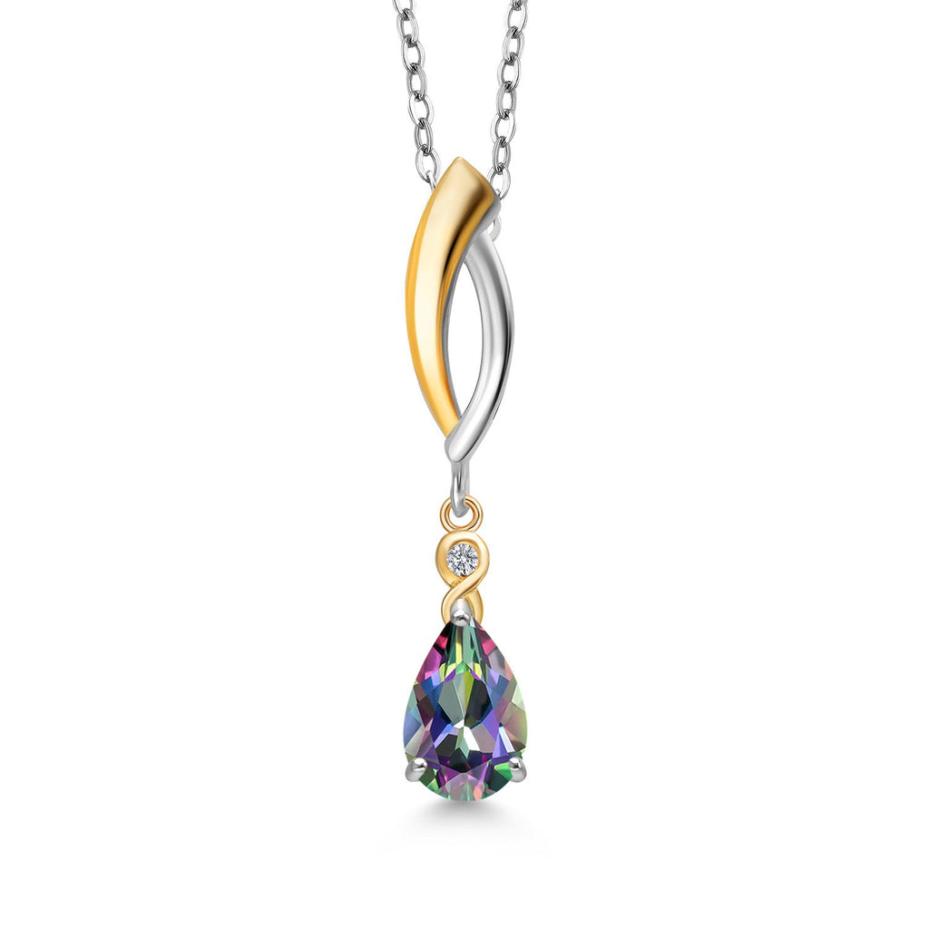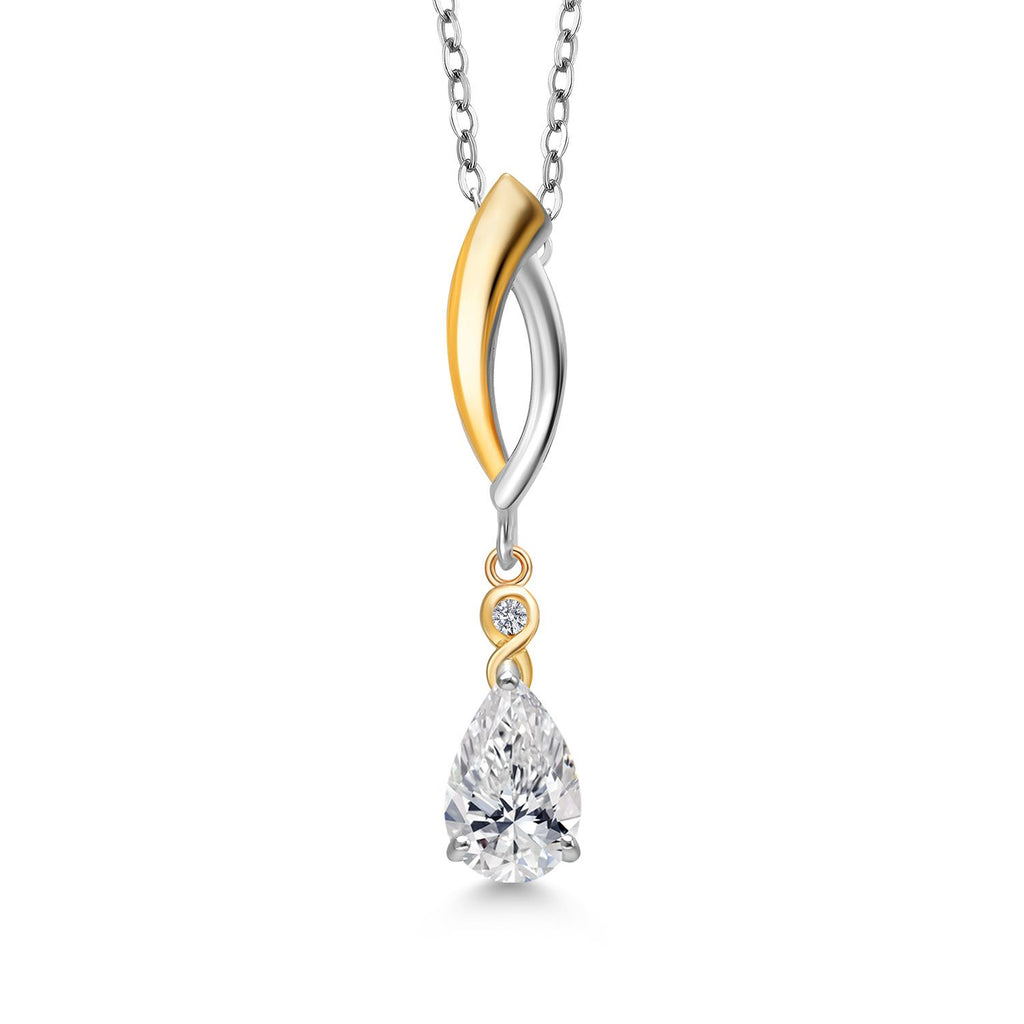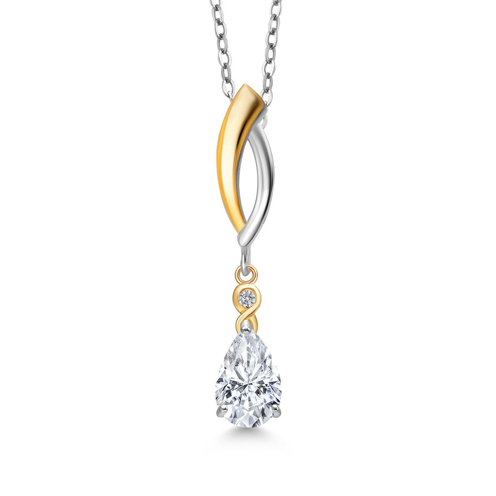 ELEGANT TWO-TONE DESIGN: This beautiful pendant necklace features an 8x5MM pear-shaped gemstone birthstone, set in a luxurious combination of 925 Sterling Silver and 10K Yellow Gold. The two-tone design adds a touch of sophistication and style, making it a perfect accessory for both casual and formal occasions.