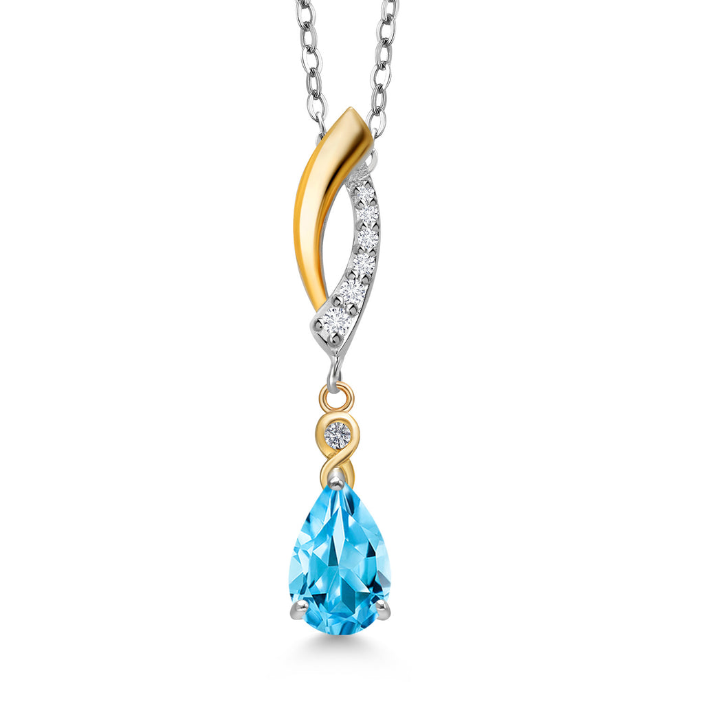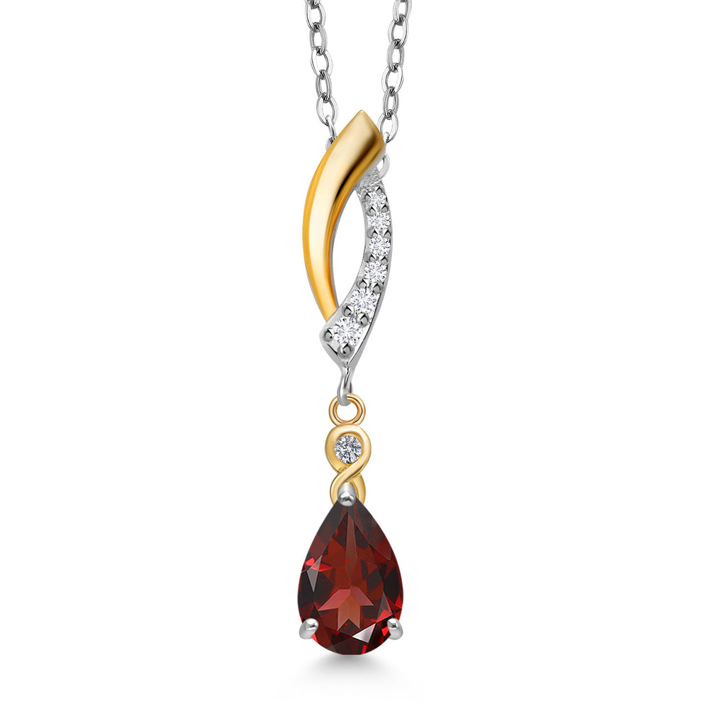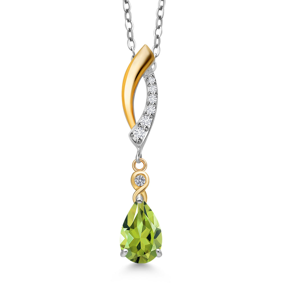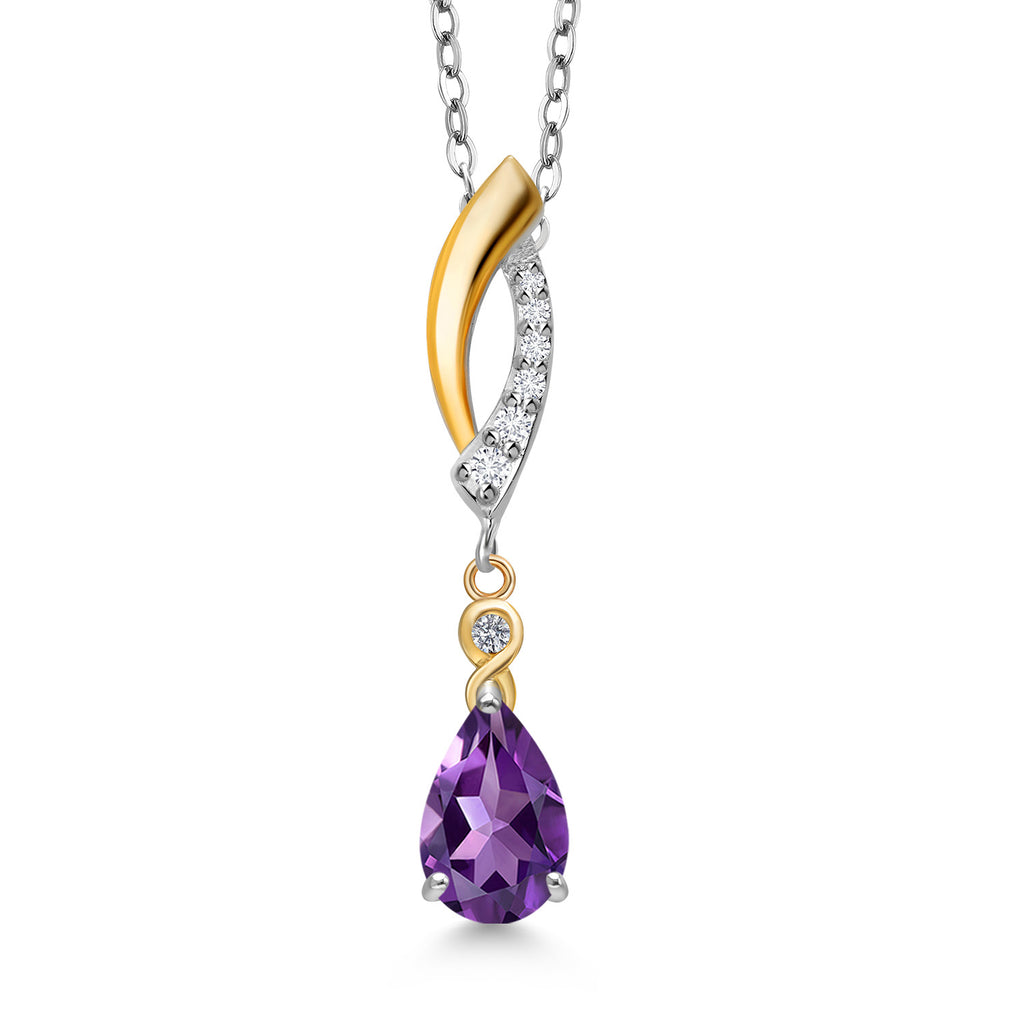 Infinity Teardrop Pendant Necklace for Women | 925 Silver and 10K Yellow Gold | 8X5MM Pear Shape Gemstone Birthstone and White Lab Grown Diamond | With 18 Inch Chain