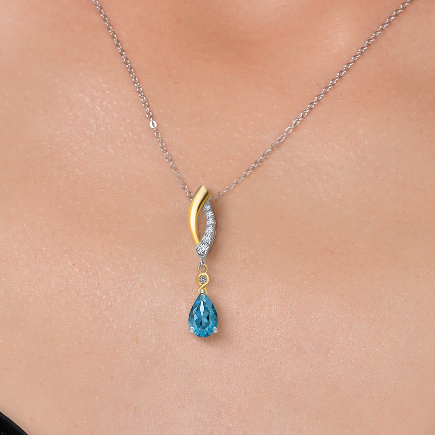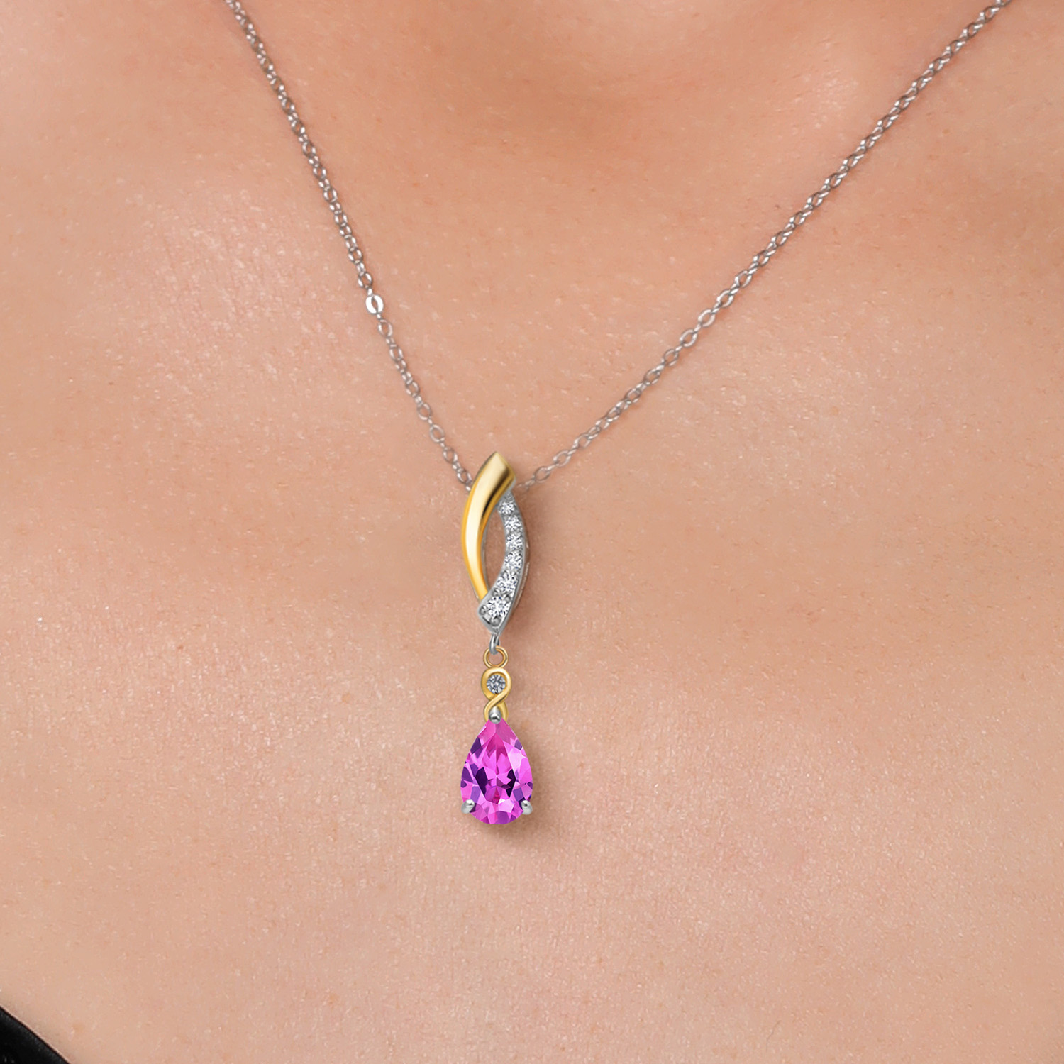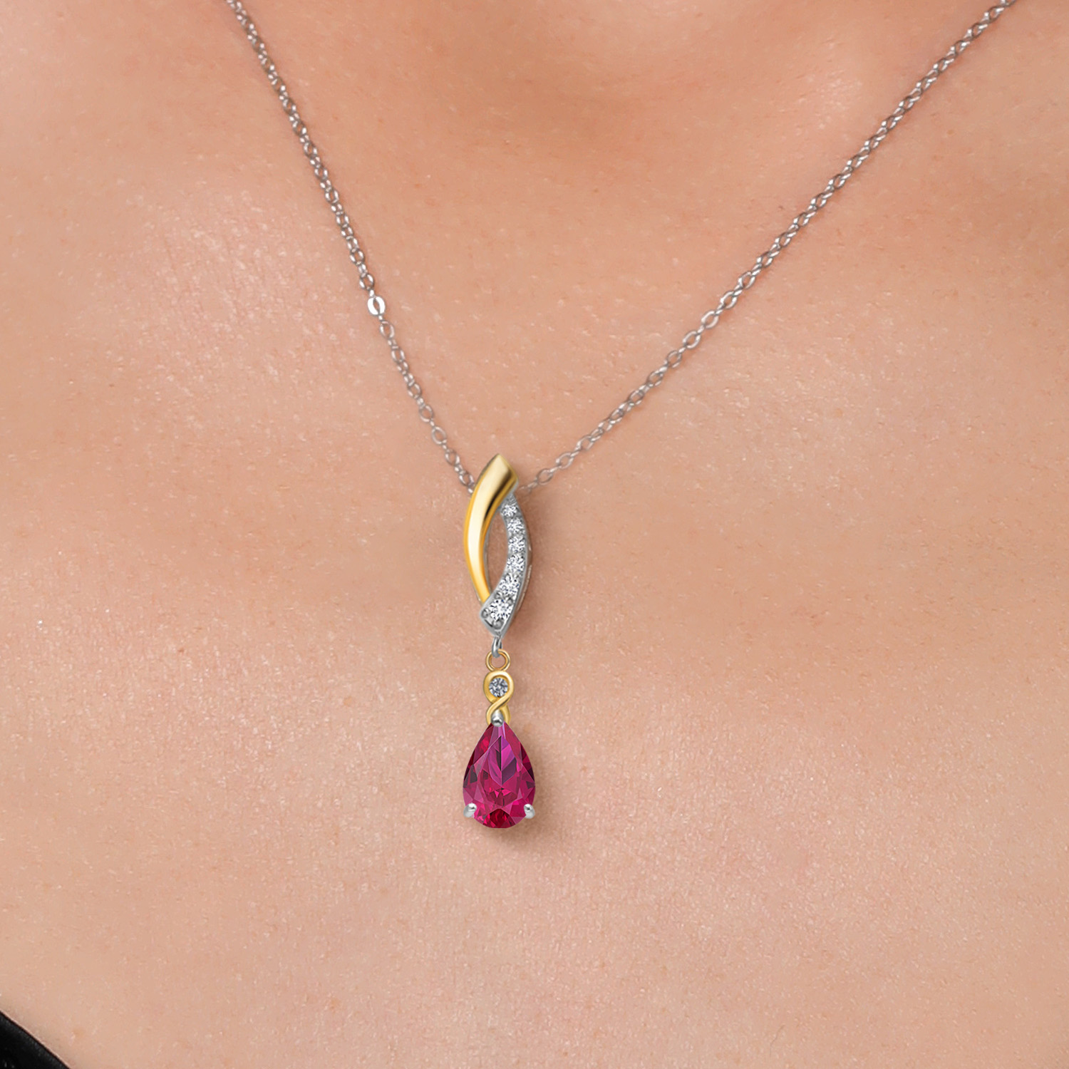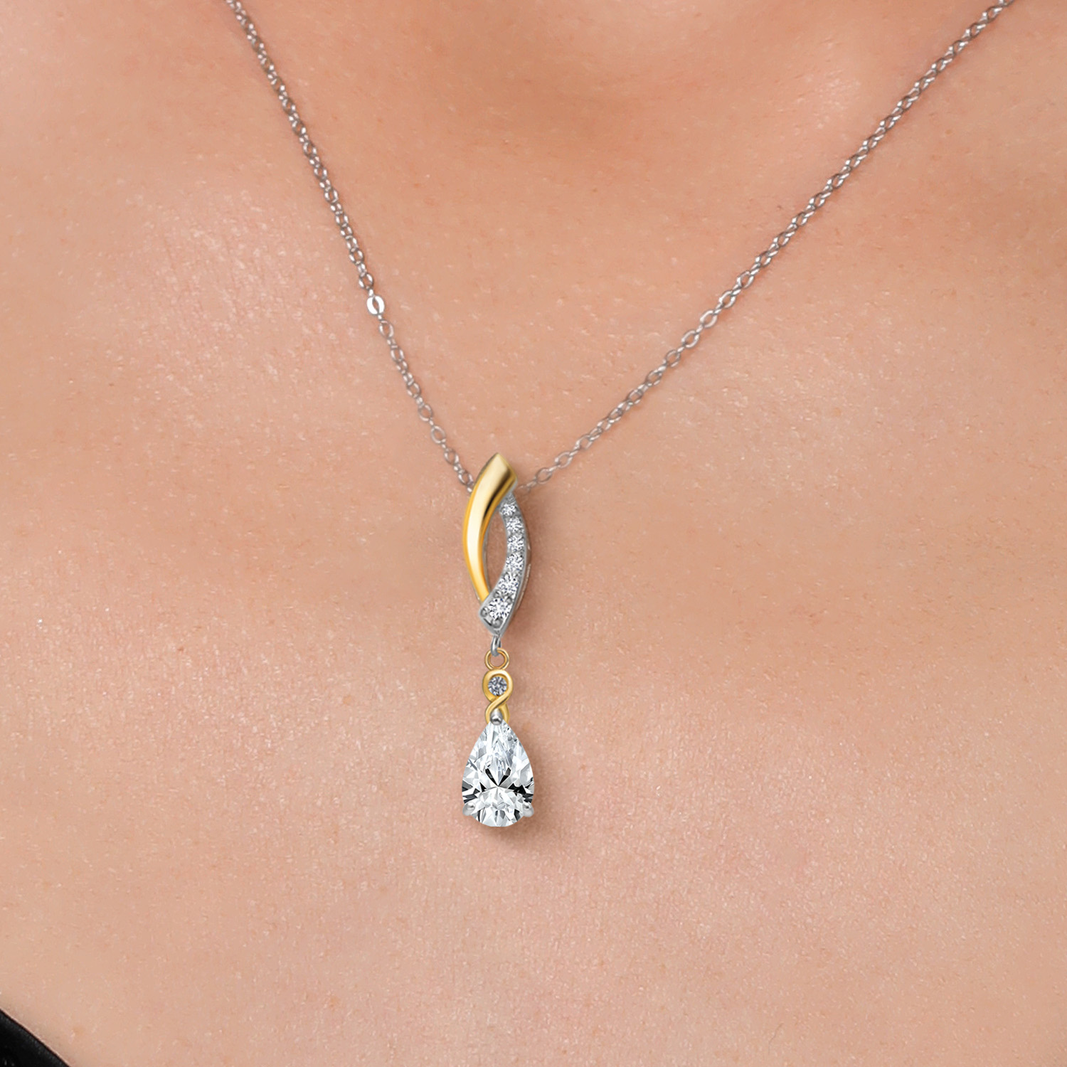 Infinity Teardrop Pendant Necklace for Women | 925 Silver and 10K Yellow Gold | 8X5MM Pear Shape Gemstone Birthstone and White Lab Grown Diamond | With 18 Inch Chain