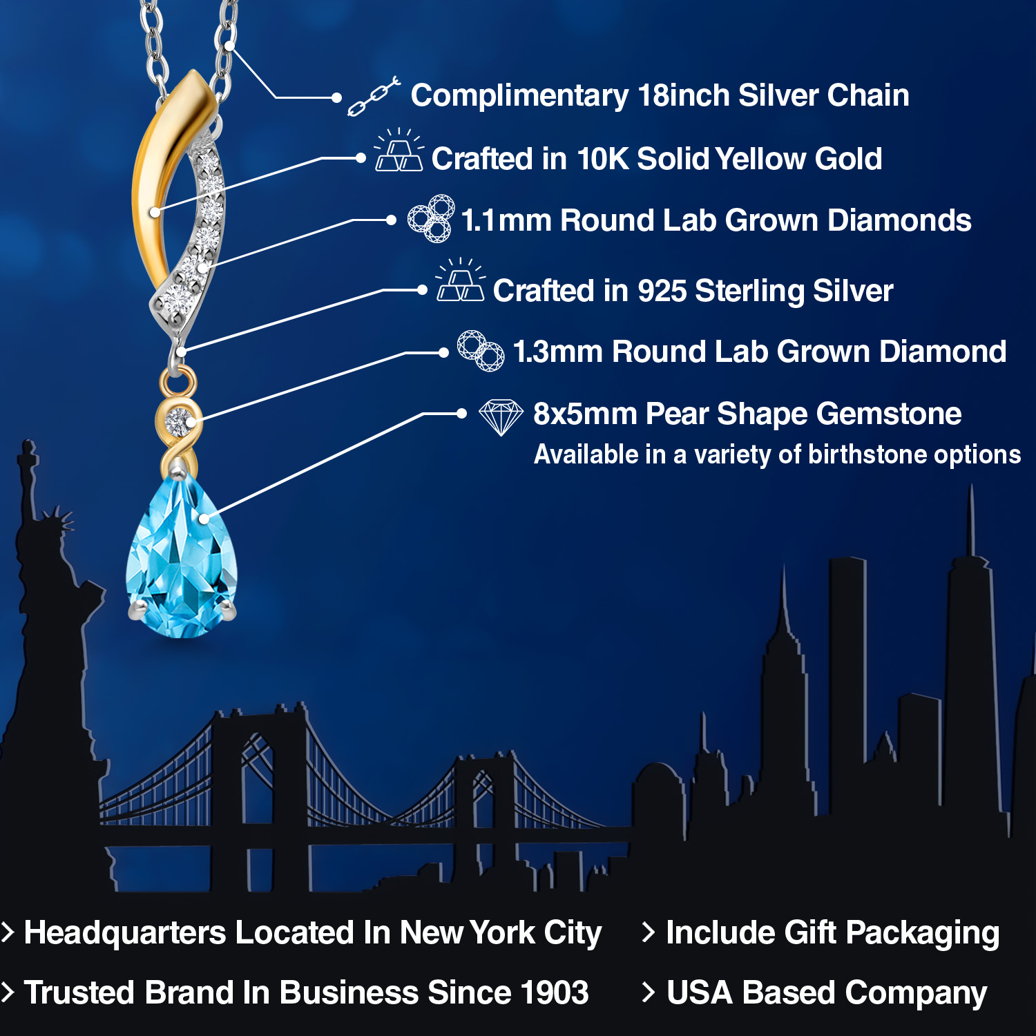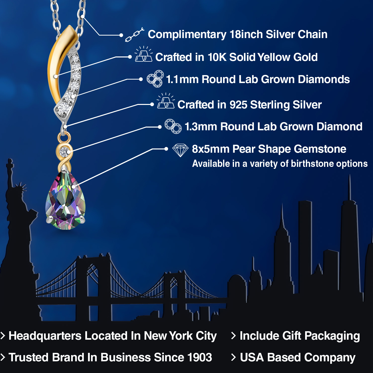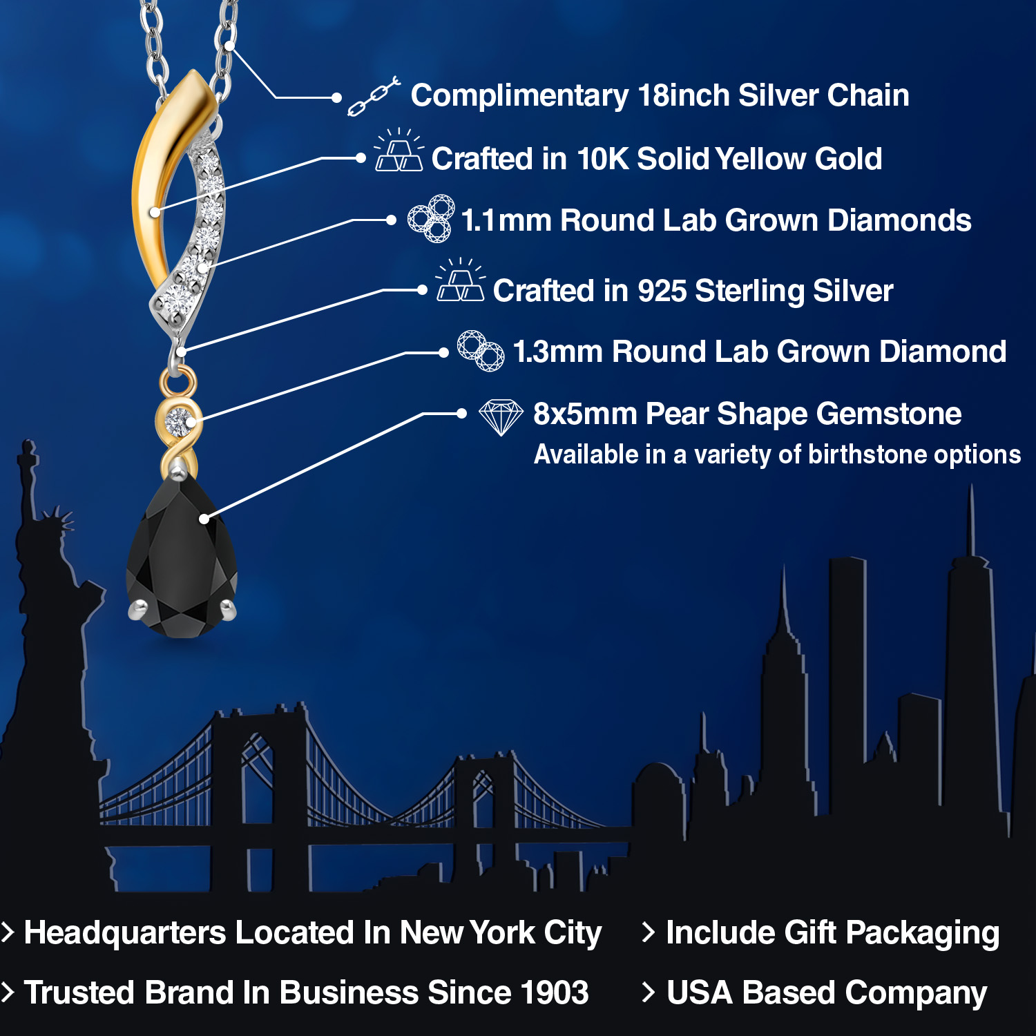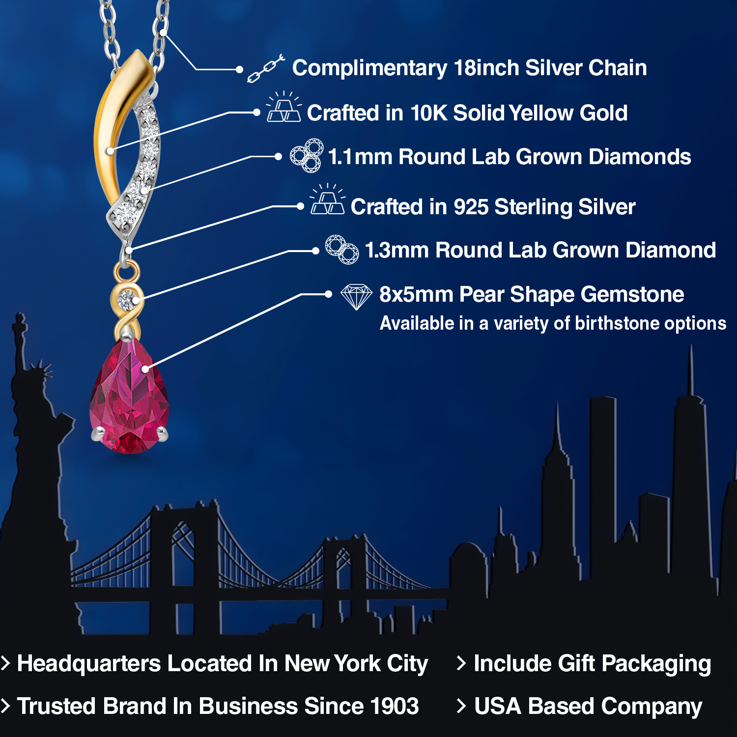 925 SILVER AND 10K YELLOW GOLD CRAFTSMANSHIP: Beautifully crafted in a two-tone blend of genuine 925 Sterling Silver and solid 10K Yellow Gold, this pendant offers lasting durability and radiant contrast. The polished finish enhances each gemstone’s brilliance.