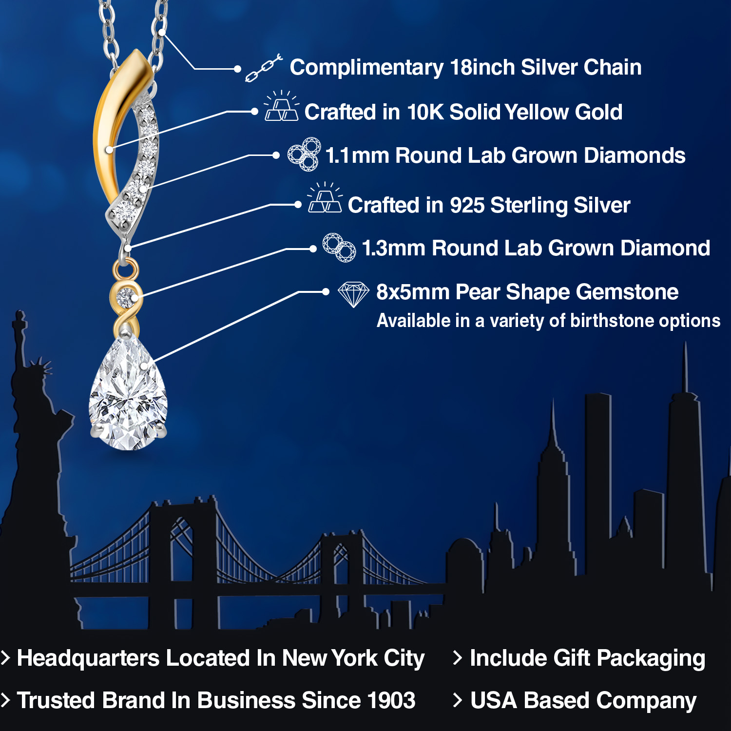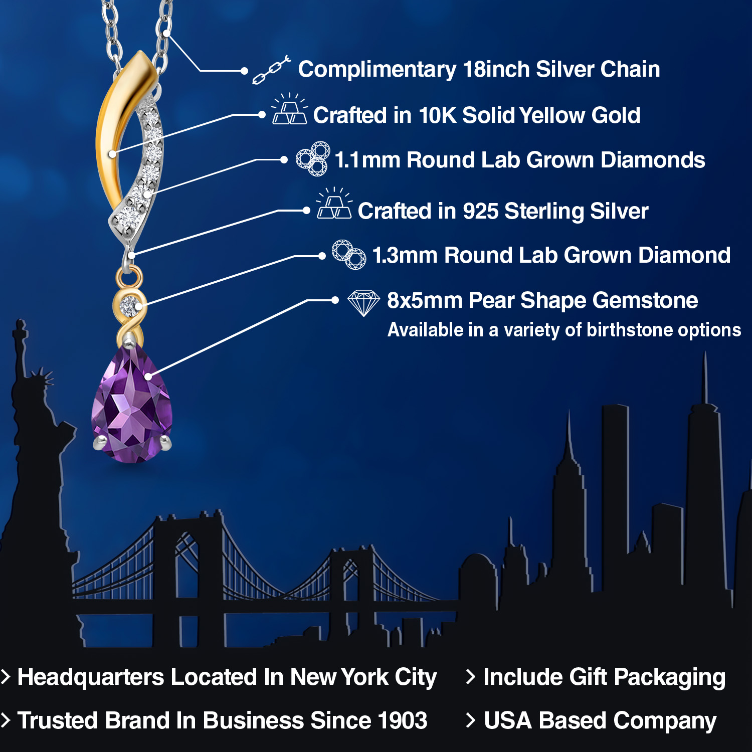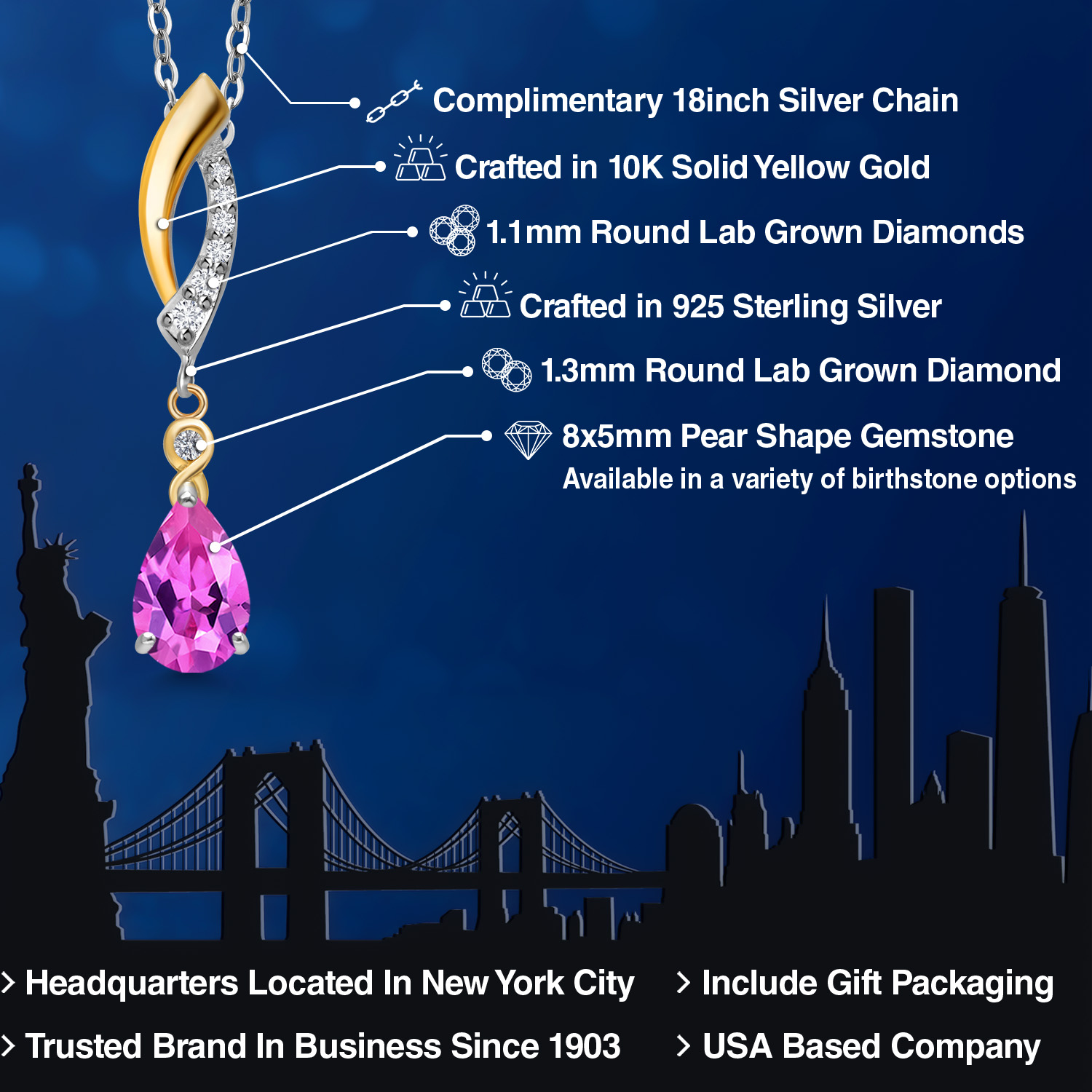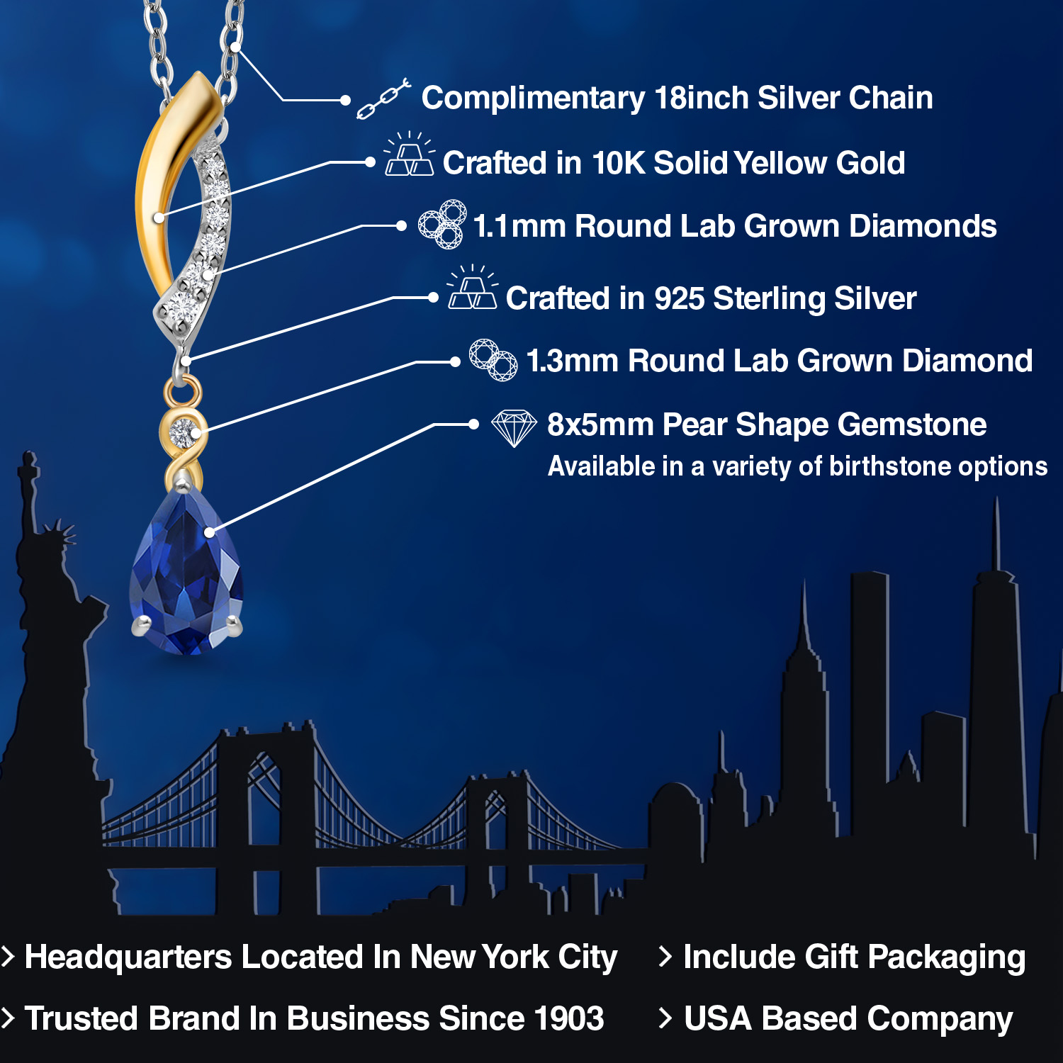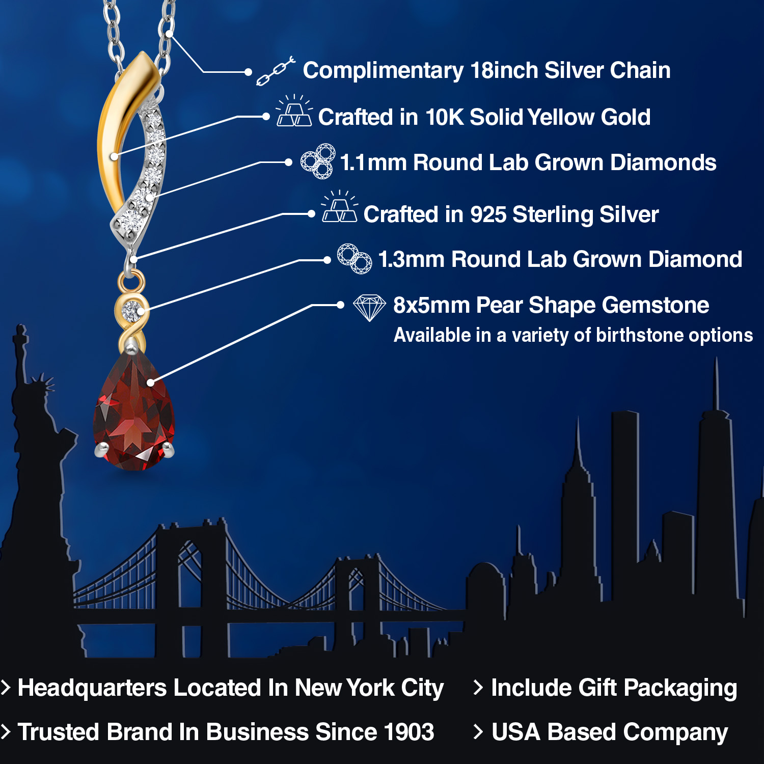 925 SILVER AND 10K YELLOW GOLD CRAFTSMANSHIP: Beautifully crafted in a two-tone blend of genuine 925 Sterling Silver and solid 10K Yellow Gold, this pendant offers lasting durability and radiant contrast. The polished finish enhances each gemstone’s brilliance.