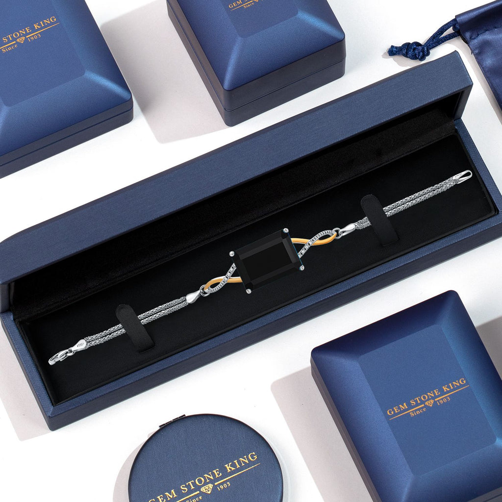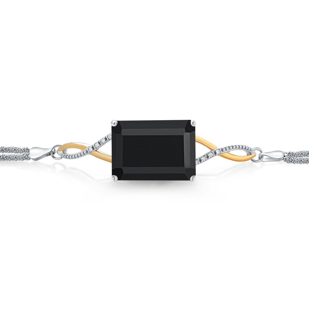 925 Silver and 10K Yellow Gold Black Onyx and Lab Grown Diamond Bracelet For Women | 15.14 Cttw | Gemstone December Birthstone | Emerald Cut 18X13MM | 6.5/7/7.5 Inch | Made In Italy