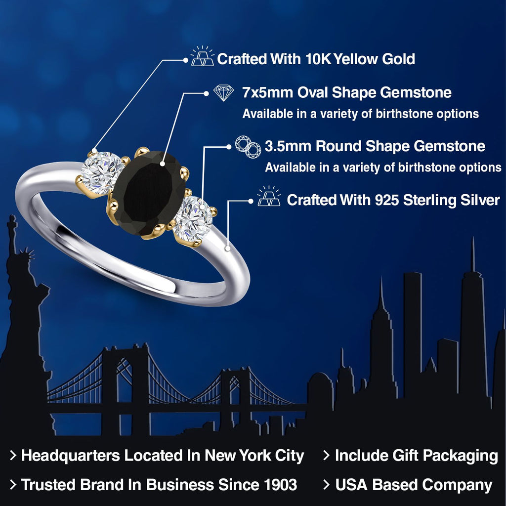 2-Tone Engagement Ring For Women | 925 Silver and 10K Yellow Gold | Gemstone Birthstone | 6MM Cushion Cut | Wedding Anniversary Promise Ring | Available In Size 5, 6, 7, 8, 9
