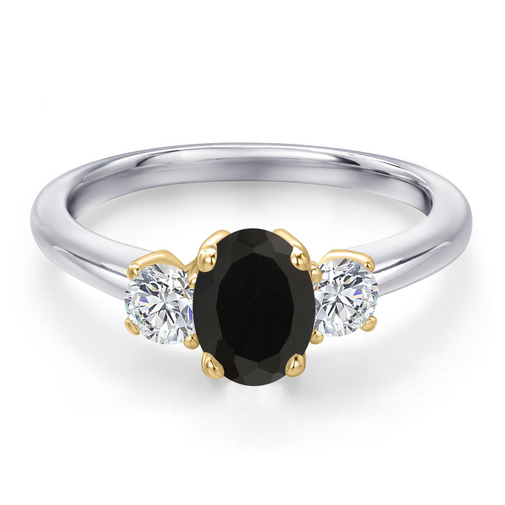 MEASUREMENTS: 7x5mm Oval Black Onyx, 3.5x3.5mm Round E - F Lab Grown Diamond. Total Carat Weight is 1.04 cttw