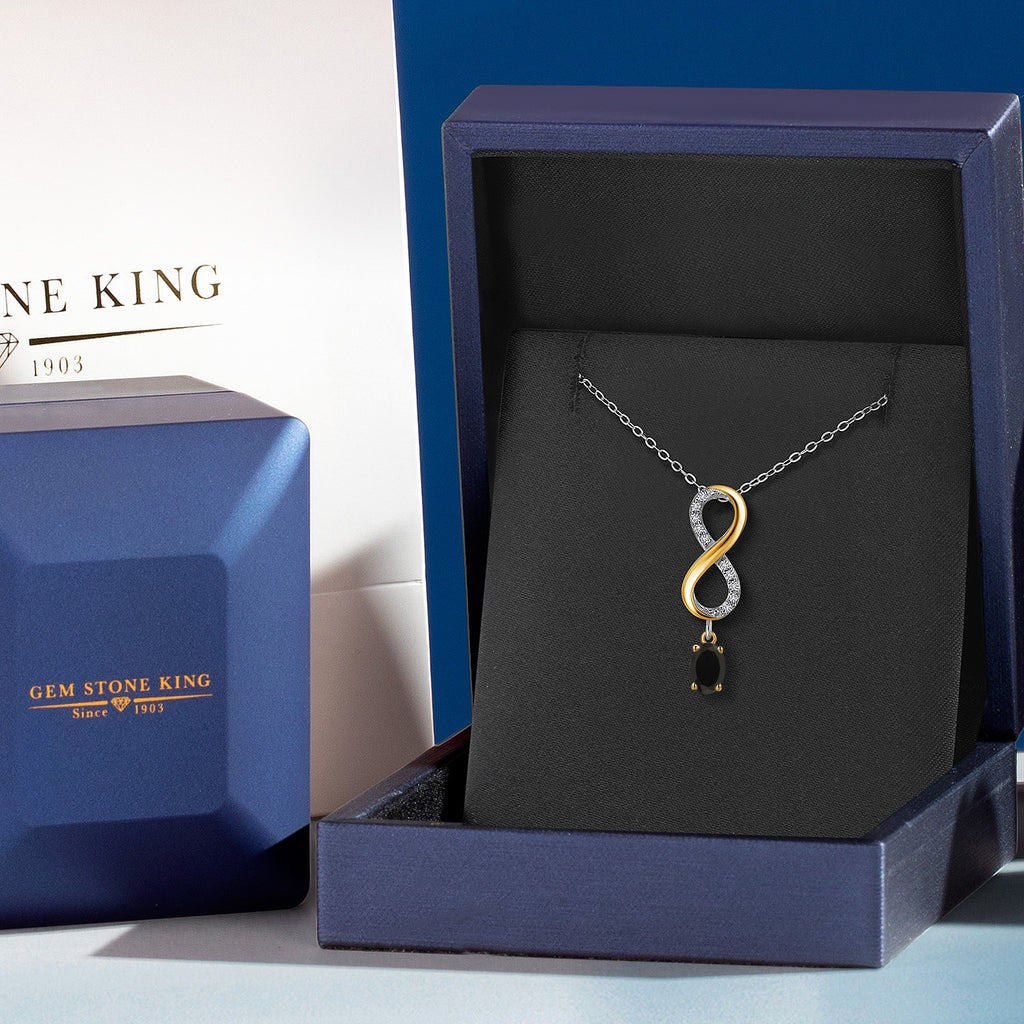 925 Silver and 10K Yellow Gold Black Onyx and Lab Grown Diamond Pendant Necklace for Women | 0.88 Cttw | Gemstone December Birthstone | Oval 6X4MM | With 18 Inch Chain