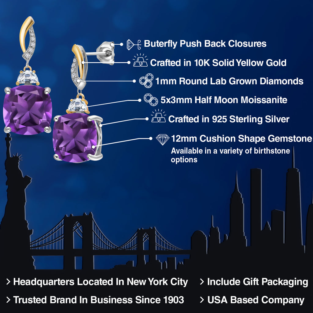 EXQUISITE 12MM CUSHION SHAPE GEMSTONE: Our dangle earrings feature a stunning 12mm cushion-shaped gemstone, meticulously cut to enhance its brilliance and sparkle. Available in a variety of birthstone options, these earrings allow you to personalize your jewelry to match your birth month or favorite color. The large, eye-catching gemstone ensures you stand out on any occasion, making these earrings a perfect addition to your jewelry collection.