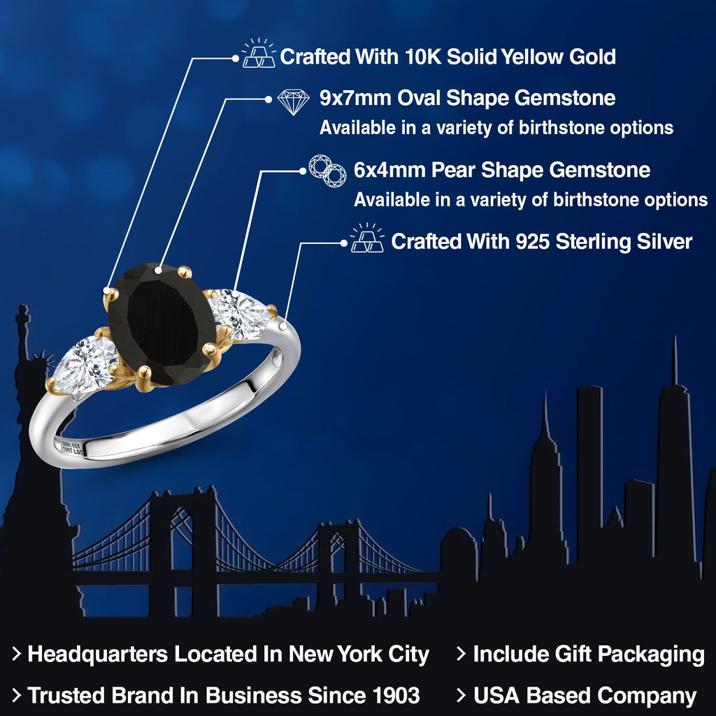 2-Tone Engagement Ring For Women | 925 Silver and 10K Yellow Gold | Gemstone Birthstone | 6MM Cushion Cut | Wedding Anniversary Promise Ring | Available In Size 5, 6, 7, 8, 9