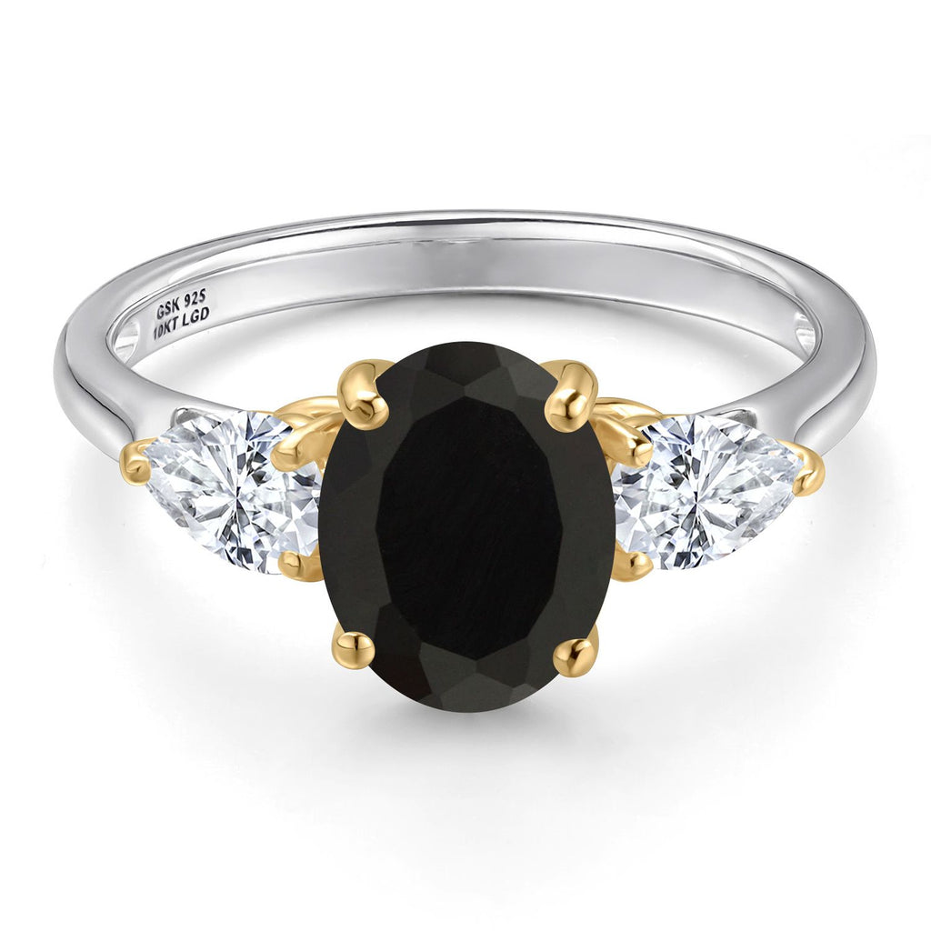 MEASUREMENTS: 9x7mm Oval Black Onyx, 6x4mm Pear Shape Near Colorless (GH) Moissanite. Total Carat Weight is 2.8 cttw