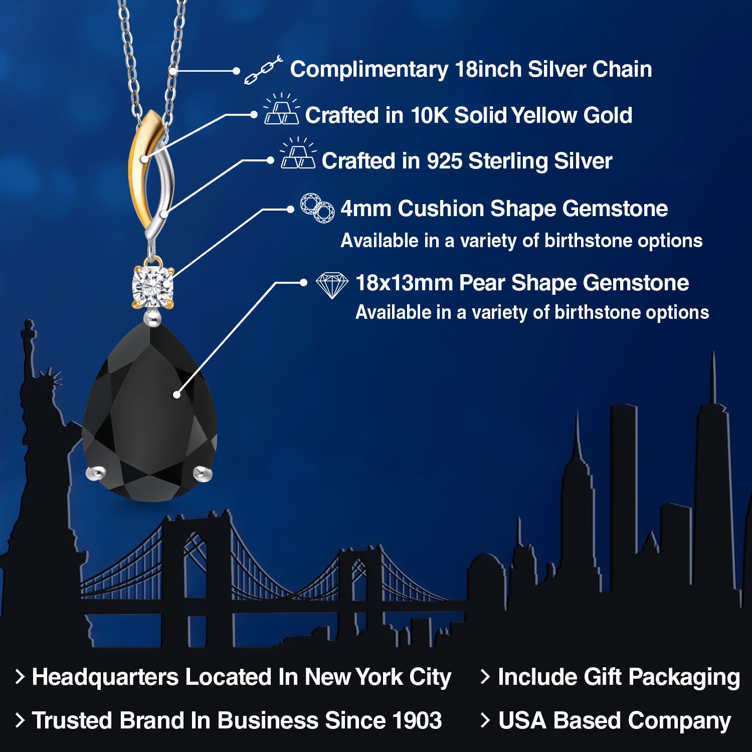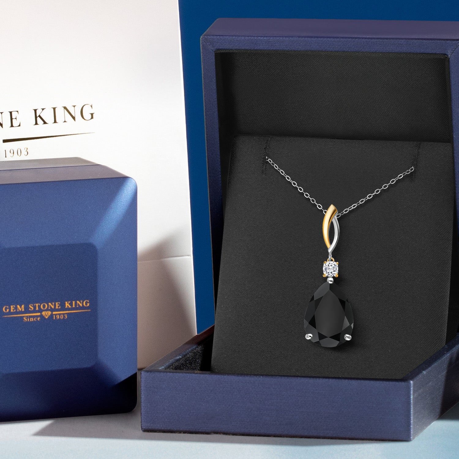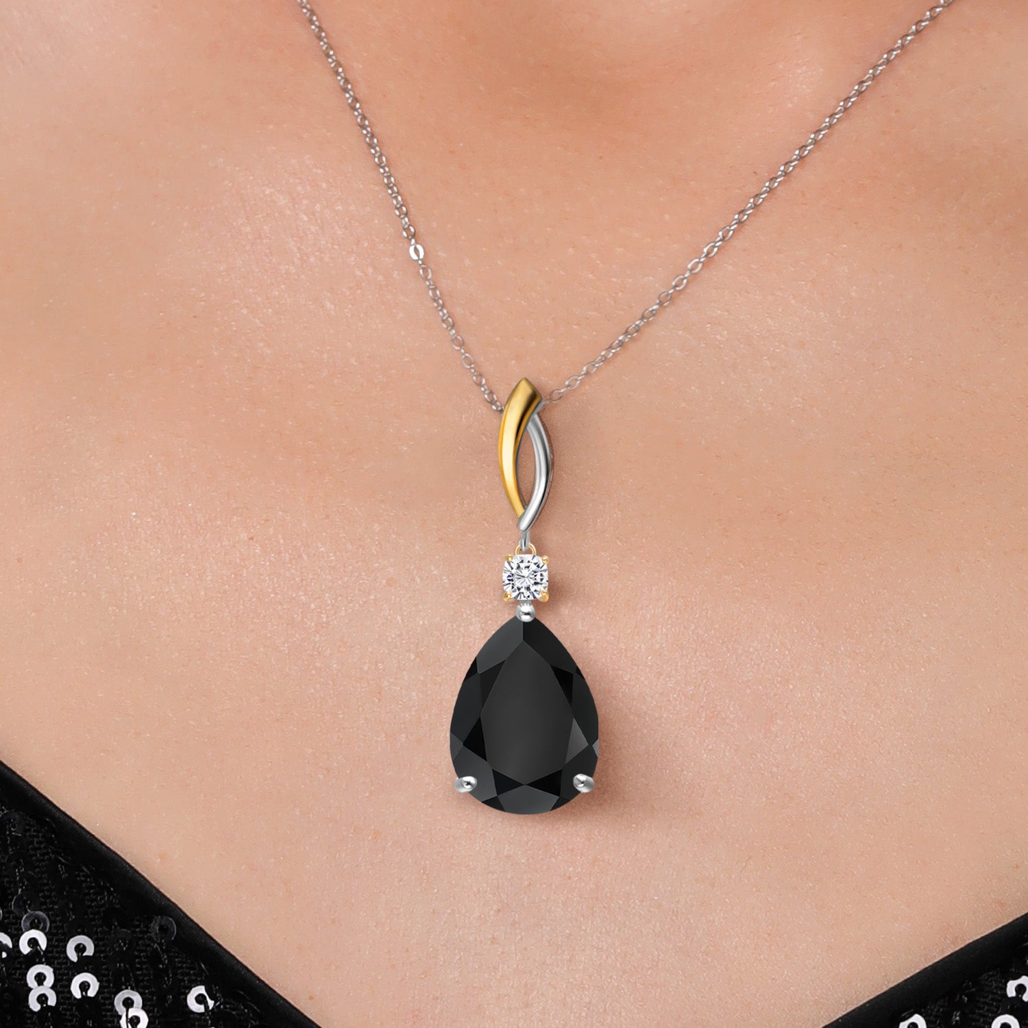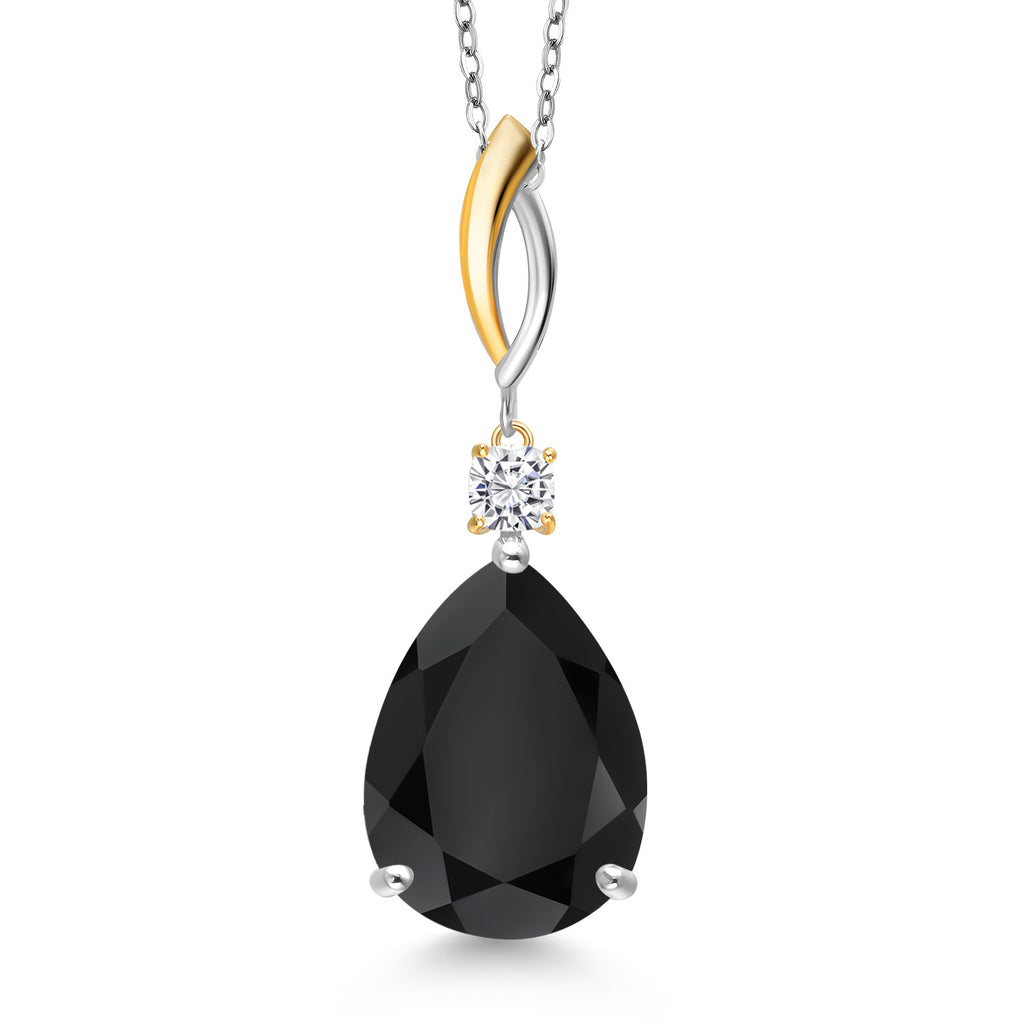925 Silver and 10K Yellow Gold Black Onyx and White Moissanite Pendant Necklace for Women | 10.23 Cttw | Gemstone December Birthstone | Pear Shape 18X13MM | With 18 Inch Chain