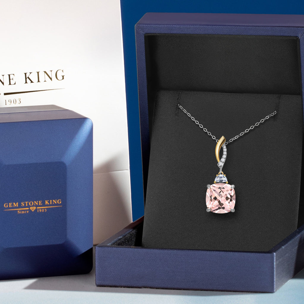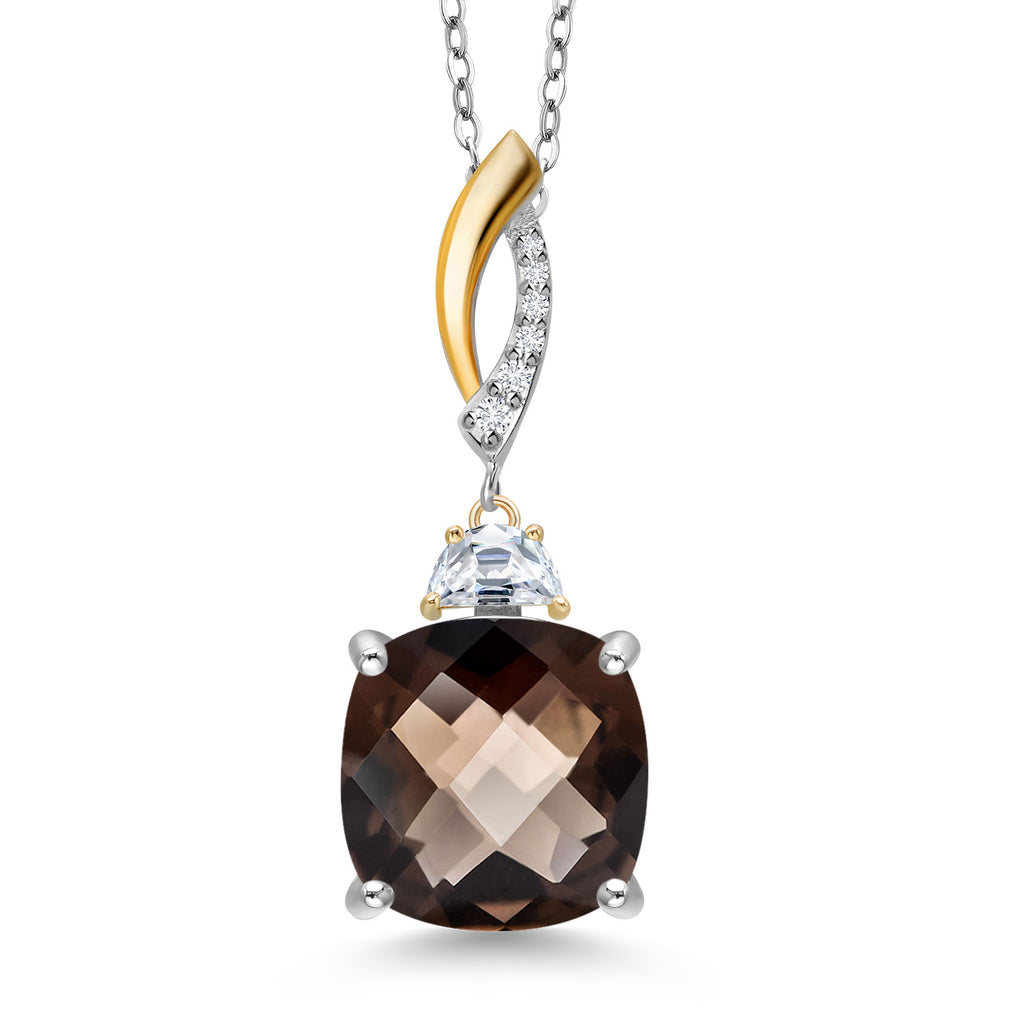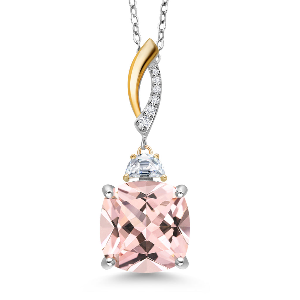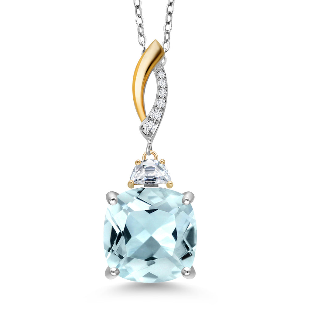 Gemstone Birthstone and Moissanite Pendant Necklace for Women | 925 Silver and 10K Yellow Gold | Cushion 12MM | Half Moon 5X3MM | With 18 Inch Silver Chain