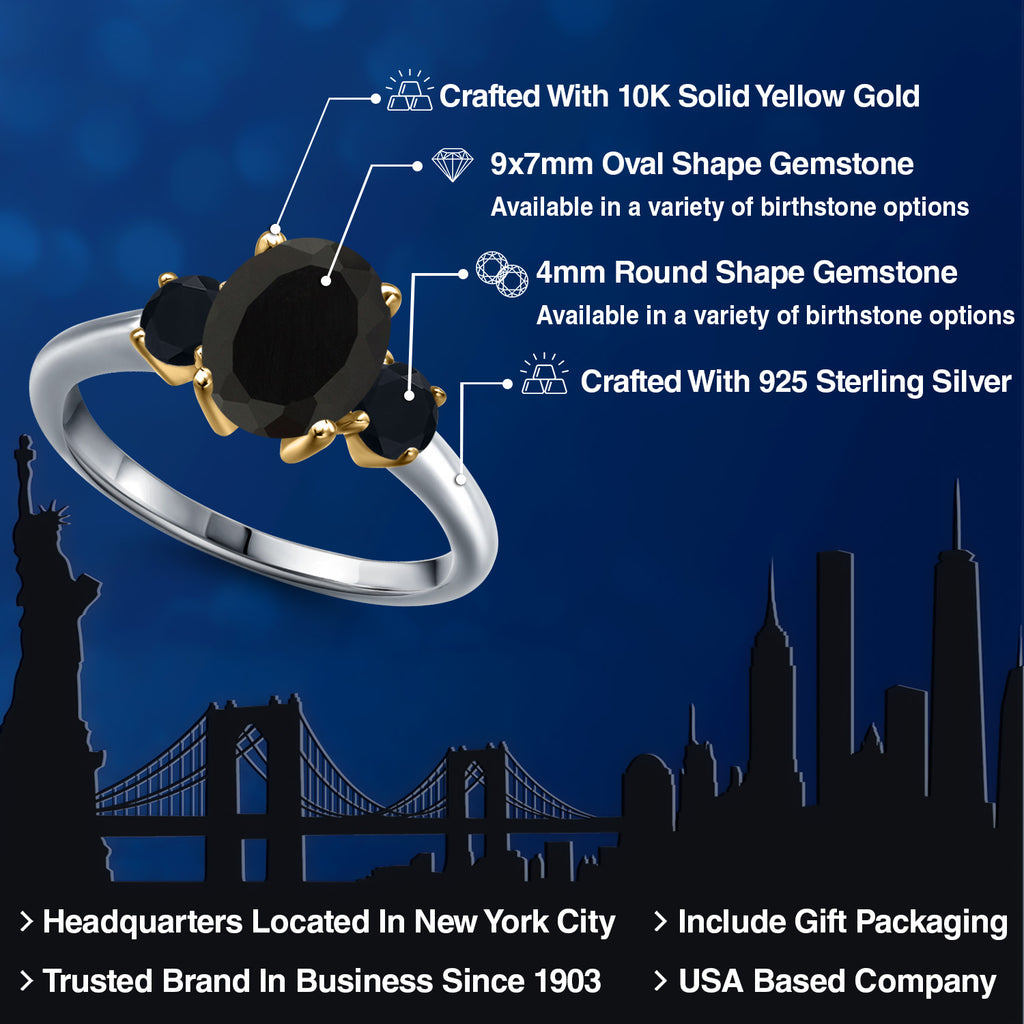 2-Tone Engagement Ring For Women | 925 Silver and 10K Yellow Gold | Gemstone Birthstone | 6MM Cushion Cut | Wedding Anniversary Promise Ring | Available In Size 5, 6, 7, 8, 9