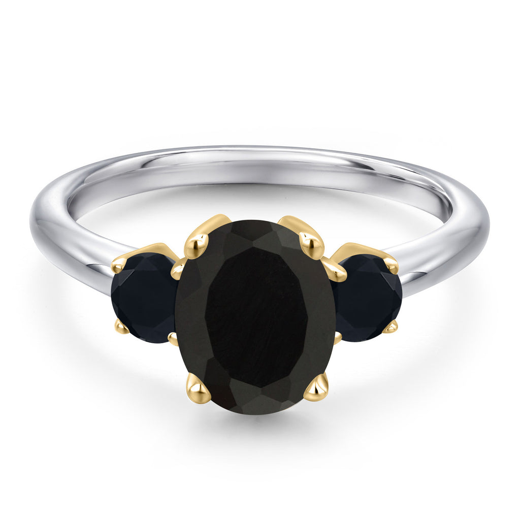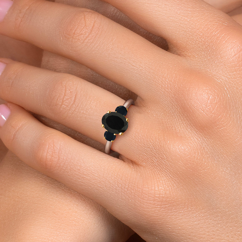 MEASUREMENTS: 9x7mm Oval Black Onyx, 4x4mm Round Black Onyx. Total Carat Weight is 2.44 cttw