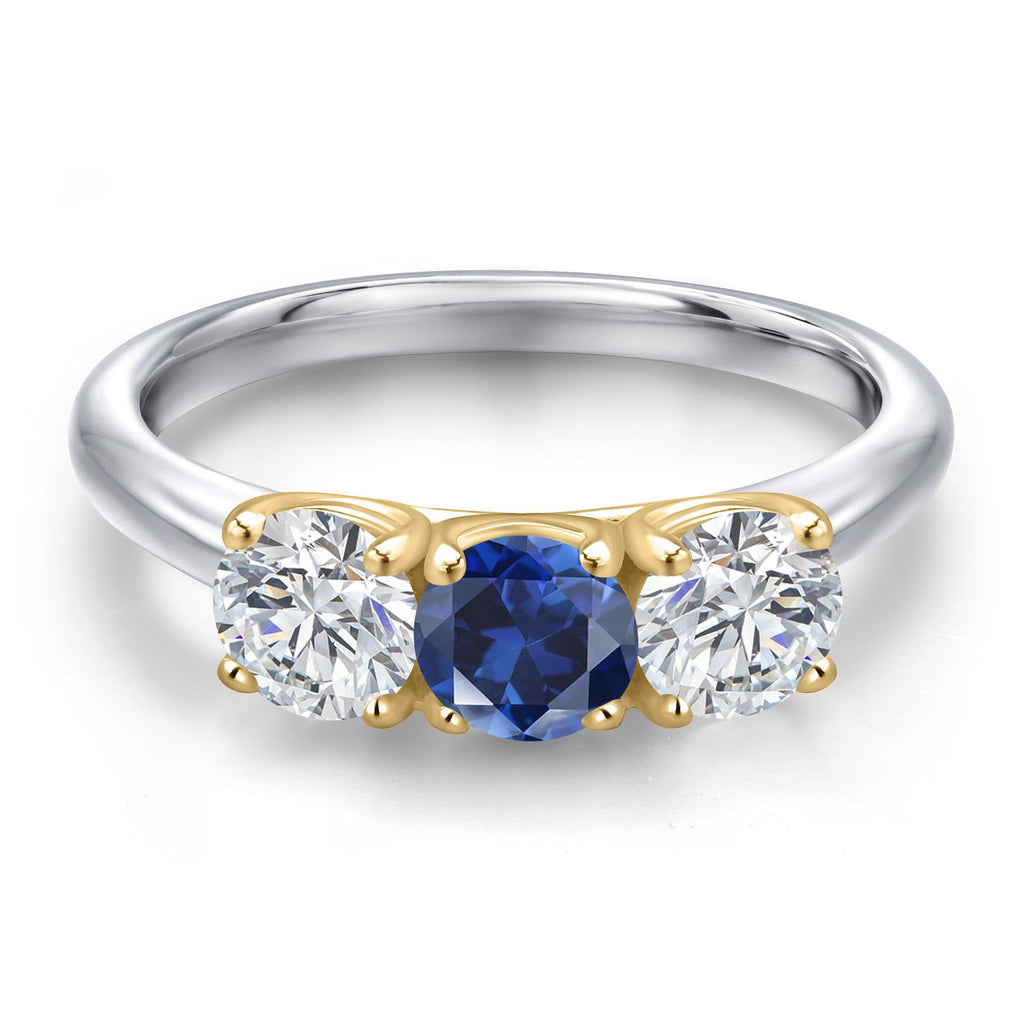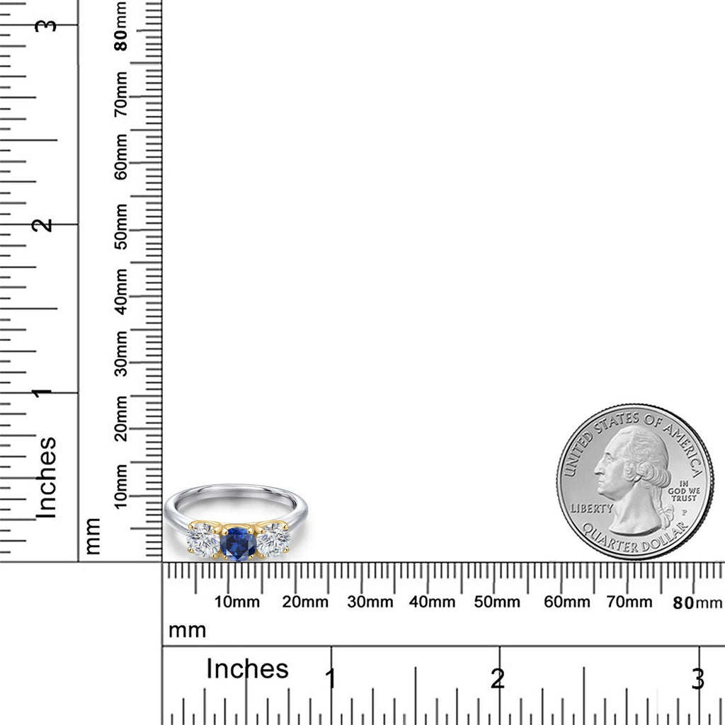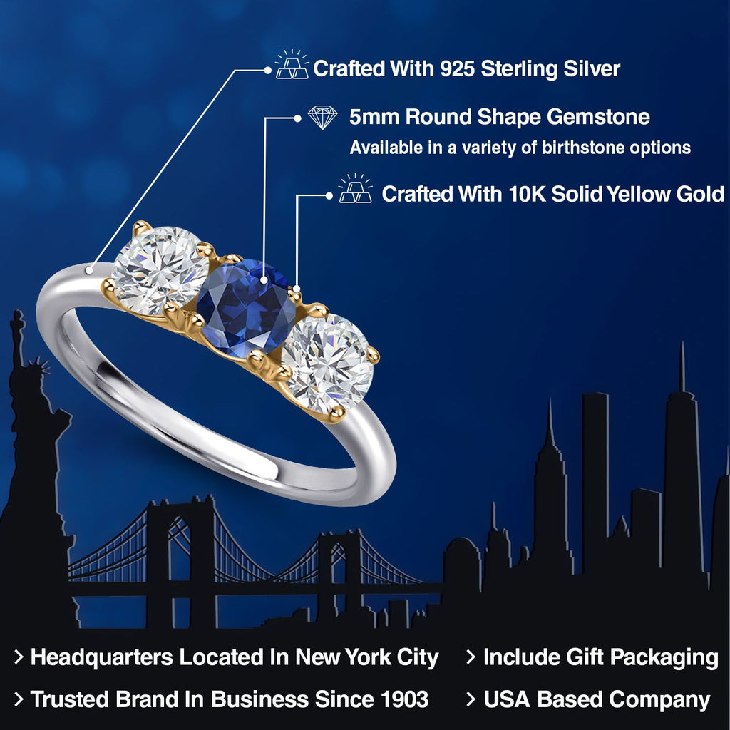 925 Silver and 10K Yellow Gold Blue Created Sapphire and Lab Grown Diamond Engagement Ring For Women | 1.60 Cttw | Round 5MM | Gemstone September Birthstone