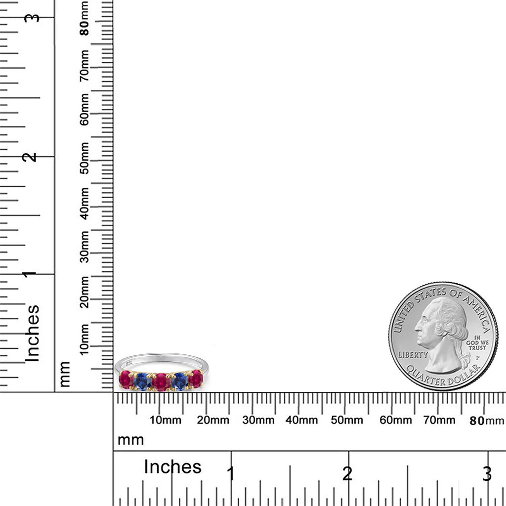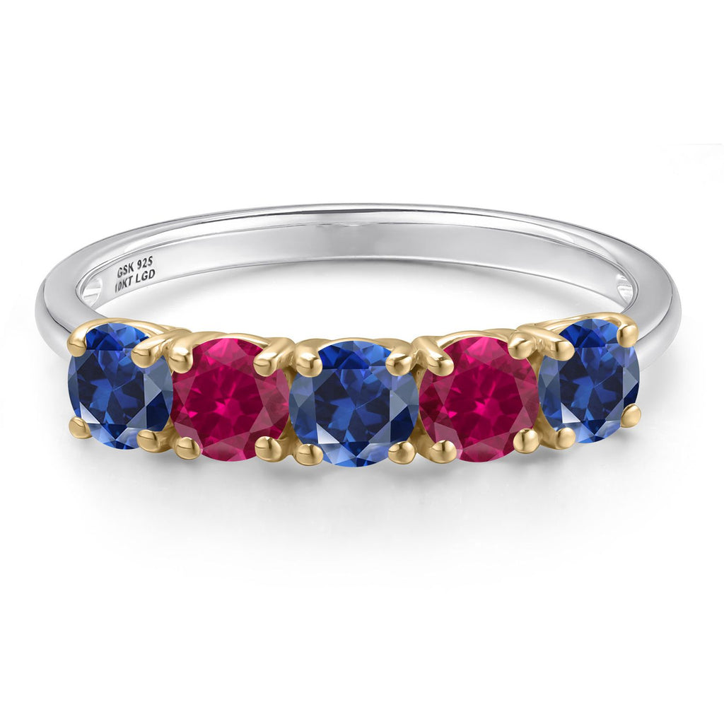 925 Silver and 10K Yellow Gold Blue Created Sapphire and Red Created Ruby Wedding-Bands Ring For Women | 1.25 Cttw | Round 4MM | Gemstone September Birthstone