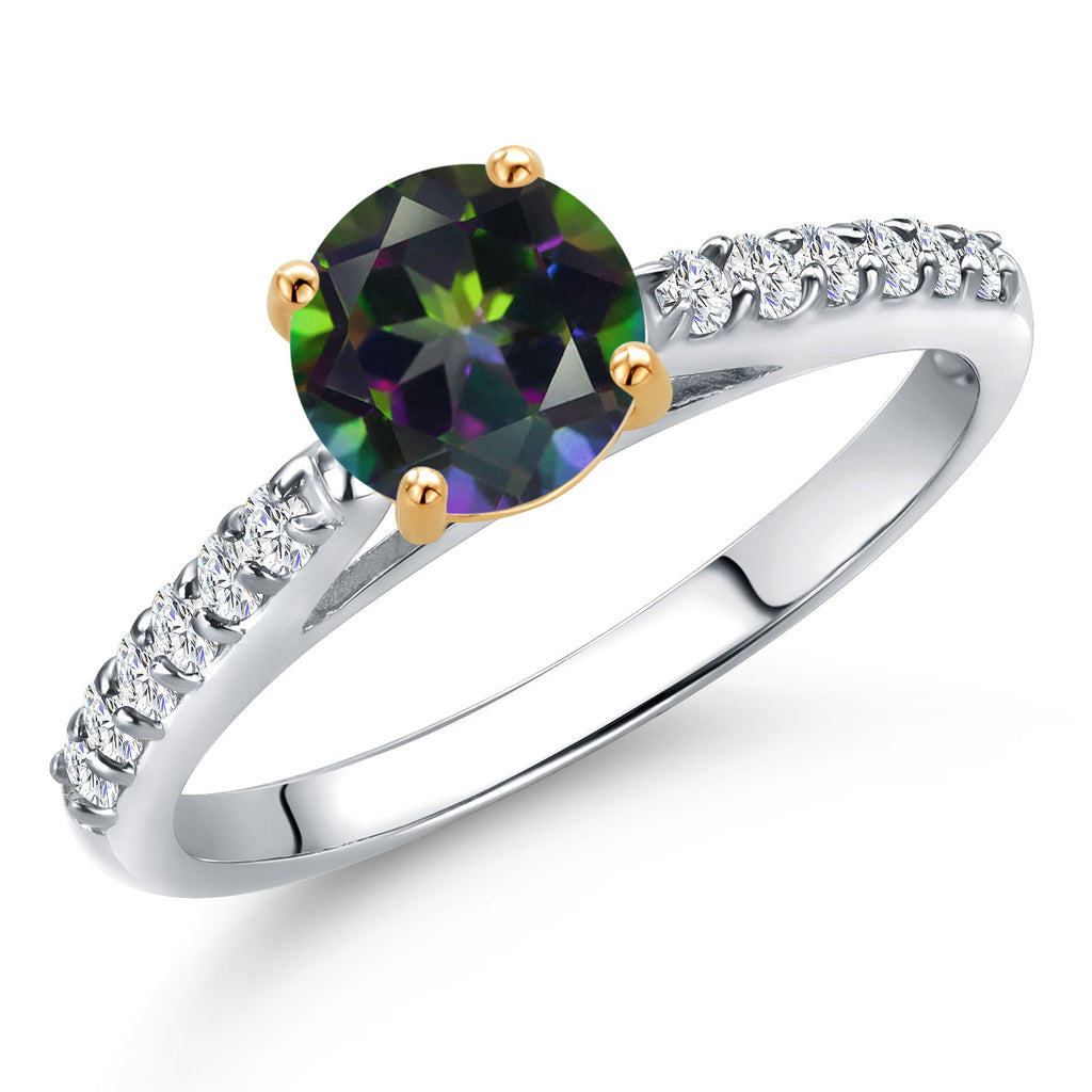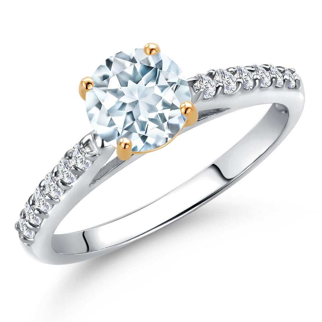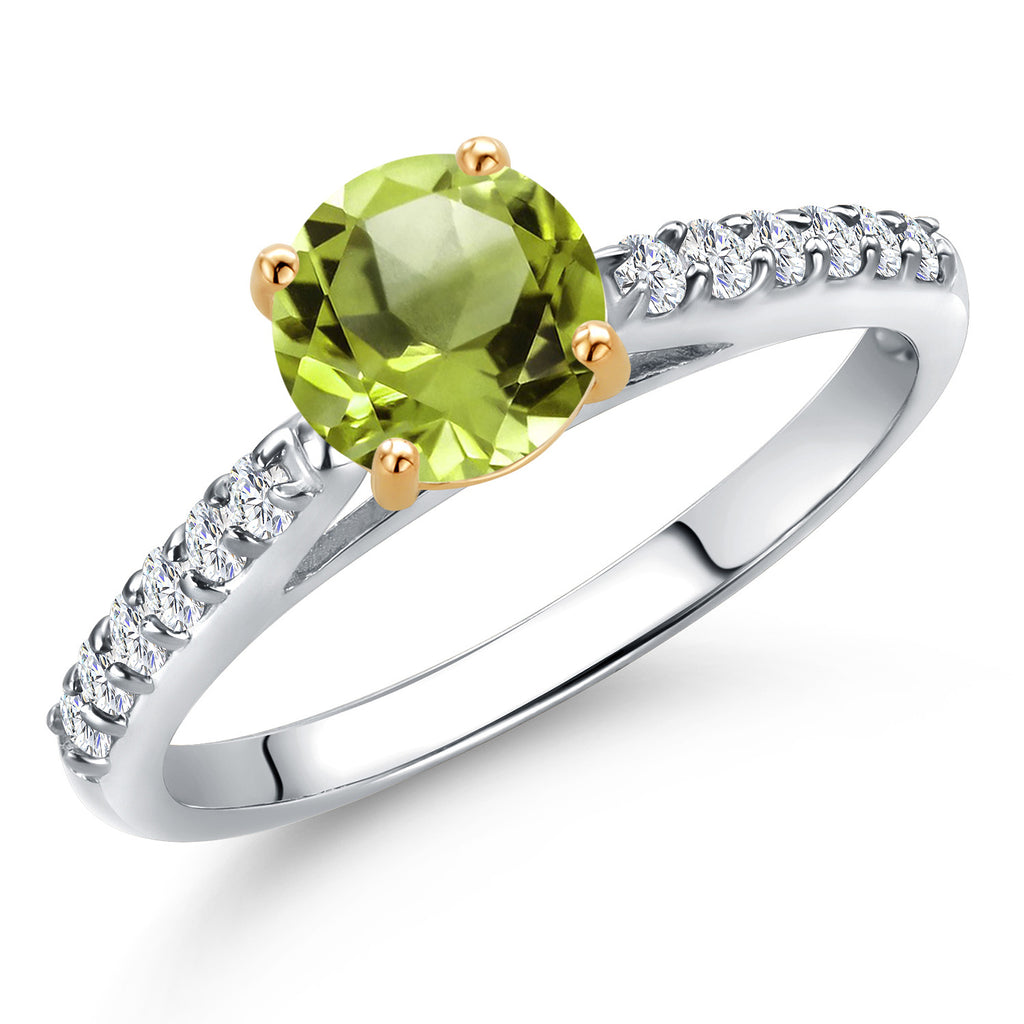 925 Silver and 10K Yellow Gold Round 6MM Gemstone Birthstone and Lab Grown Diamond Engagement Ring For Women | Wedding Anniversary Promise Ring For Women | Size 5,6,7,8,9
