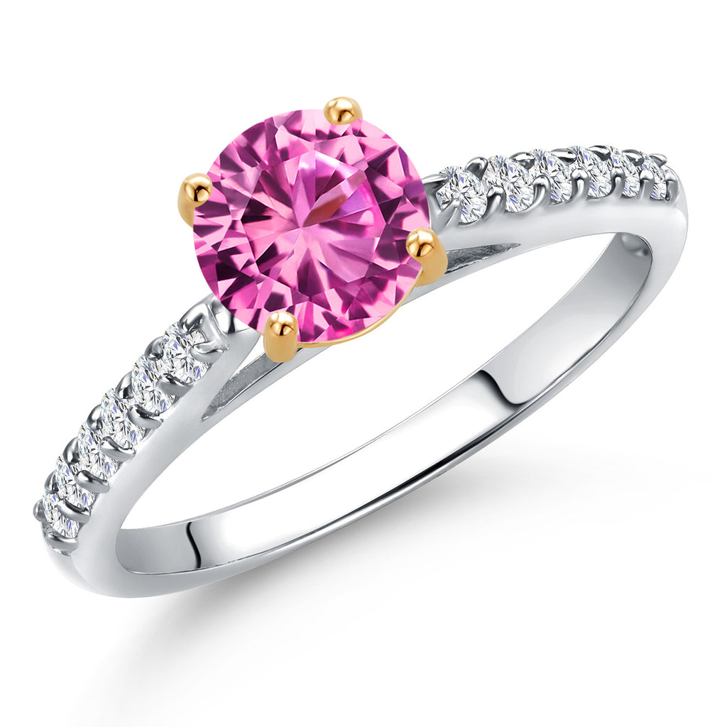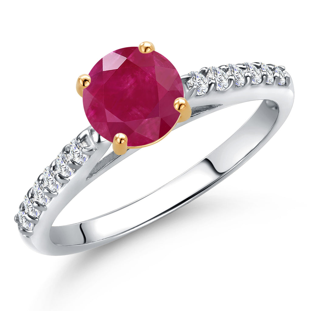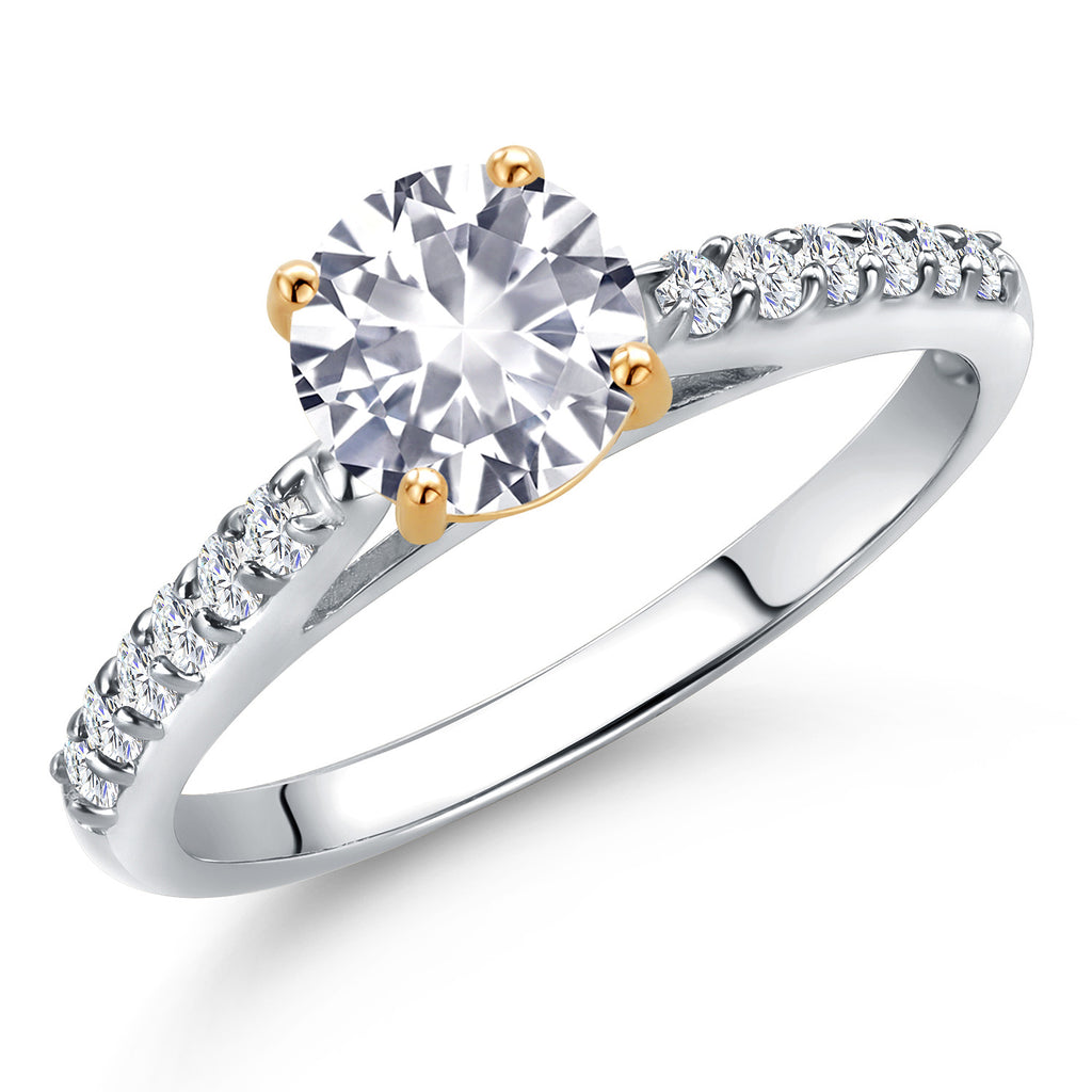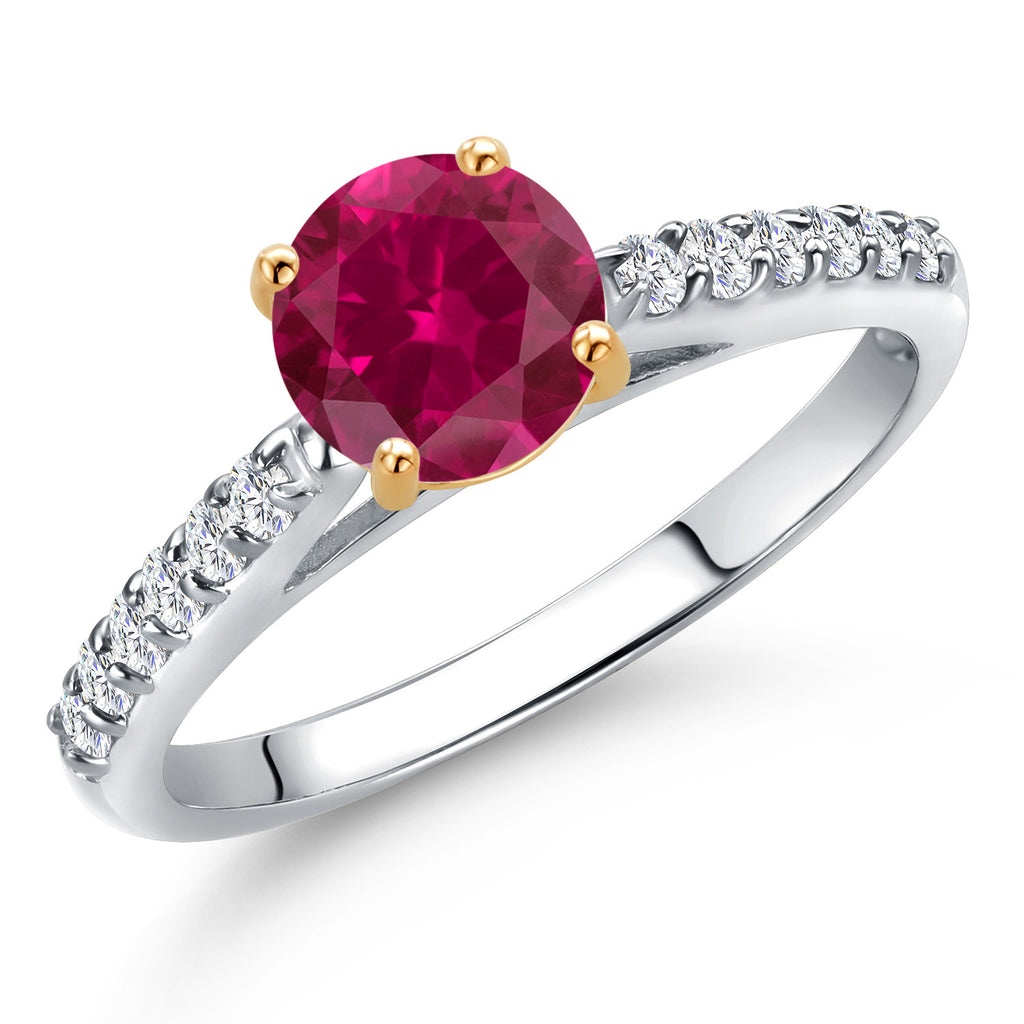 925 Silver and 10K Yellow Gold Round 6MM Gemstone Birthstone and Lab Grown Diamond Engagement Ring For Women | Wedding Anniversary Promise Ring For Women | Size 5,6,7,8,9