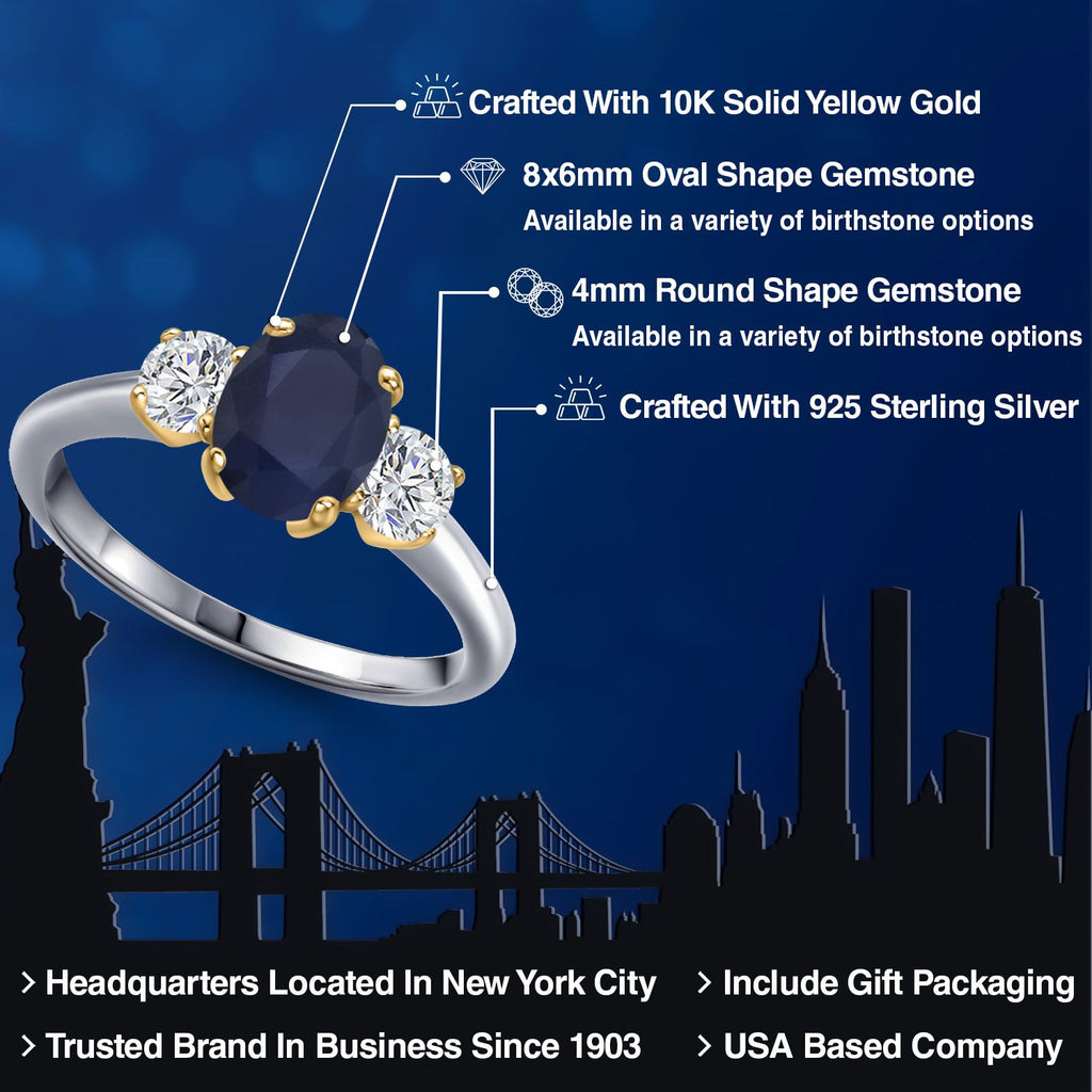 2-Tone Engagement Ring For Women | 925 Silver and 10K Yellow Gold | Gemstone Birthstone | 6MM Cushion Cut | Wedding Anniversary Promise Ring | Available In Size 5, 6, 7, 8, 9