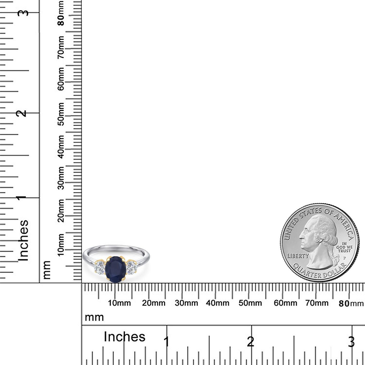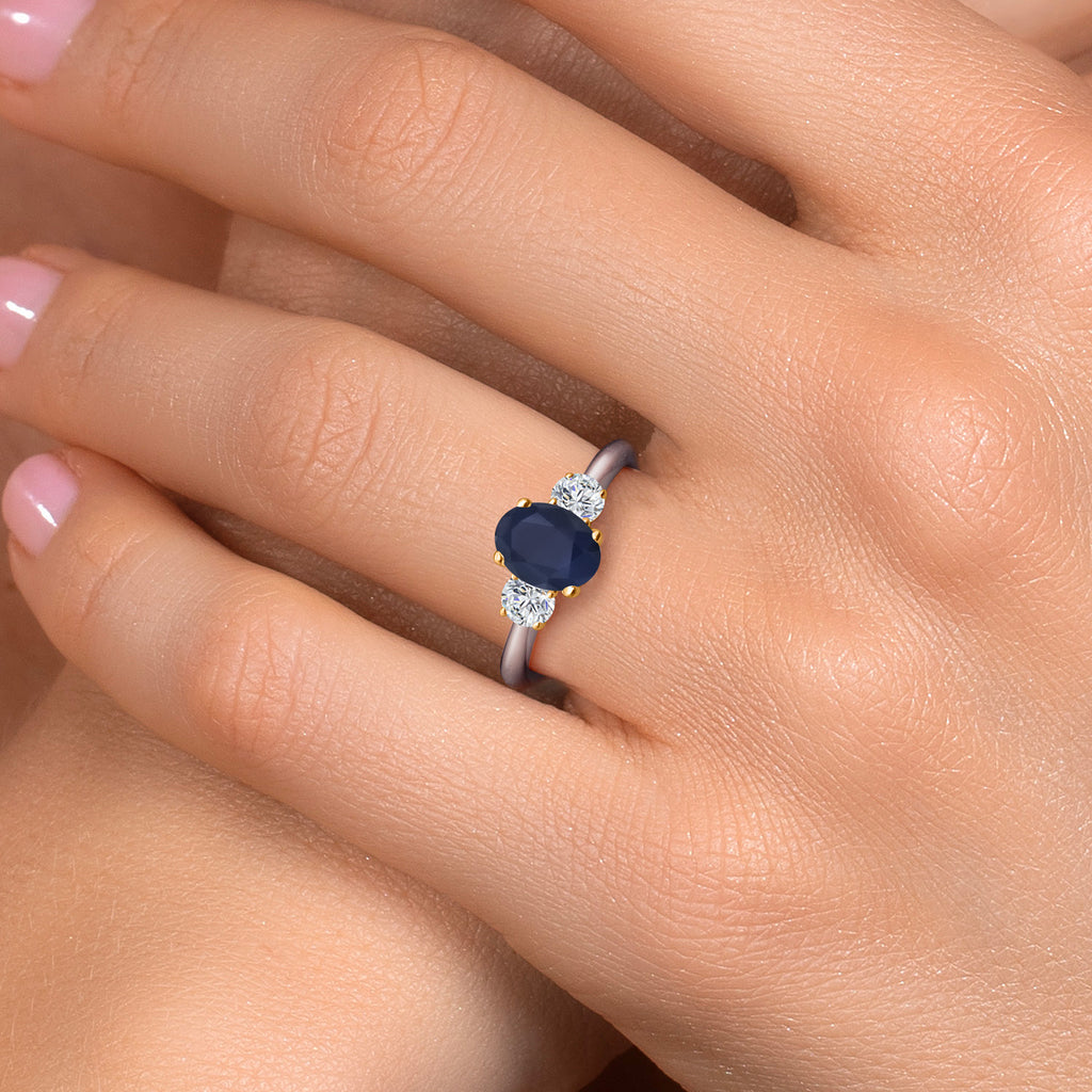 MEASUREMENTS: 8x6mm Oval Diffused Blue Sapphire, 4x4mm Round E - F Lab Grown Diamond. Total Carat Weight is 2.34 cttw