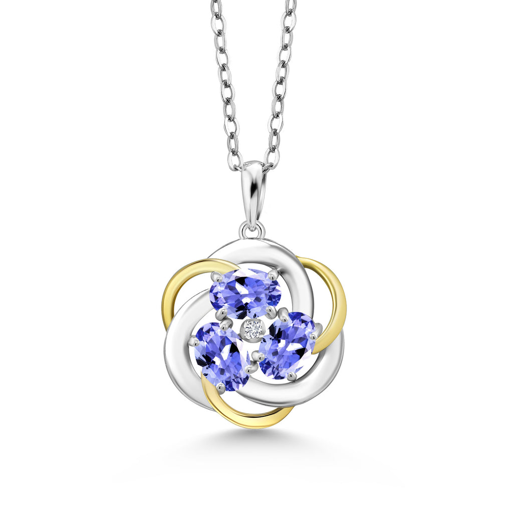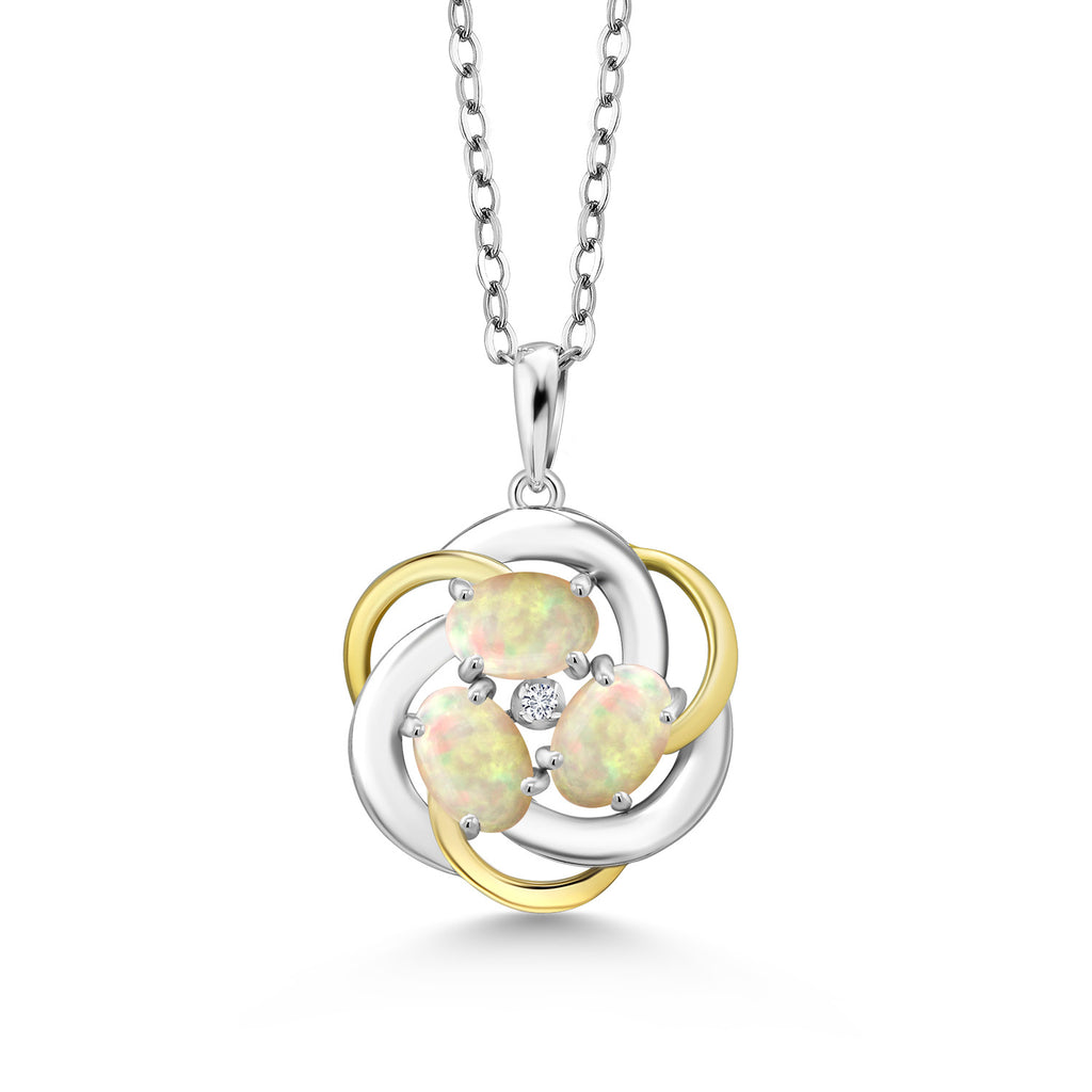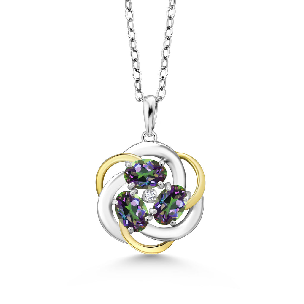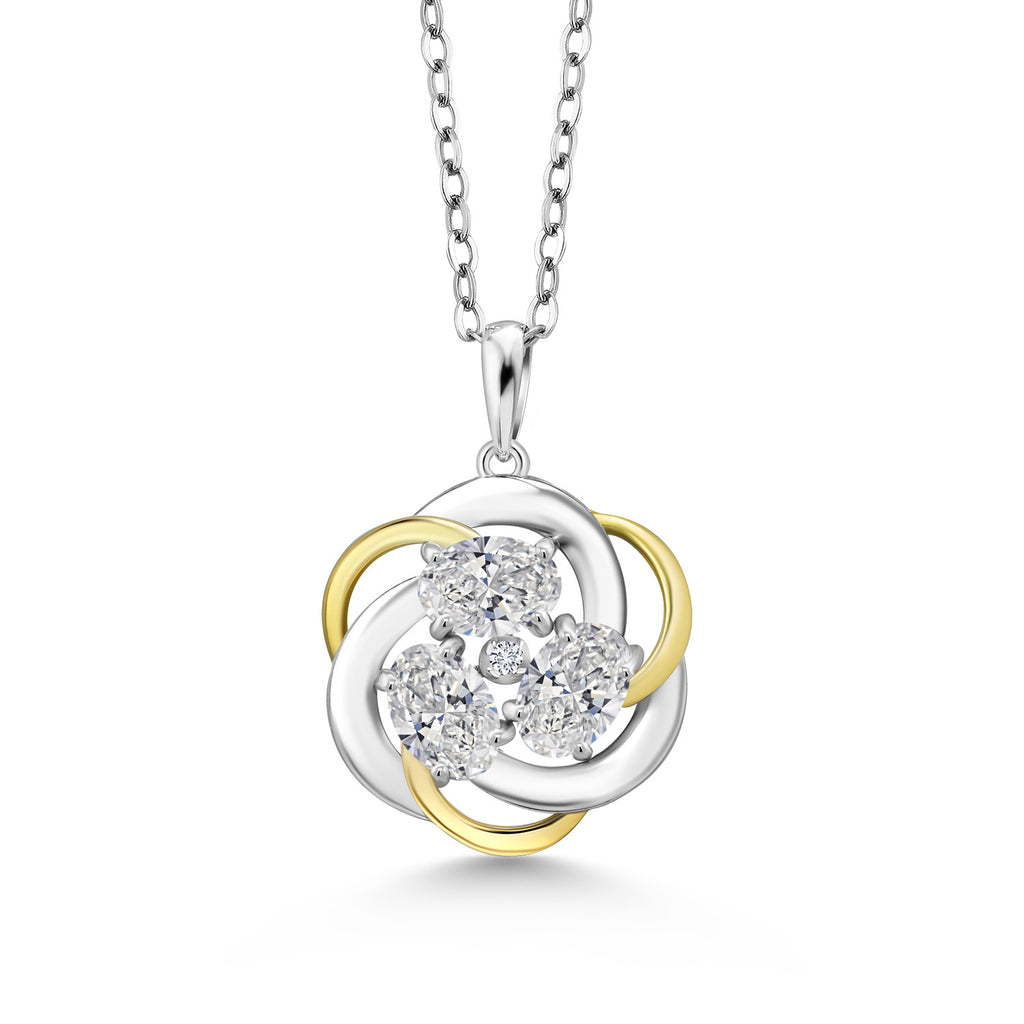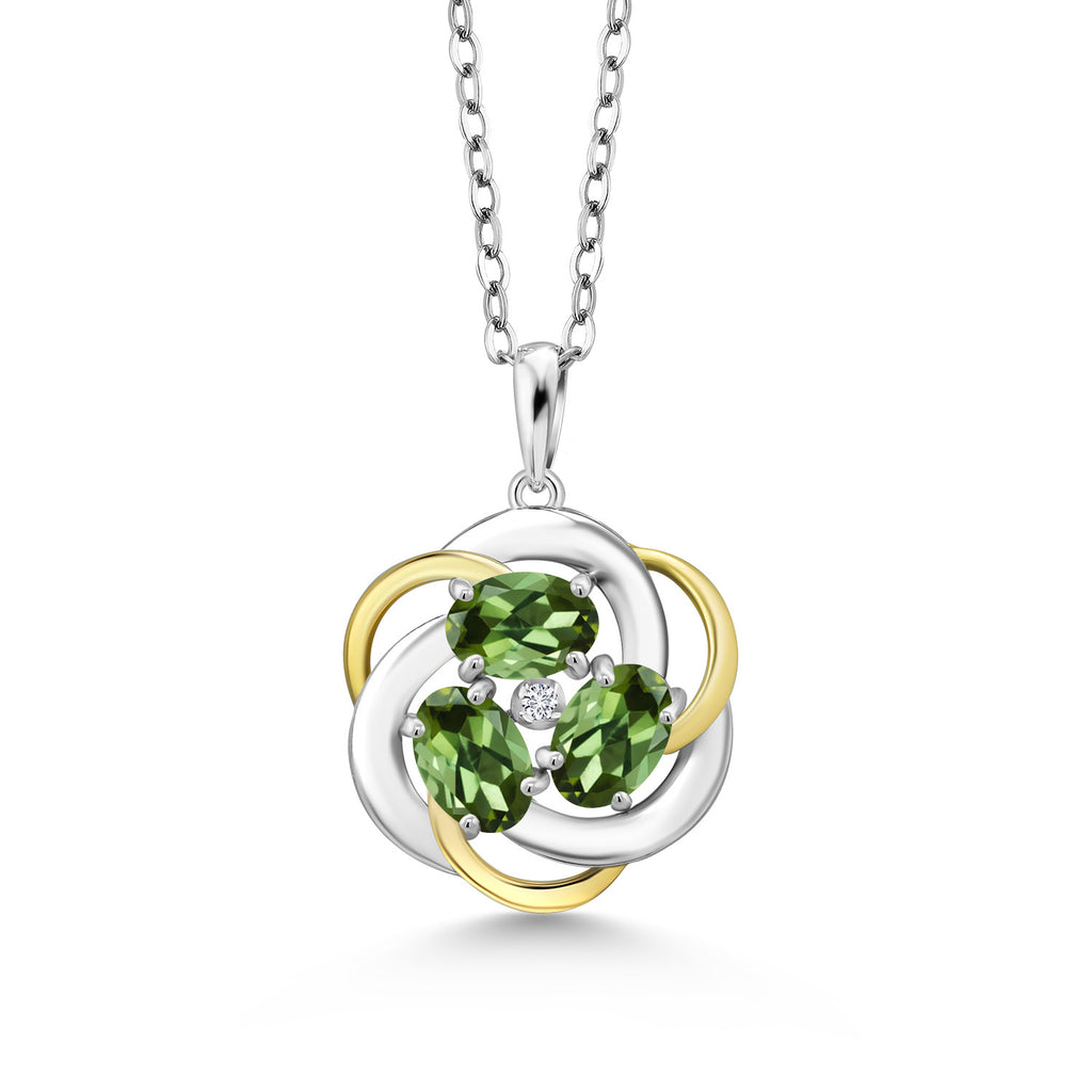 Two-Tone Gemstone Birthstone and Lab Grown Diamond 3-Stone Twisted Infinity Pendant Necklace for Women | 925 Silver and 10K Yellow Gold | Oval 6X4MM and 1.3MM Round | With 18 Inch Chain