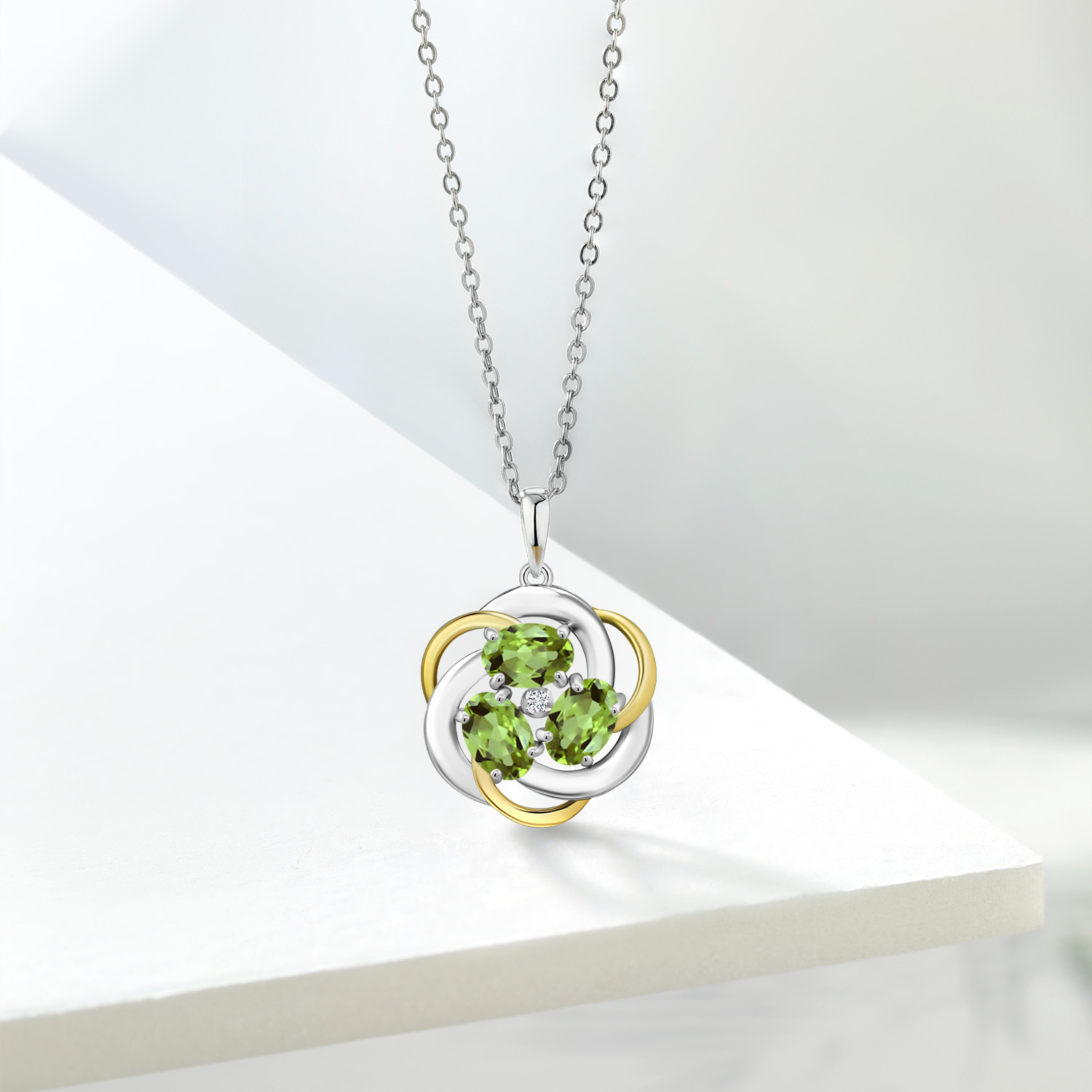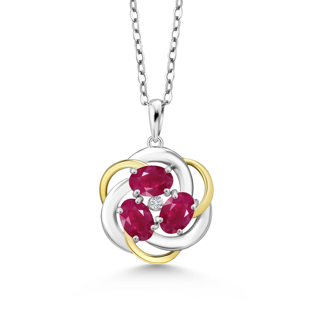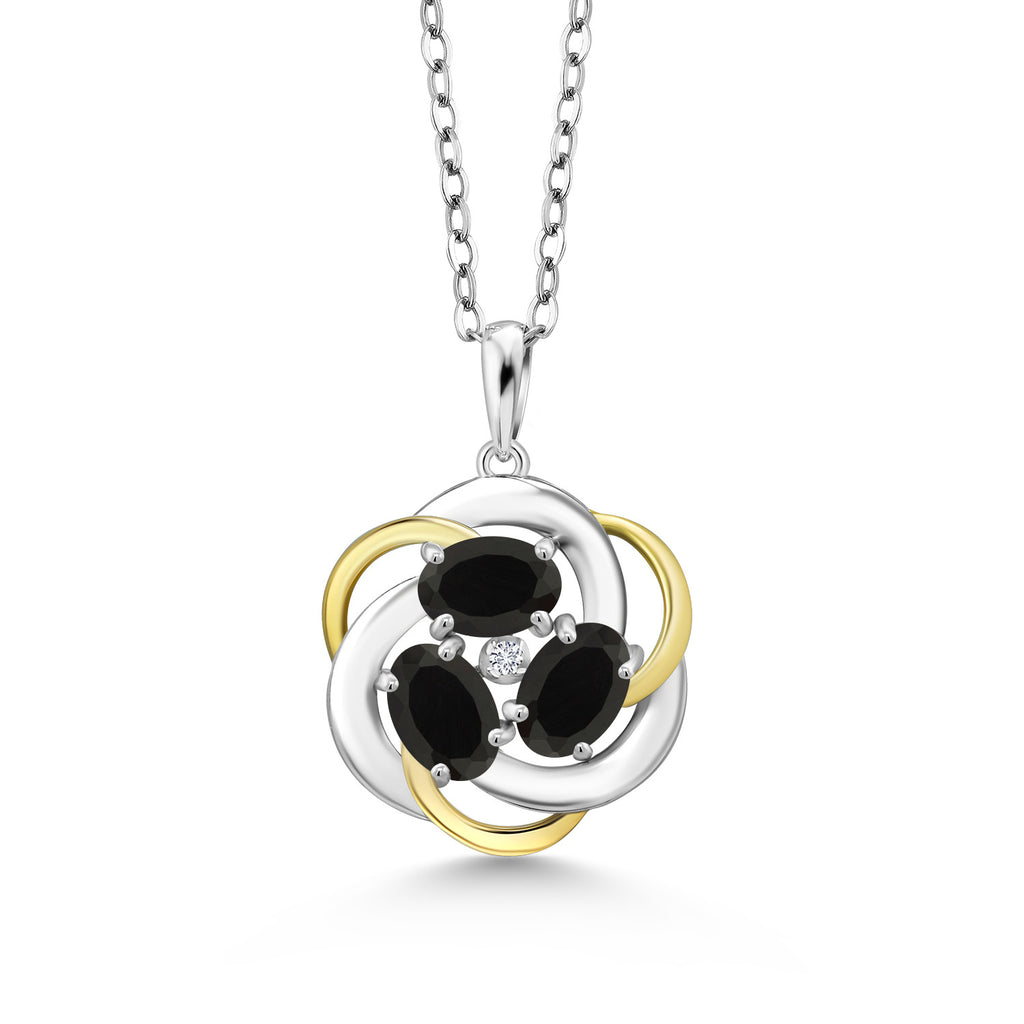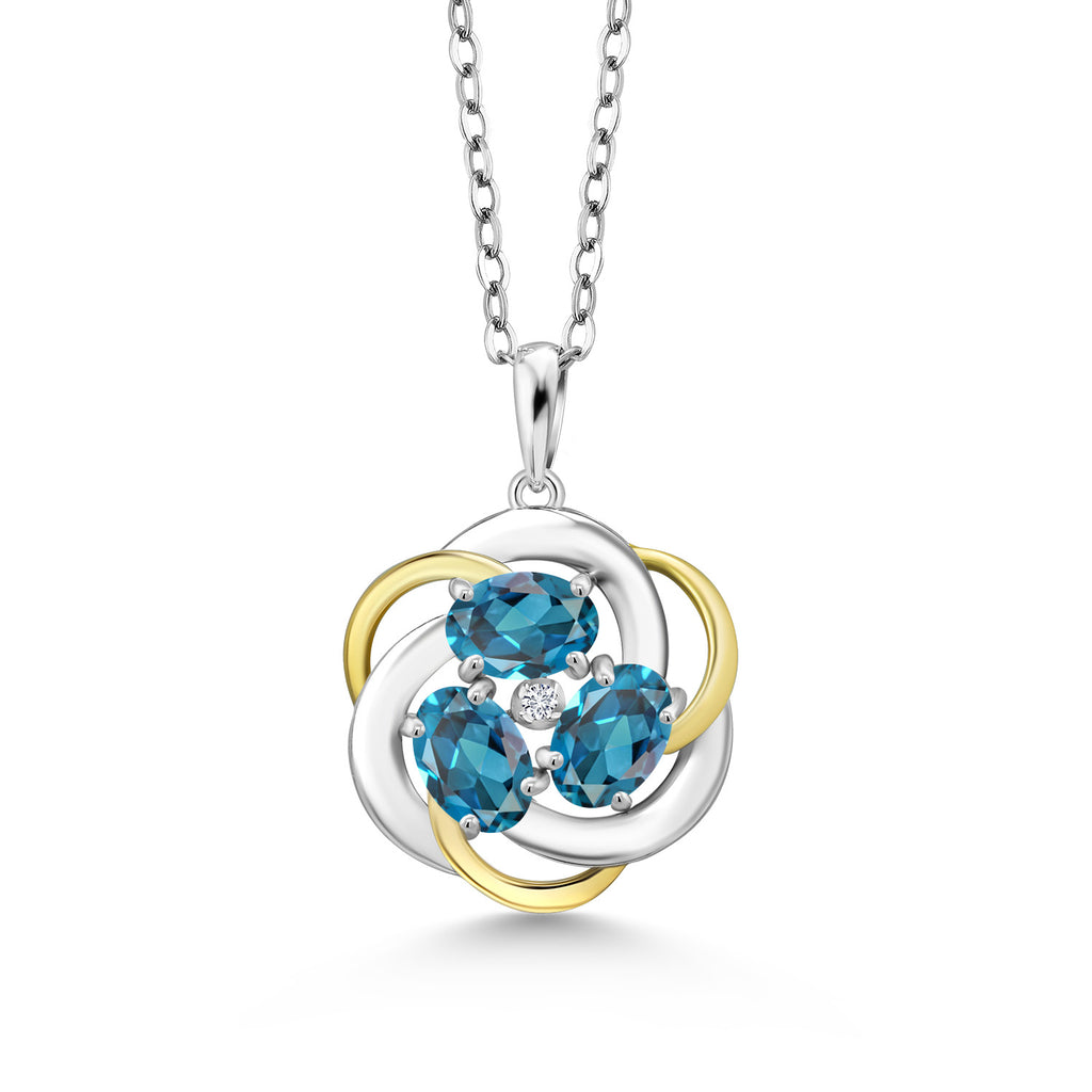 Two-Tone Gemstone Birthstone and Lab Grown Diamond 3-Stone Twisted Infinity Pendant Necklace for Women | 925 Silver and 10K Yellow Gold | Oval 6X4MM and 1.3MM Round | With 18 Inch Chain