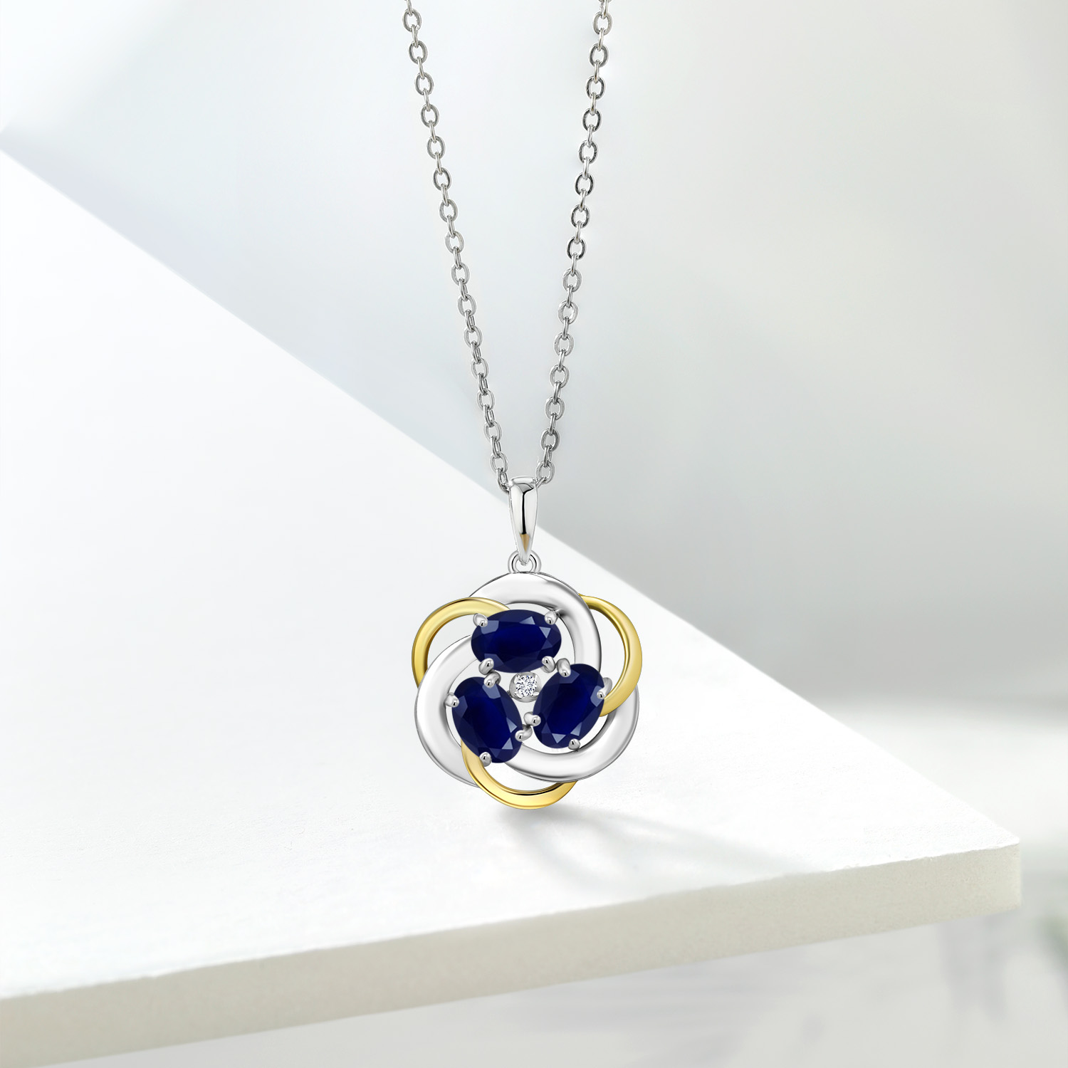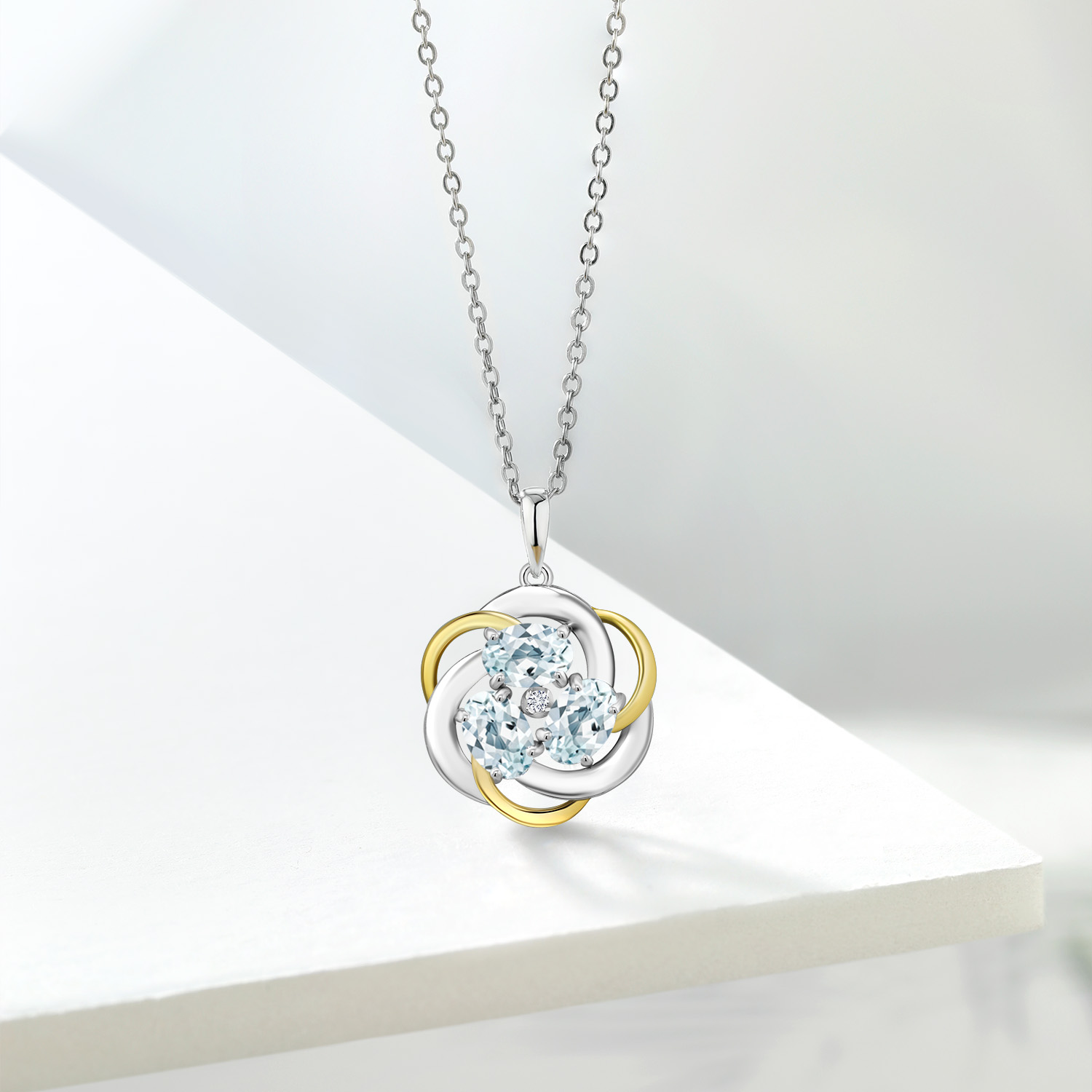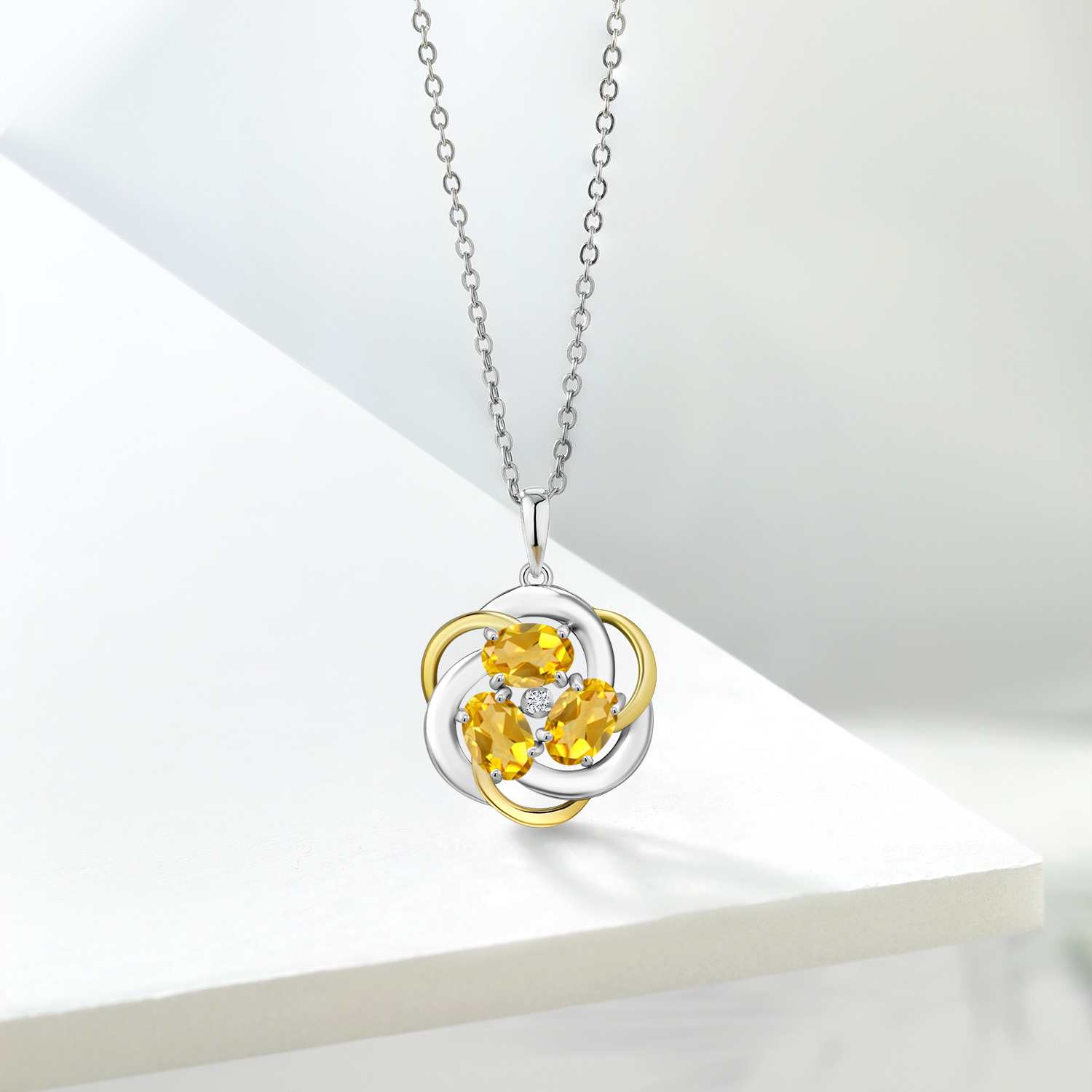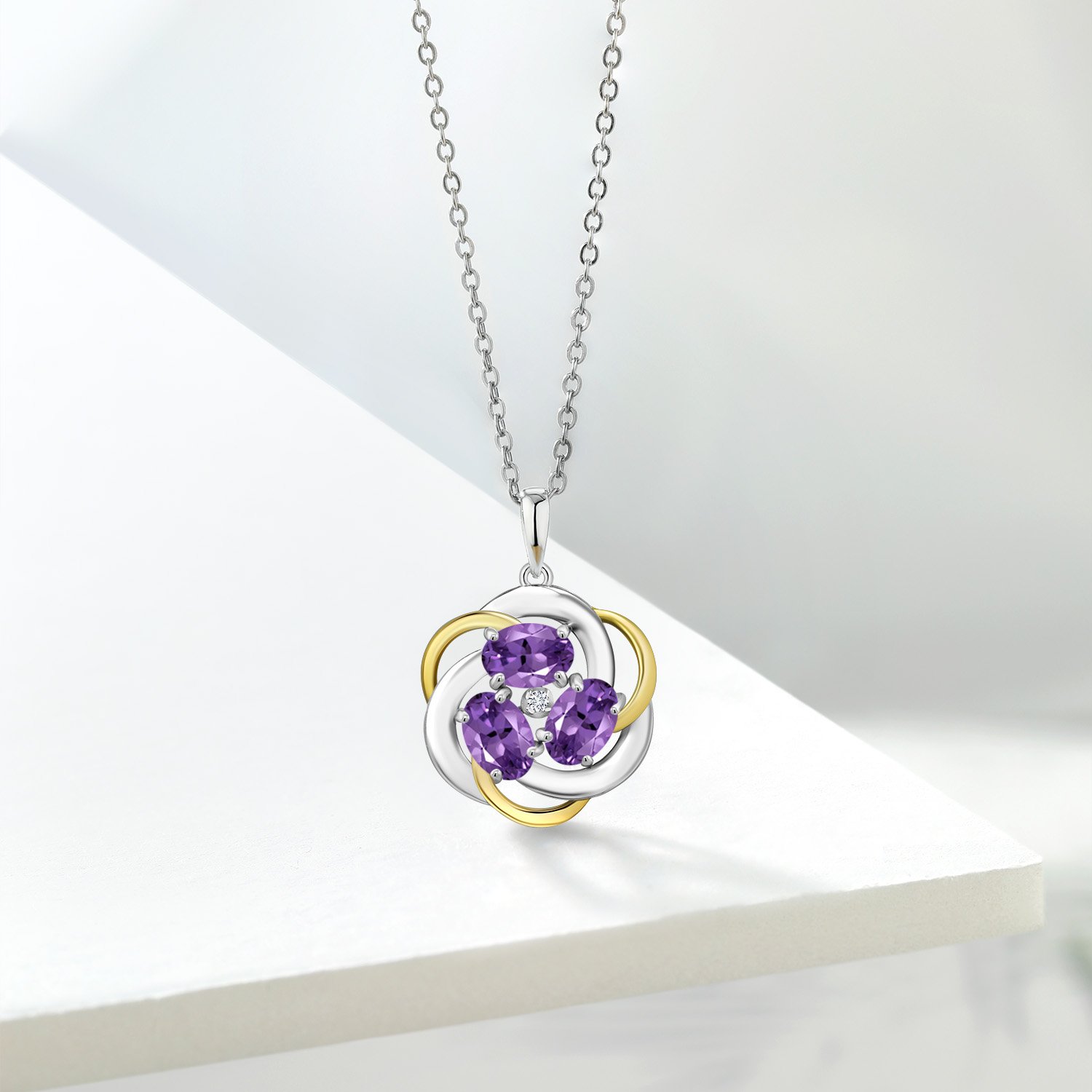 Two-Tone Gemstone Birthstone and Lab Grown Diamond 3-Stone Twisted Infinity Pendant Necklace for Women | 925 Silver and 10K Yellow Gold | Oval 6X4MM and 1.3MM Round | With 18 Inch Chain