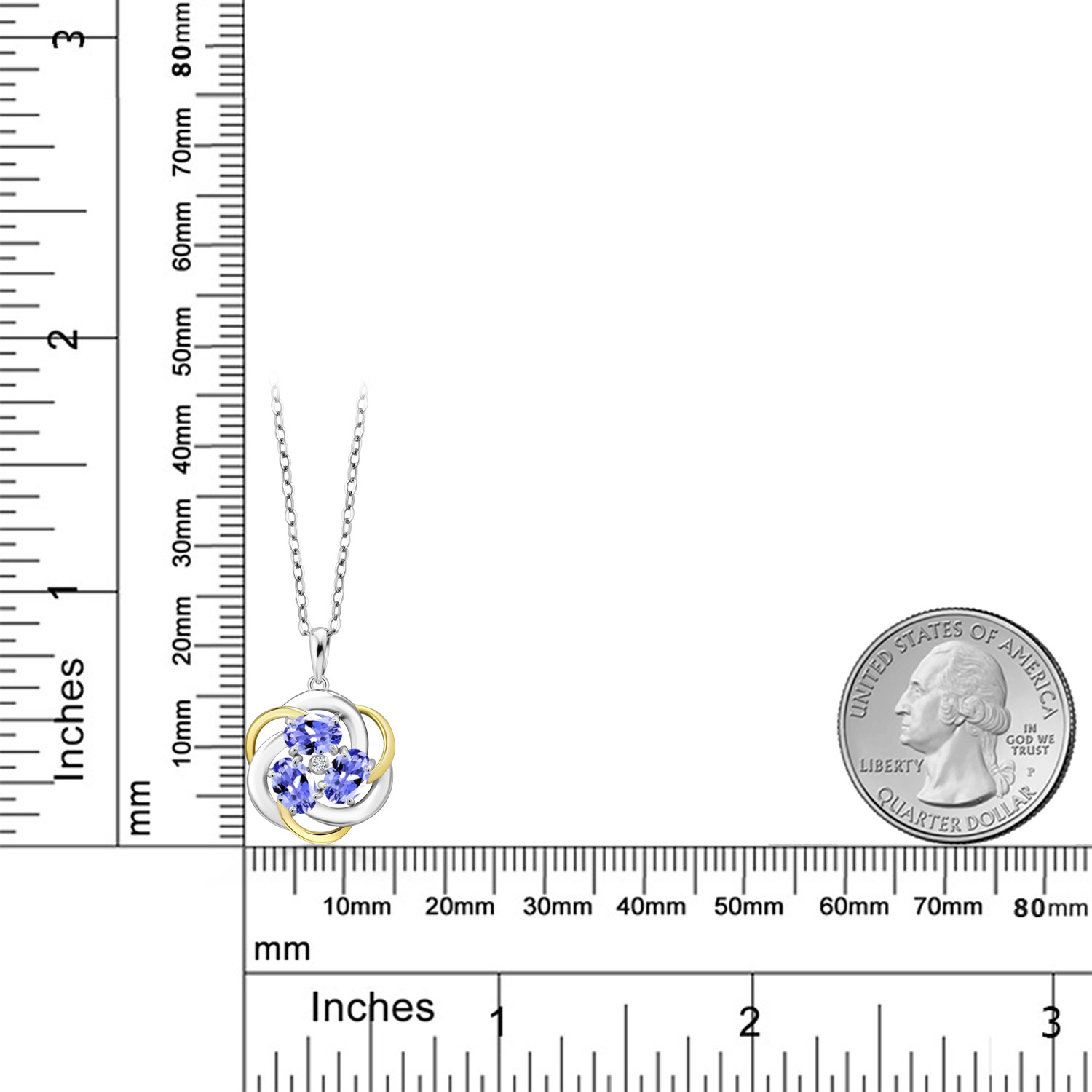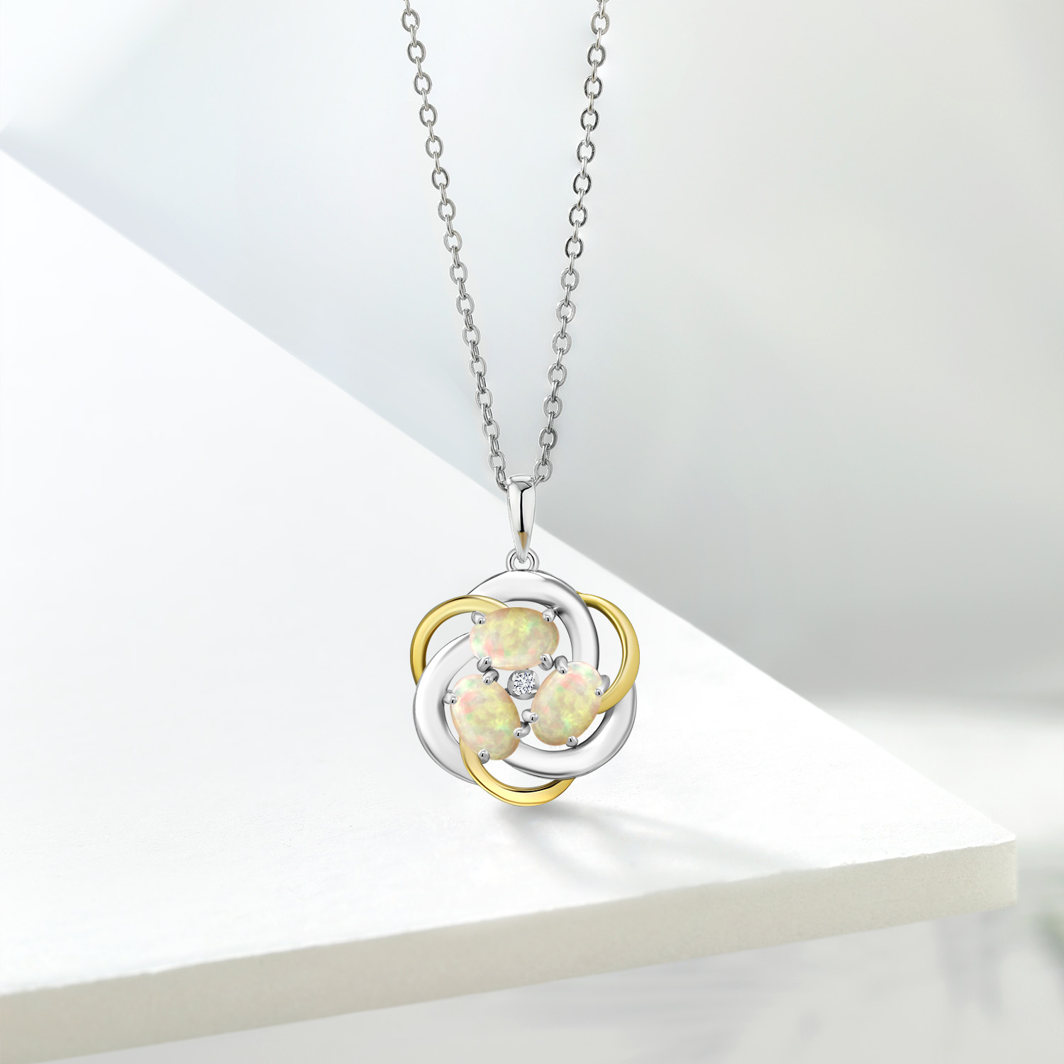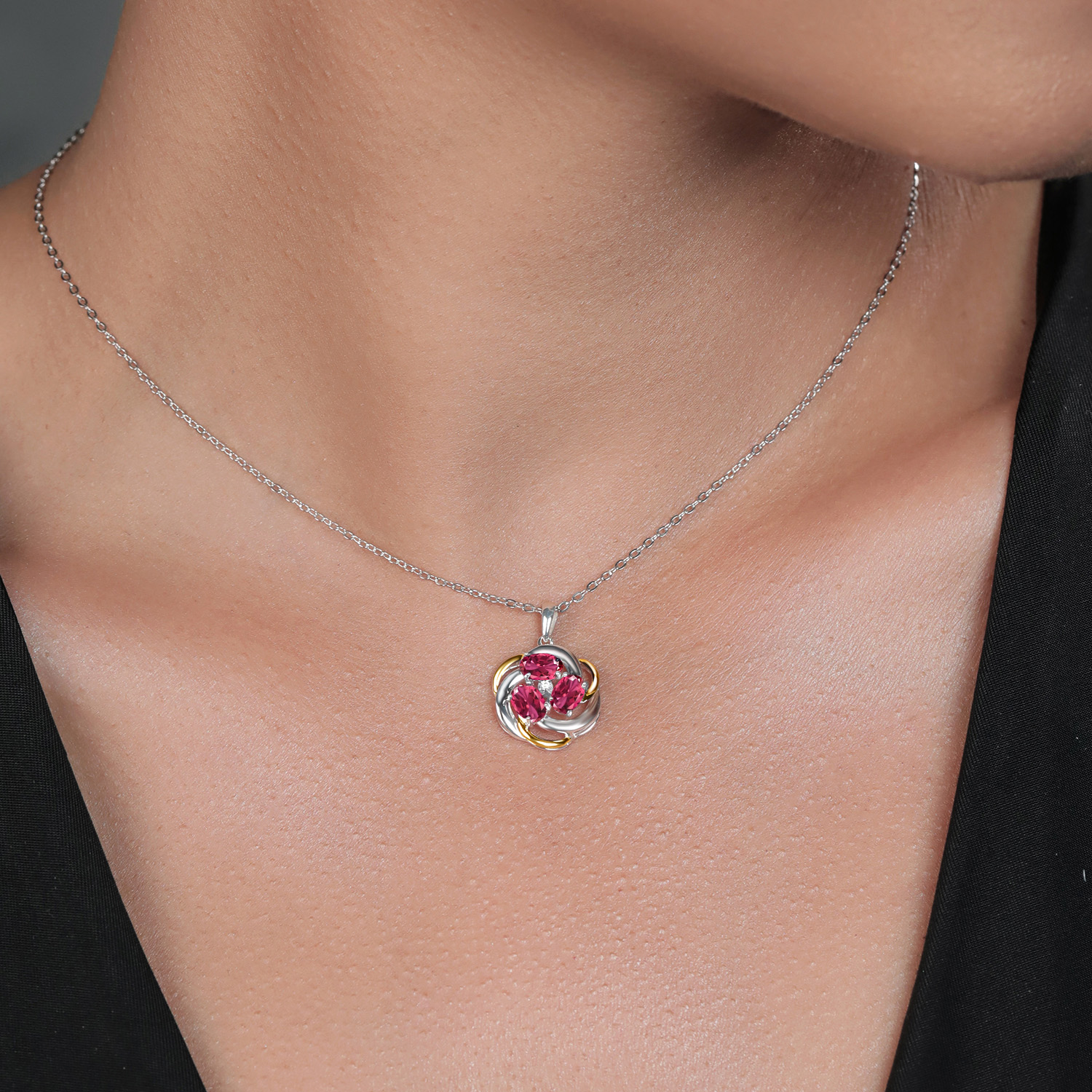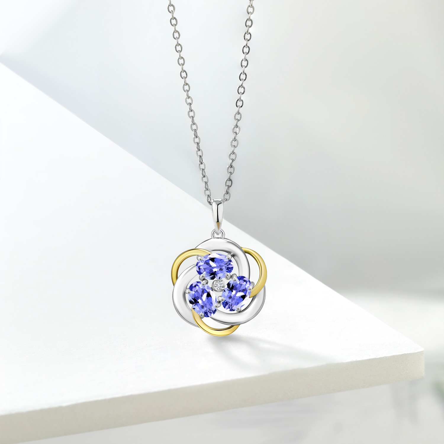 Two-Tone Gemstone Birthstone and Lab Grown Diamond 3-Stone Twisted Infinity Pendant Necklace for Women | 925 Silver and 10K Yellow Gold | Oval 6X4MM and 1.3MM Round | With 18 Inch Chain