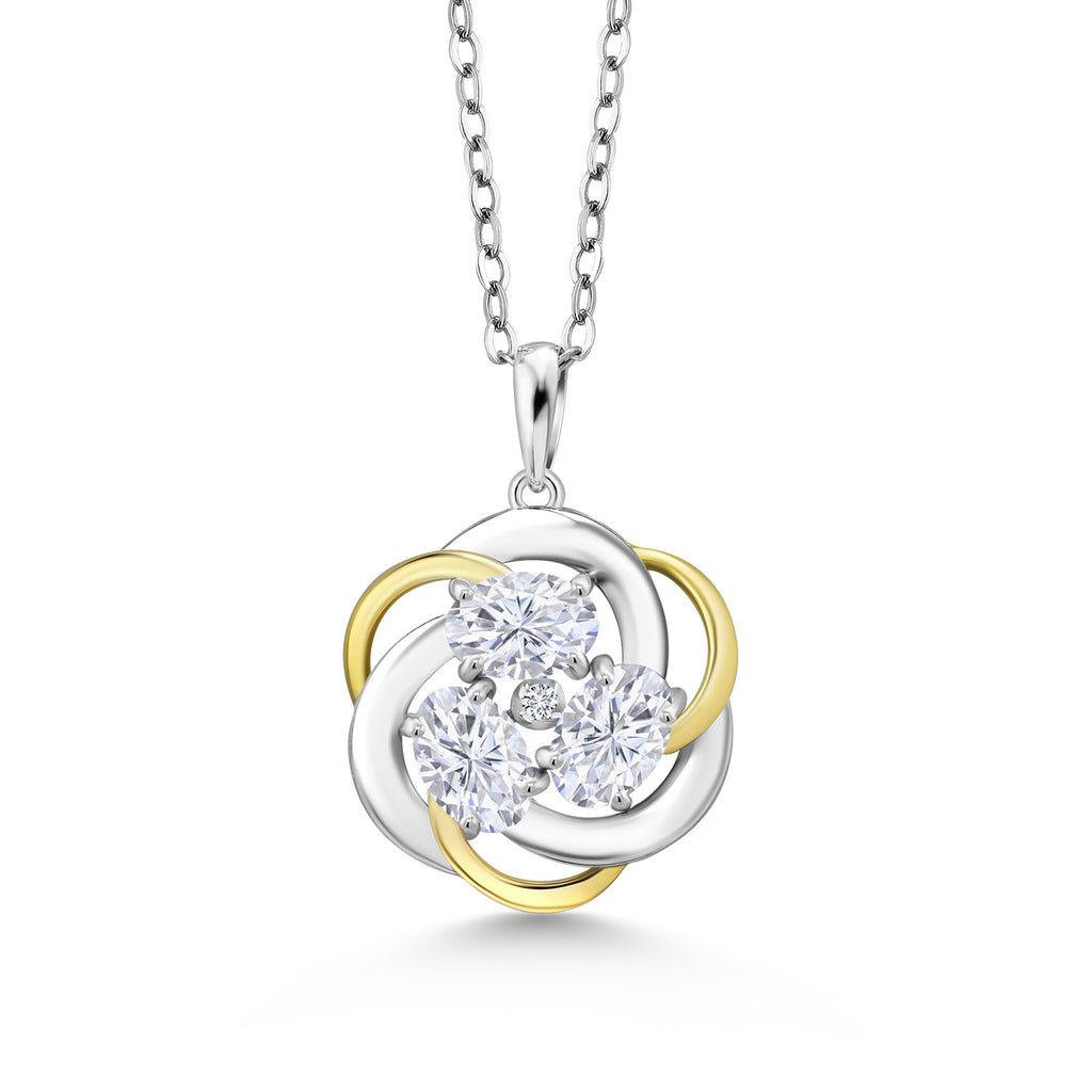 2.75 Cttw IGI Certified Lab Grown Diamond 3-Stone Pendant Necklace for Women In 925 Silver and 10K Yellow Gold | E-F Color | VS1-VS2 Clarity | 18 Inch Chain