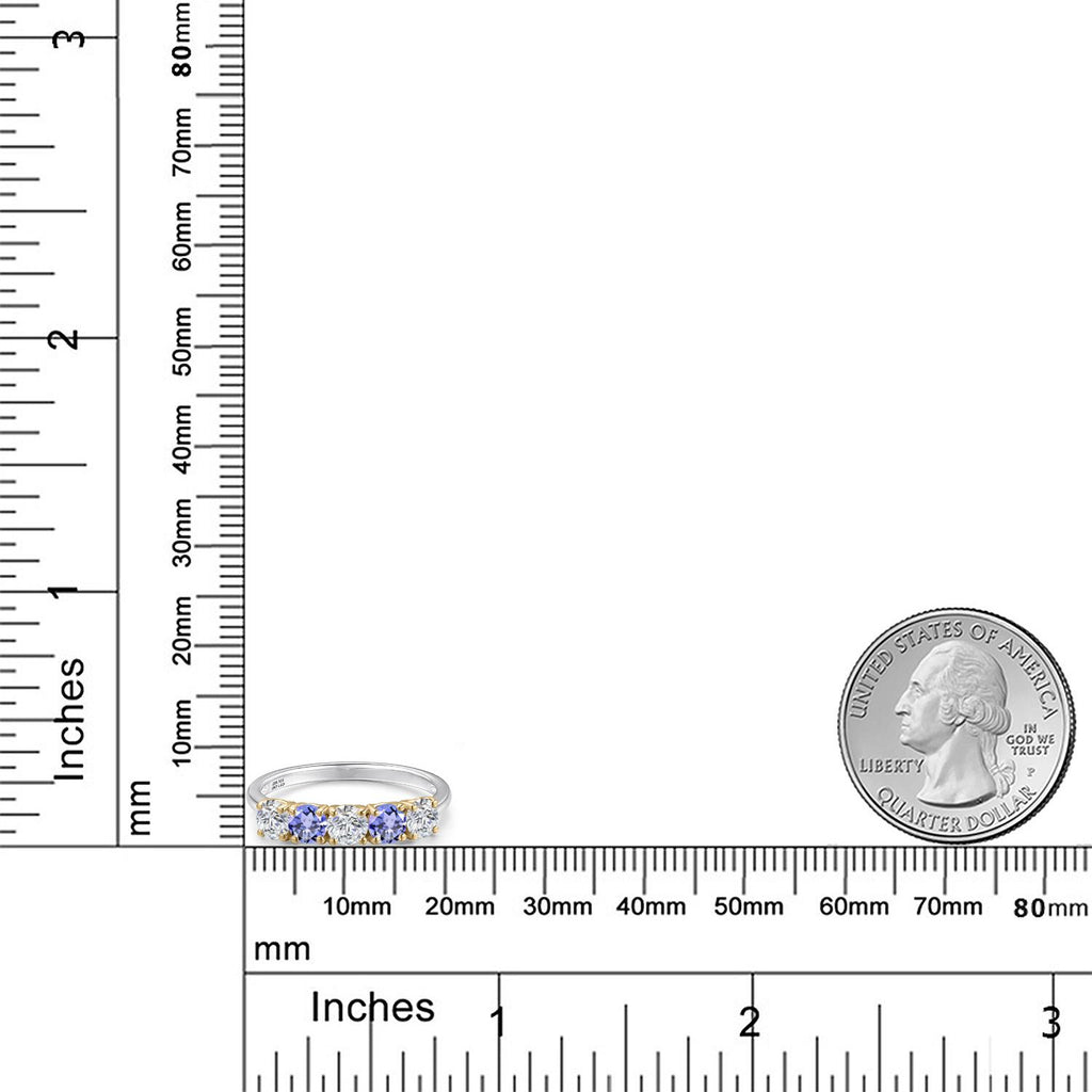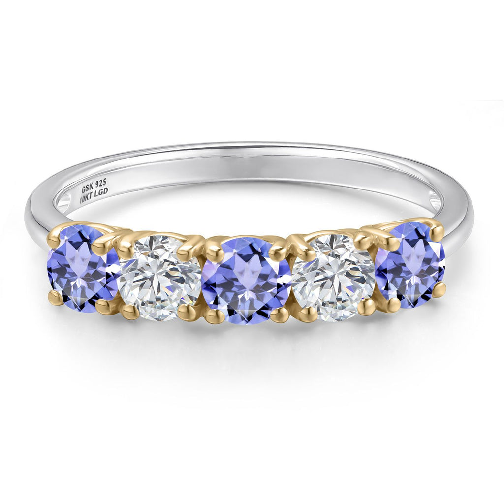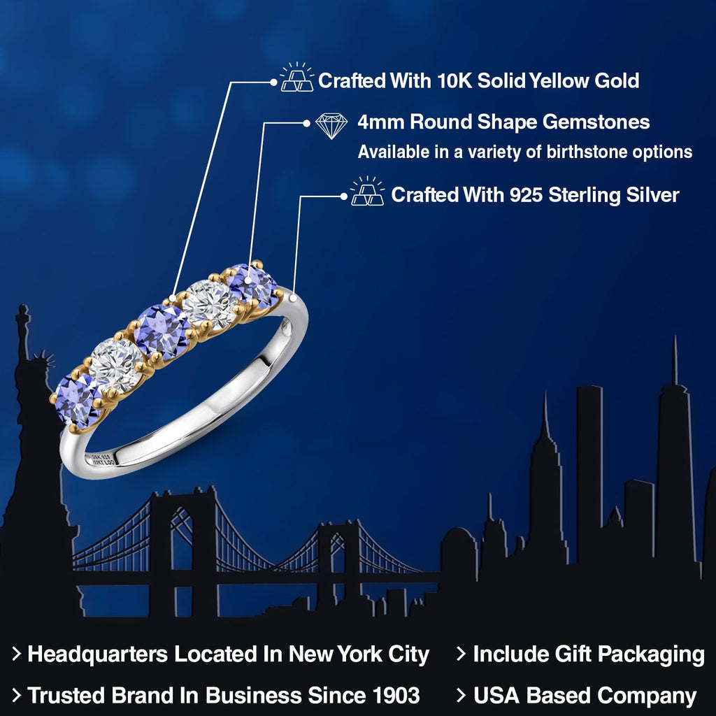 925 Silver and 10K Yellow Gold Blue Tanzanite and Lab Grown Diamond Wedding-Bands Ring For Women | 1.44 Cttw | Round 4MM | Gemstone December Birthstone