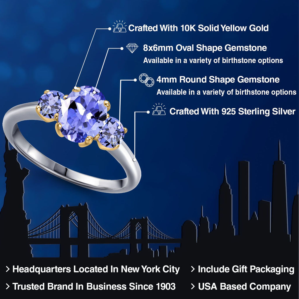 2-Tone Engagement Ring For Women | 925 Silver and 10K Yellow Gold | Gemstone Birthstone | 6MM Cushion Cut | Wedding Anniversary Promise Ring | Available In Size 5, 6, 7, 8, 9