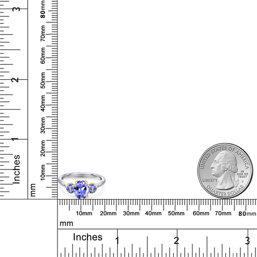 MEASUREMENTS: 8x6mm Oval Heat-Treated Blue Tanzanite, 4x4mm Round Heat-Treated Blue Tanzanite. Total Carat Weight is 1.76 cttw