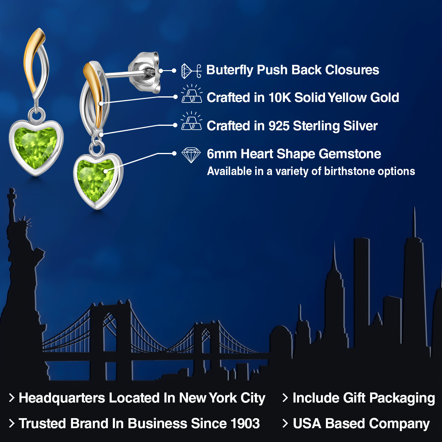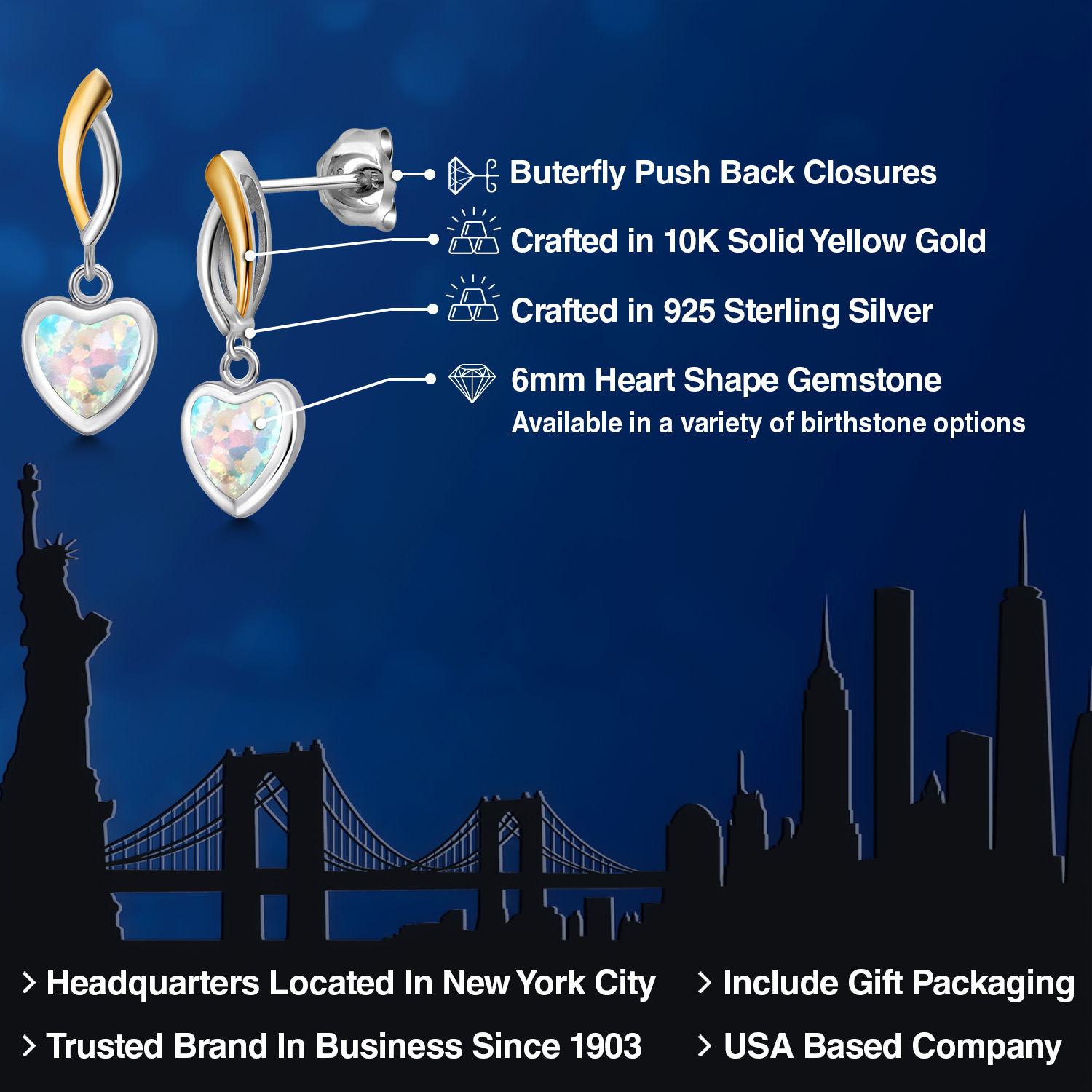 HEART-SHAPED GEMSTONE ELEGANCE: These exquisite dangle earrings present a charming 6MM heart-shaped gemstone, perfectly embracing your chosen birthstone for a personal touch. Each gem, a marvel of nature, is painstakingly cut to enhance its clarity and brilliance, ensuring it dazzles with every turn. The inclusion of birthstone options lets the wearer celebrate their unique story, making these earrings a meaningful addition to any fine jewelry collection.