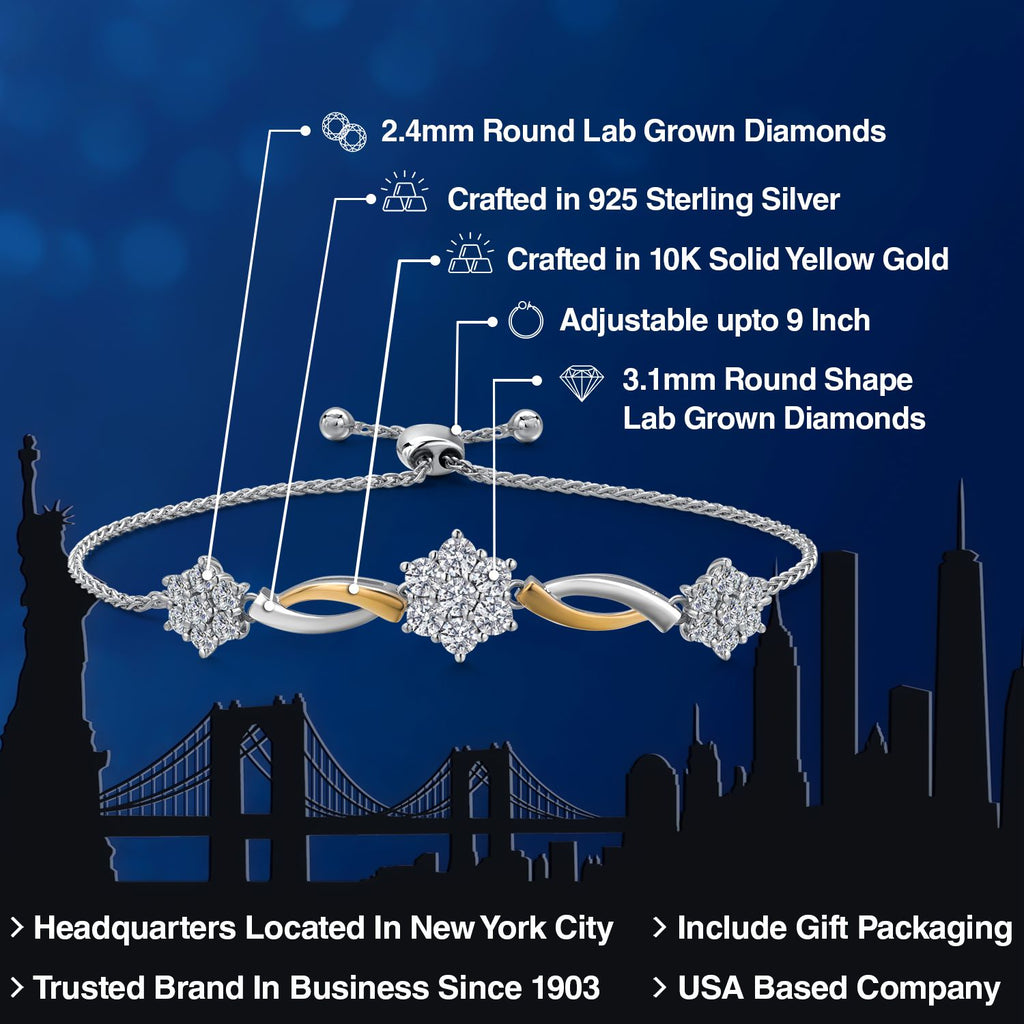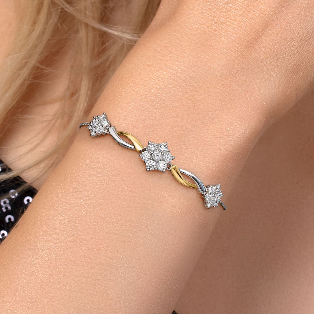 EXQUISITE FLOWER DESIGN WITH LAB GROWN DIAMONDS: This stunning bracelet features a delicate flower design, beautifully adorned with sparkling lab-grown diamonds totaling 1.70 Cttw, for a truly captivating and luxurious display of brilliance.