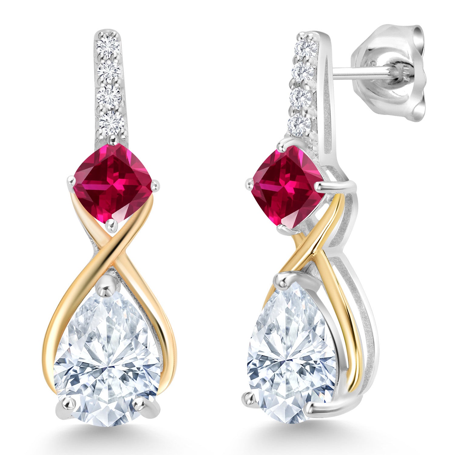 RADIANT PAIR OF GEMSTONES: Showcasing an exquisite 8x6mm pear-shaped gemstone and a perfectly complementing 4mm cushion-cut stone, these earrings are a masterpiece of symmetry and brilliance. Available in variations featuring moissanite or matching gemstones in both shapes, this design provides versatility, letting you customize your earrings to match your style and preference with unparalleled elegance.