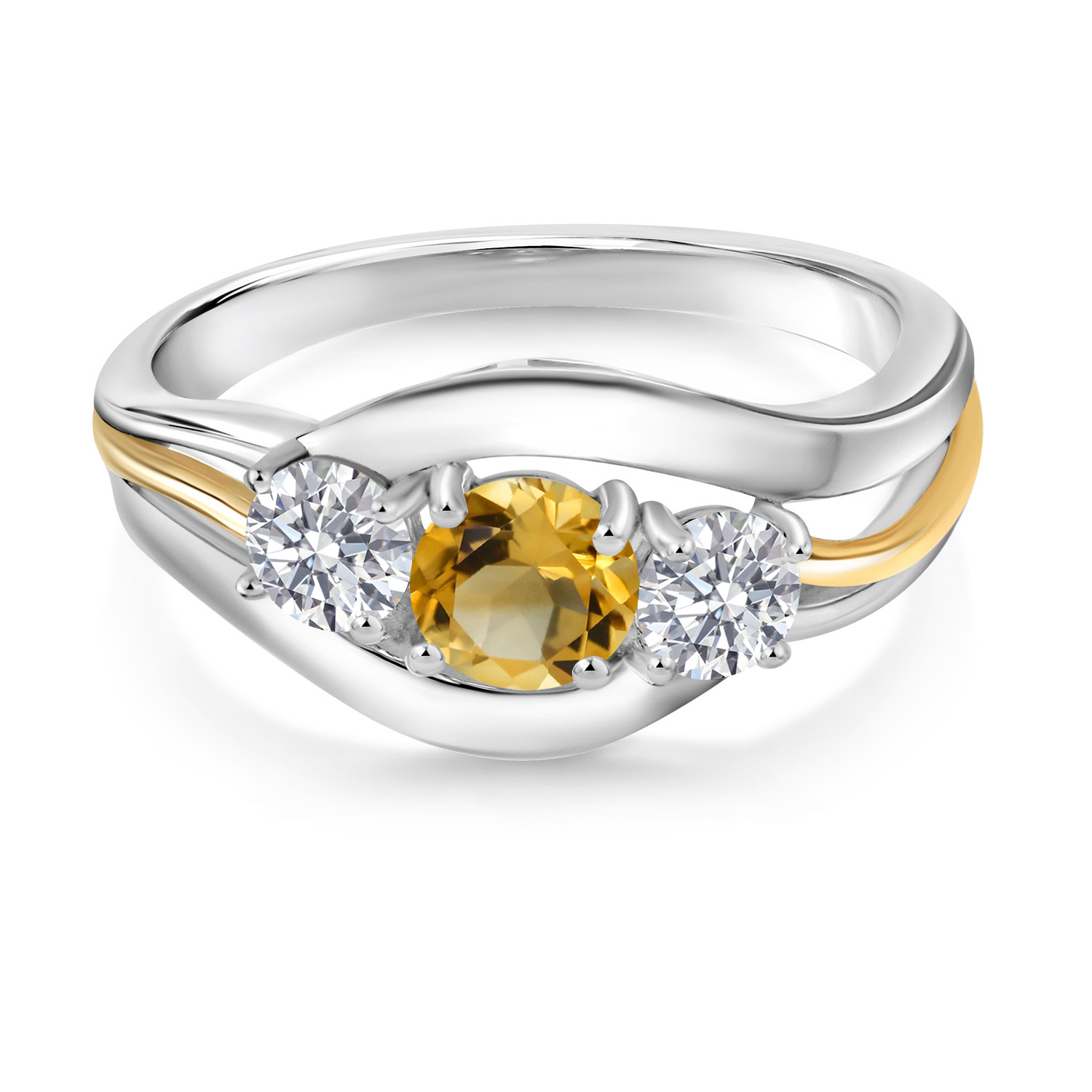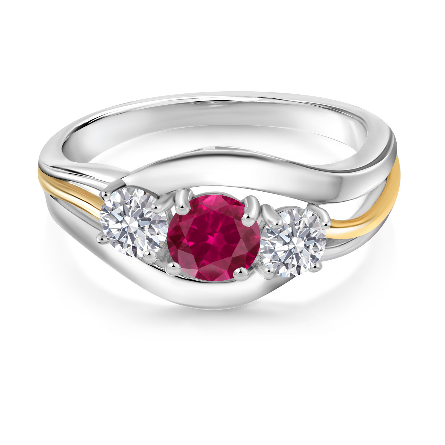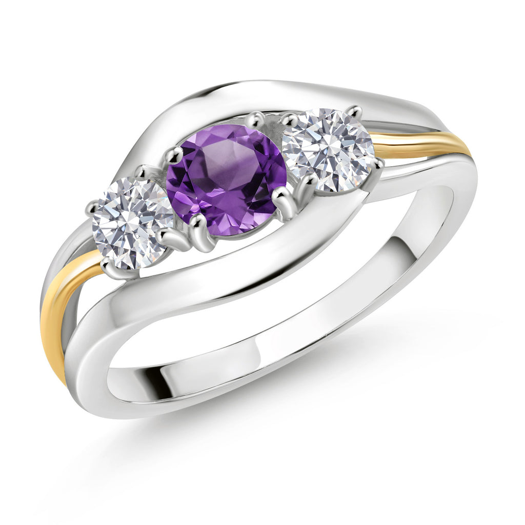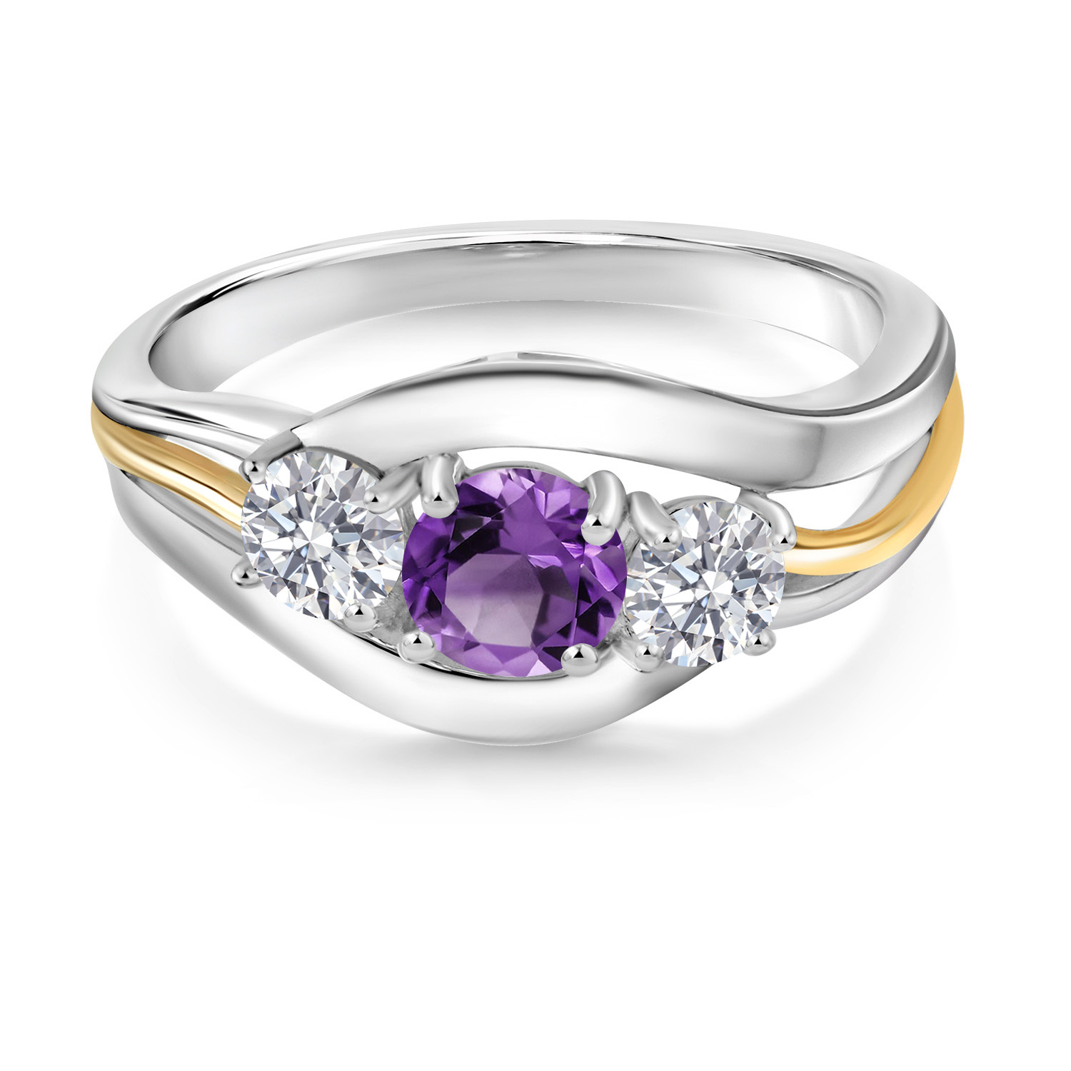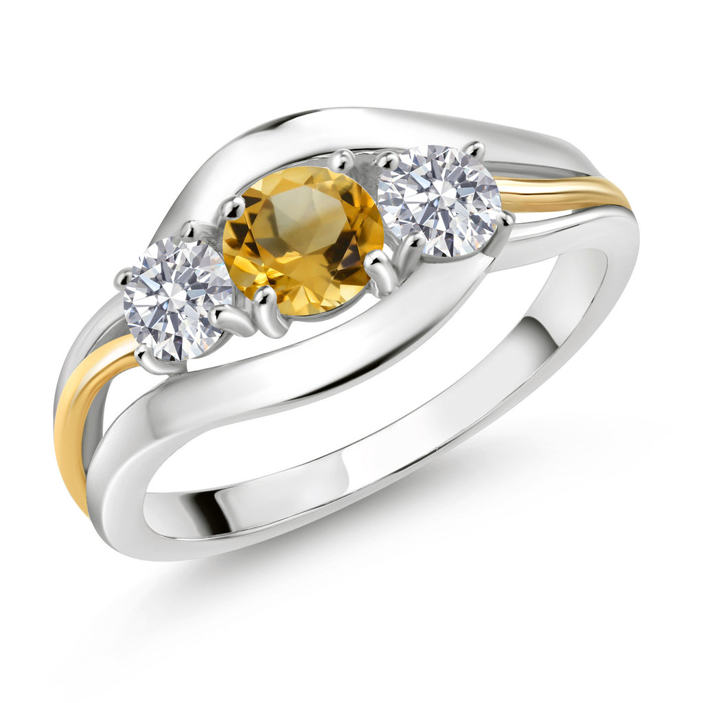 2-Tone Engagement Ring For Women | 925 Silver and 10K Yellow Gold | Gemstone Birthstone | 6MM Cushion Cut | Wedding Anniversary Promise Ring | Available In Size 5, 6, 7, 8, 9