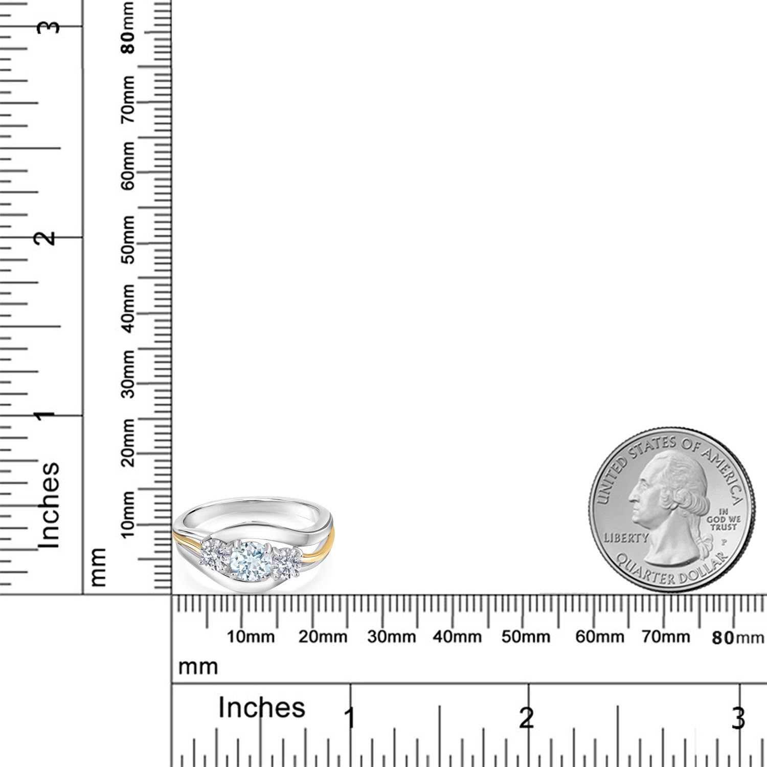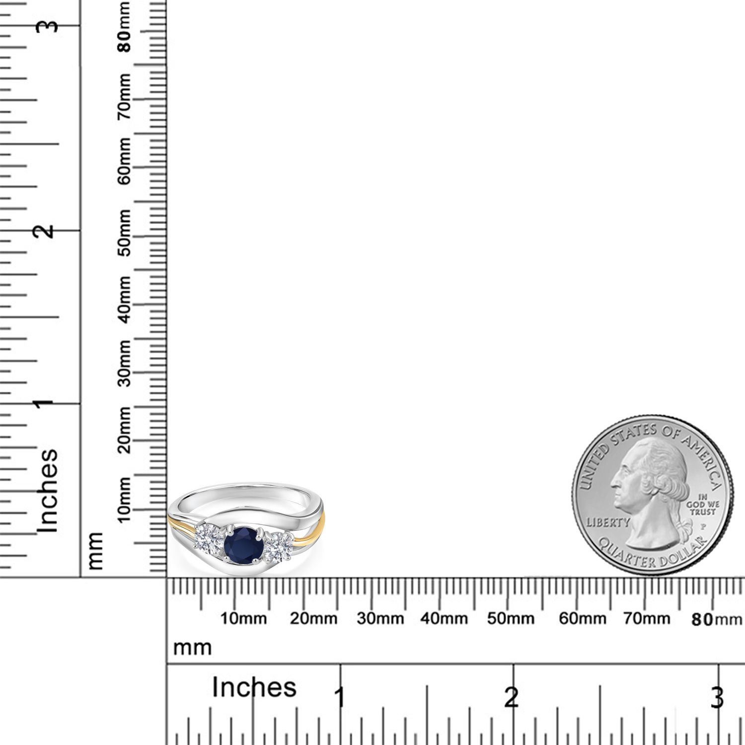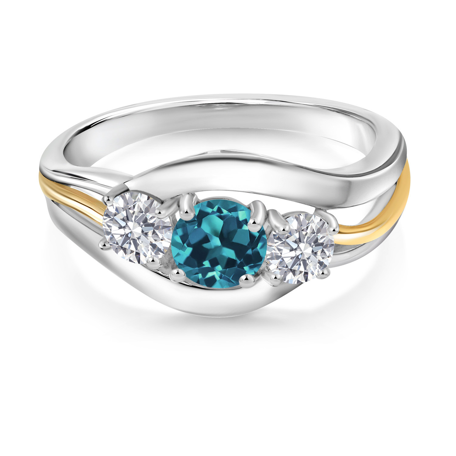 MEASUREMENTS: 5x5mm Round Coated Persian Blue Moissanite, 4x4mm Round E - F Lab Grown Diamond. Total Carat Weight is 1.04 cttw