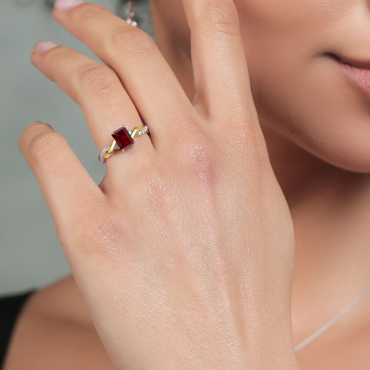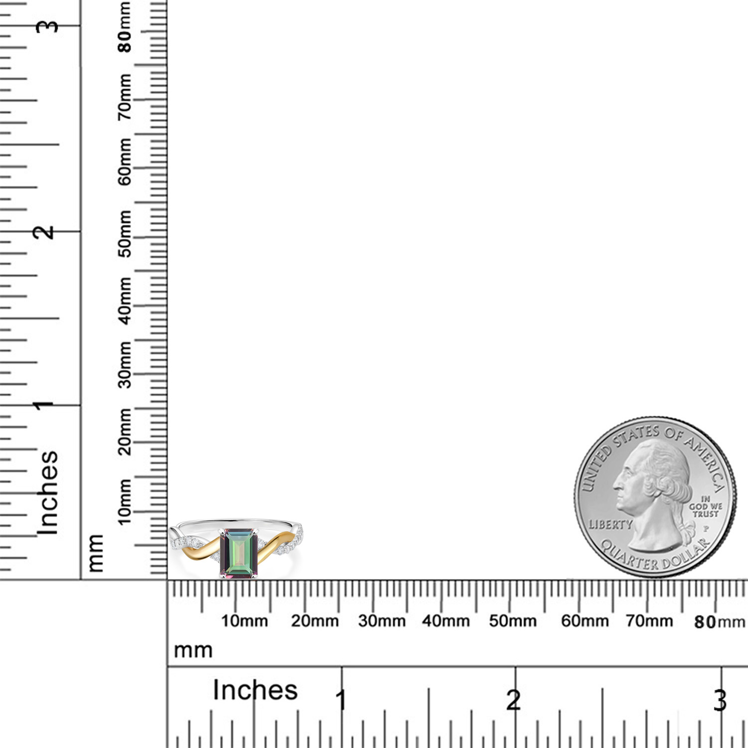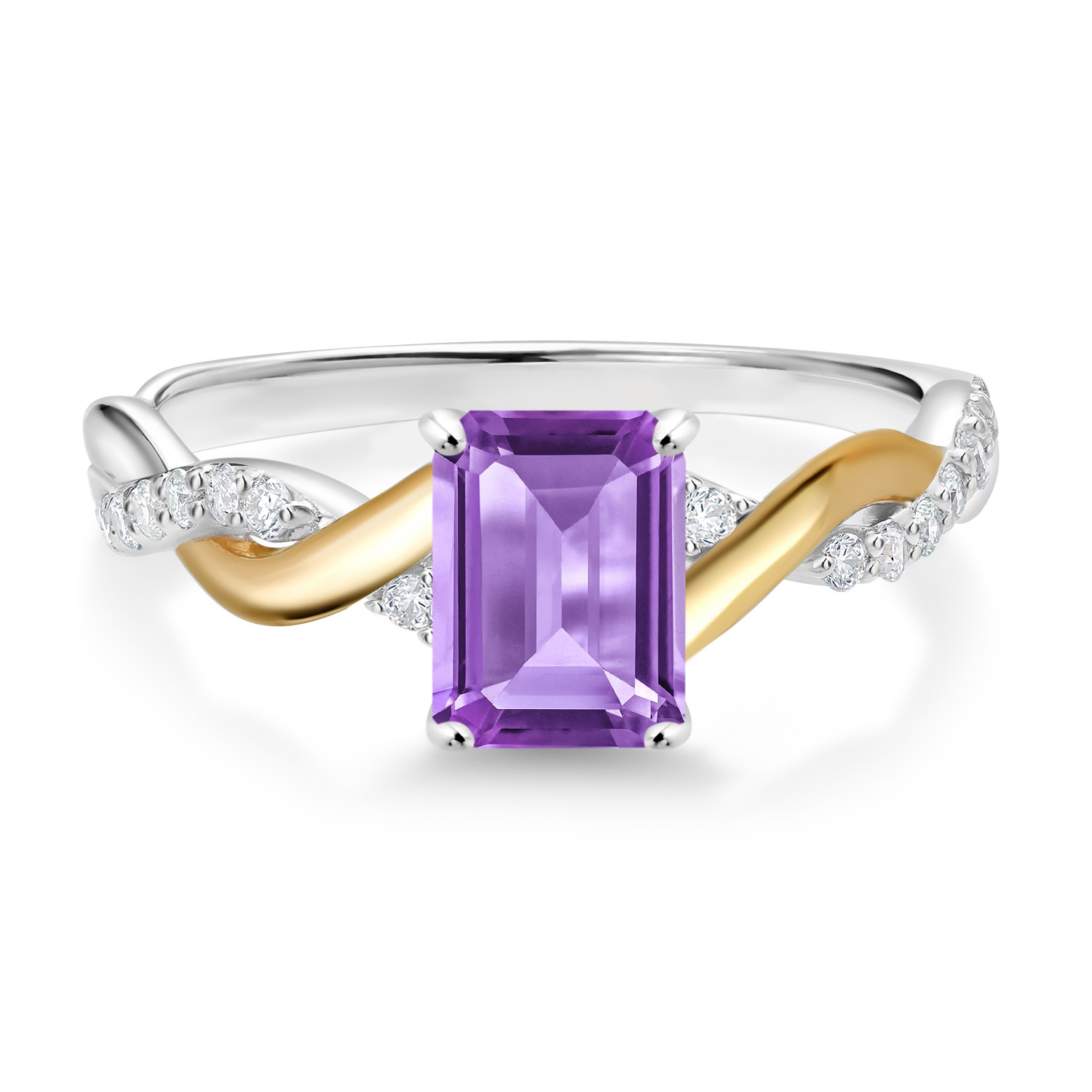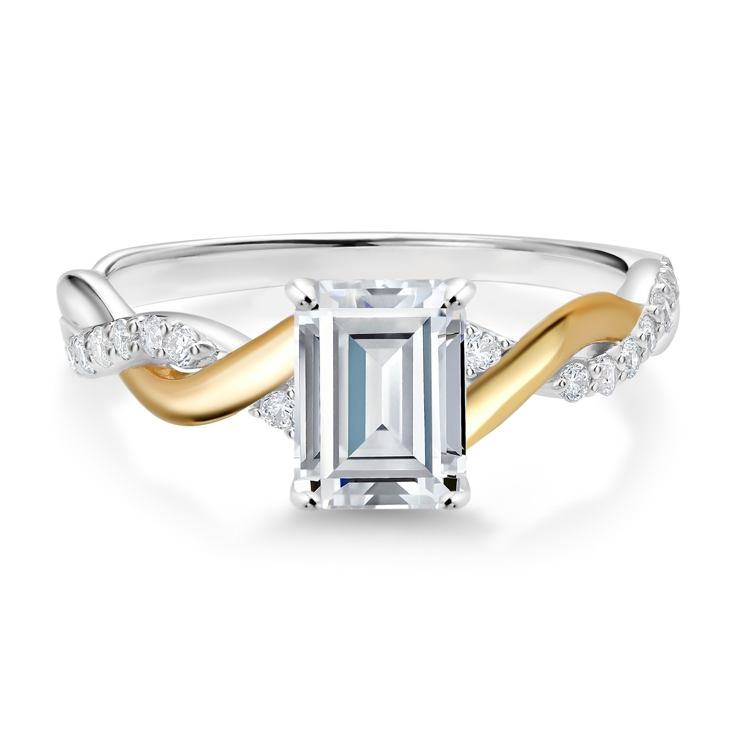 ELEGANT EMERALD CUT GEMSTONE: This exquisite ring features a 7X5MM emerald-cut gemstone birthstone, set in a beautiful two-tone setting of 925 sterling silver and 10K yellow gold. The precise cut of the gemstone maximizes its clarity and color, making it a stunning focal point of this engagement ring.