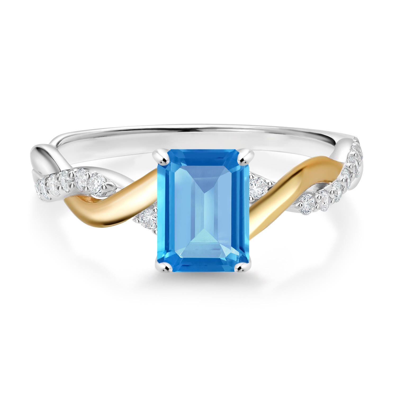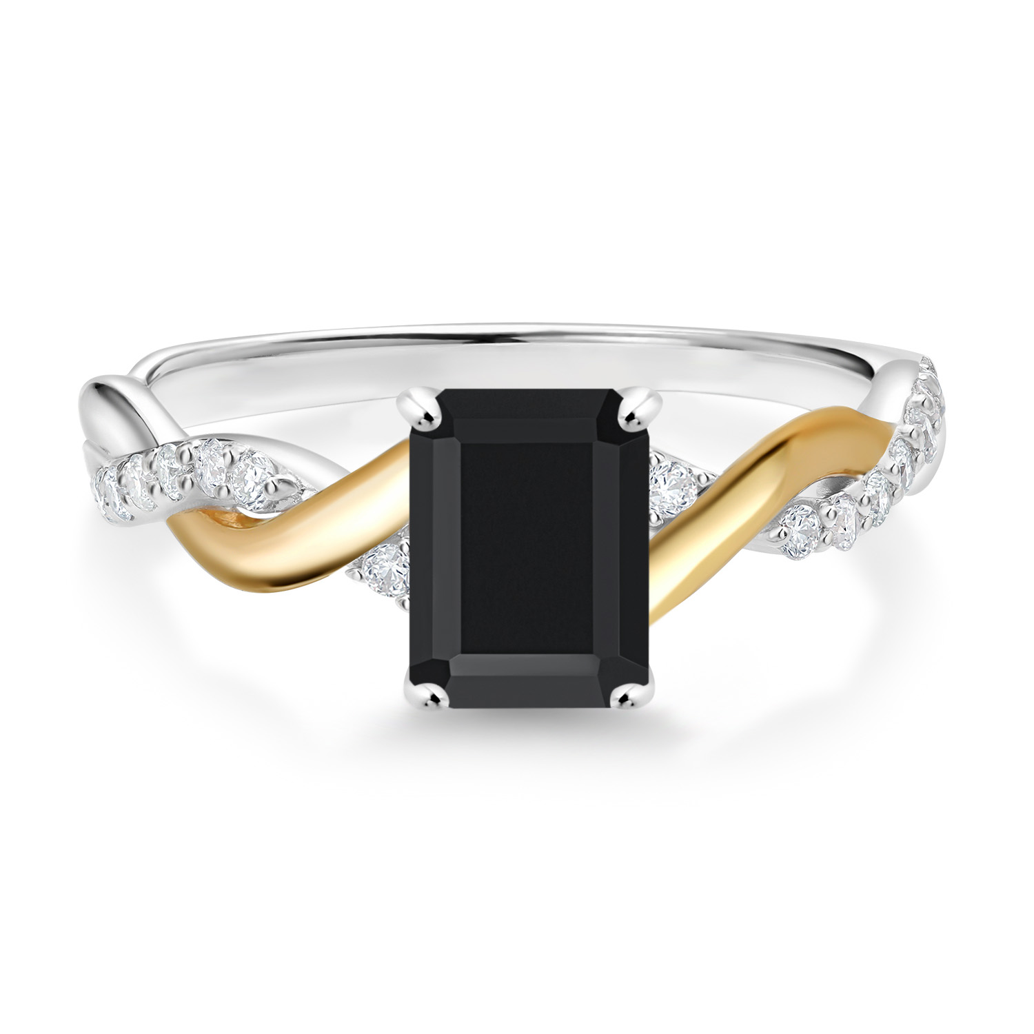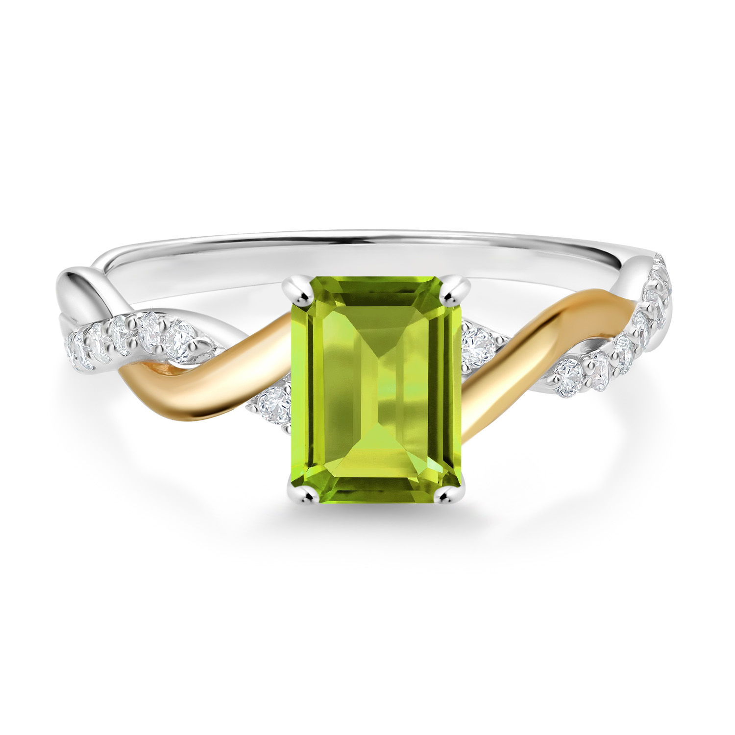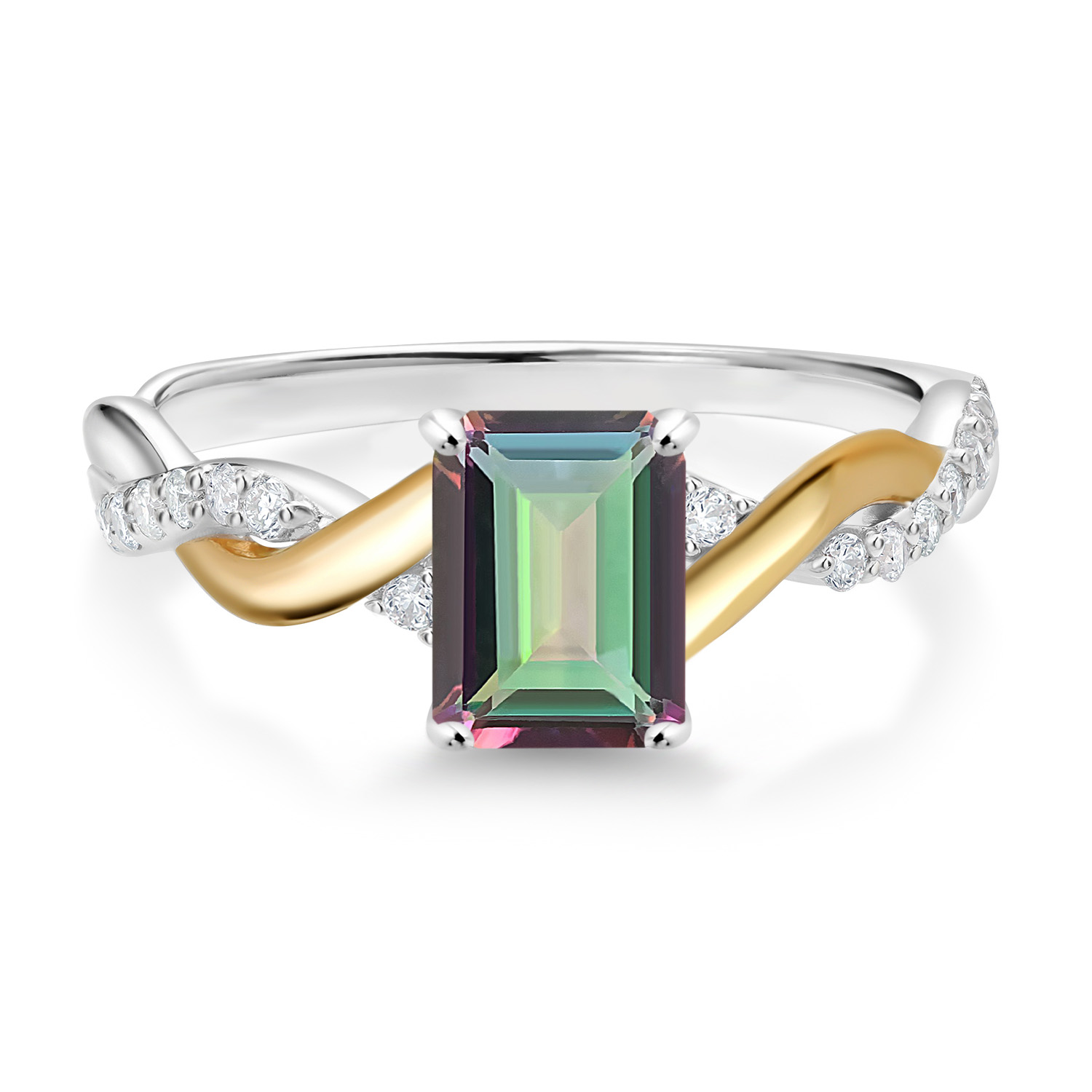 ELEGANT EMERALD CUT GEMSTONE: This exquisite ring features a 7X5MM emerald-cut gemstone birthstone, set in a beautiful two-tone setting of 925 sterling silver and 10K yellow gold. The precise cut of the gemstone maximizes its clarity and color, making it a stunning focal point of this engagement ring.
