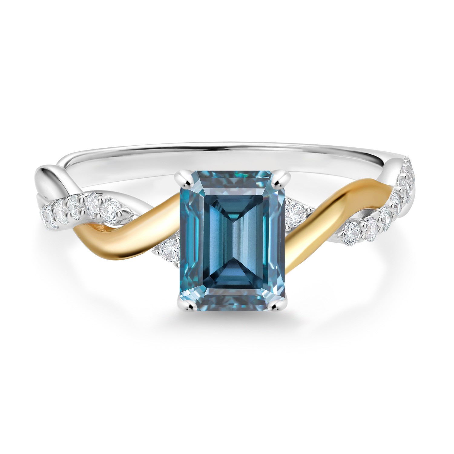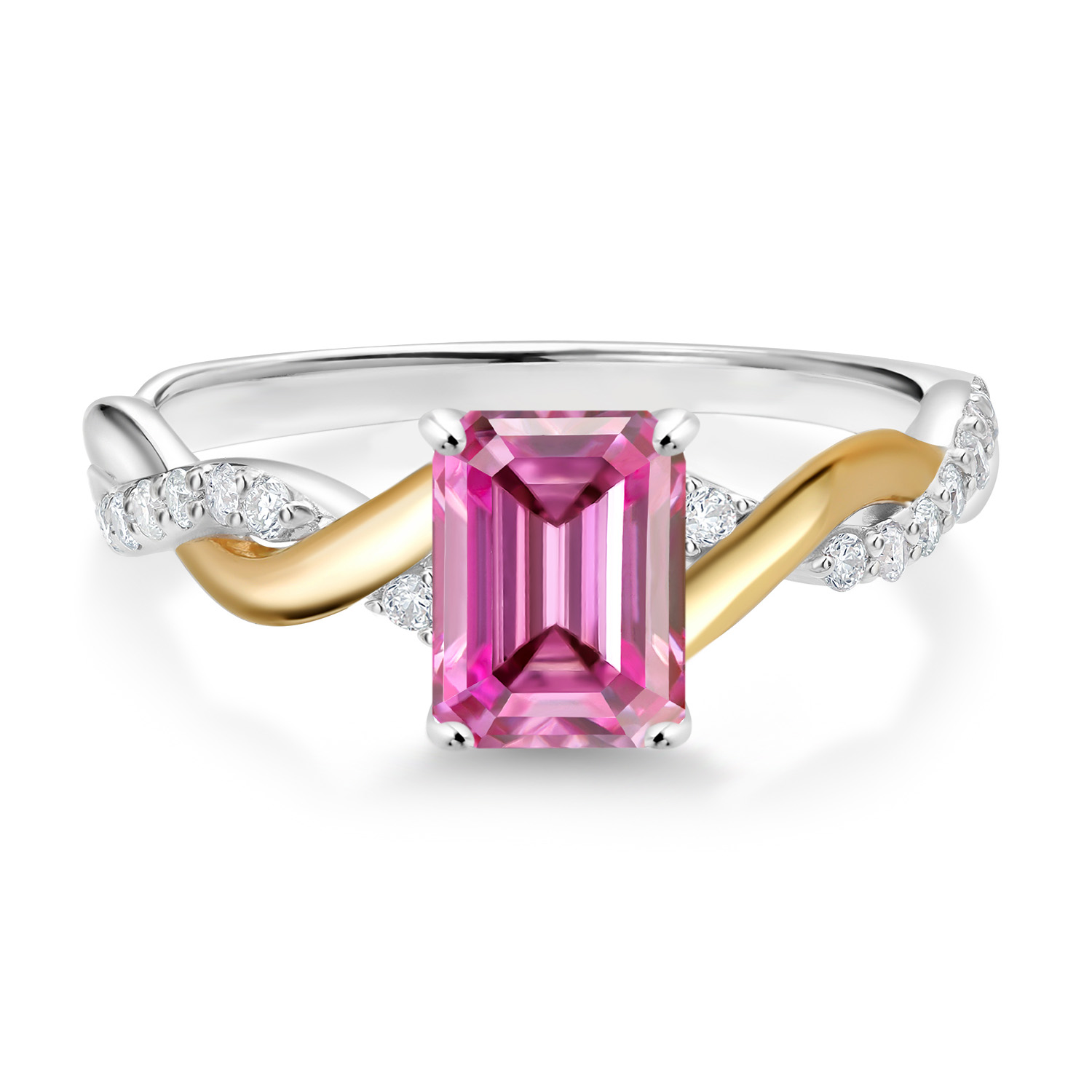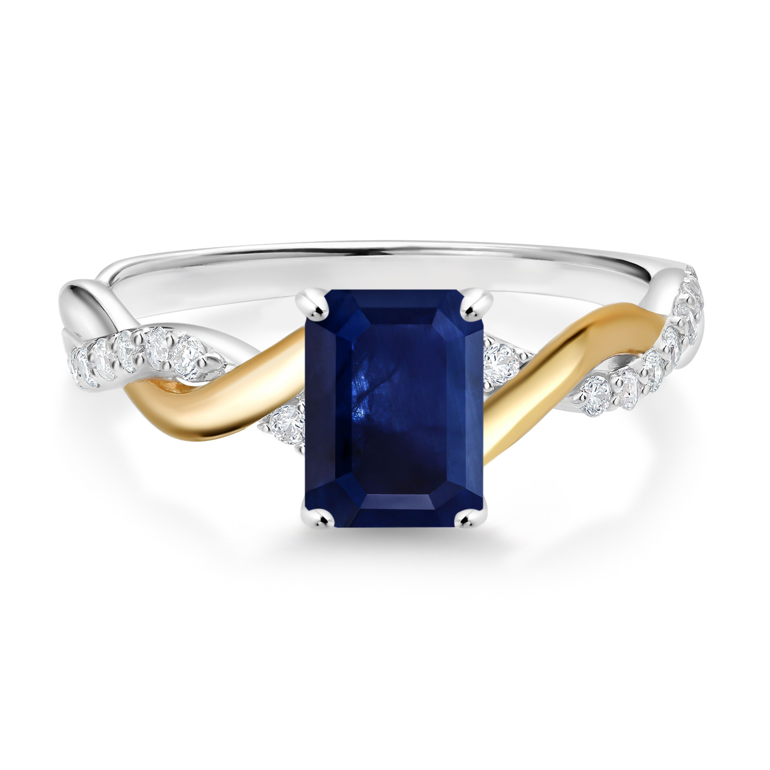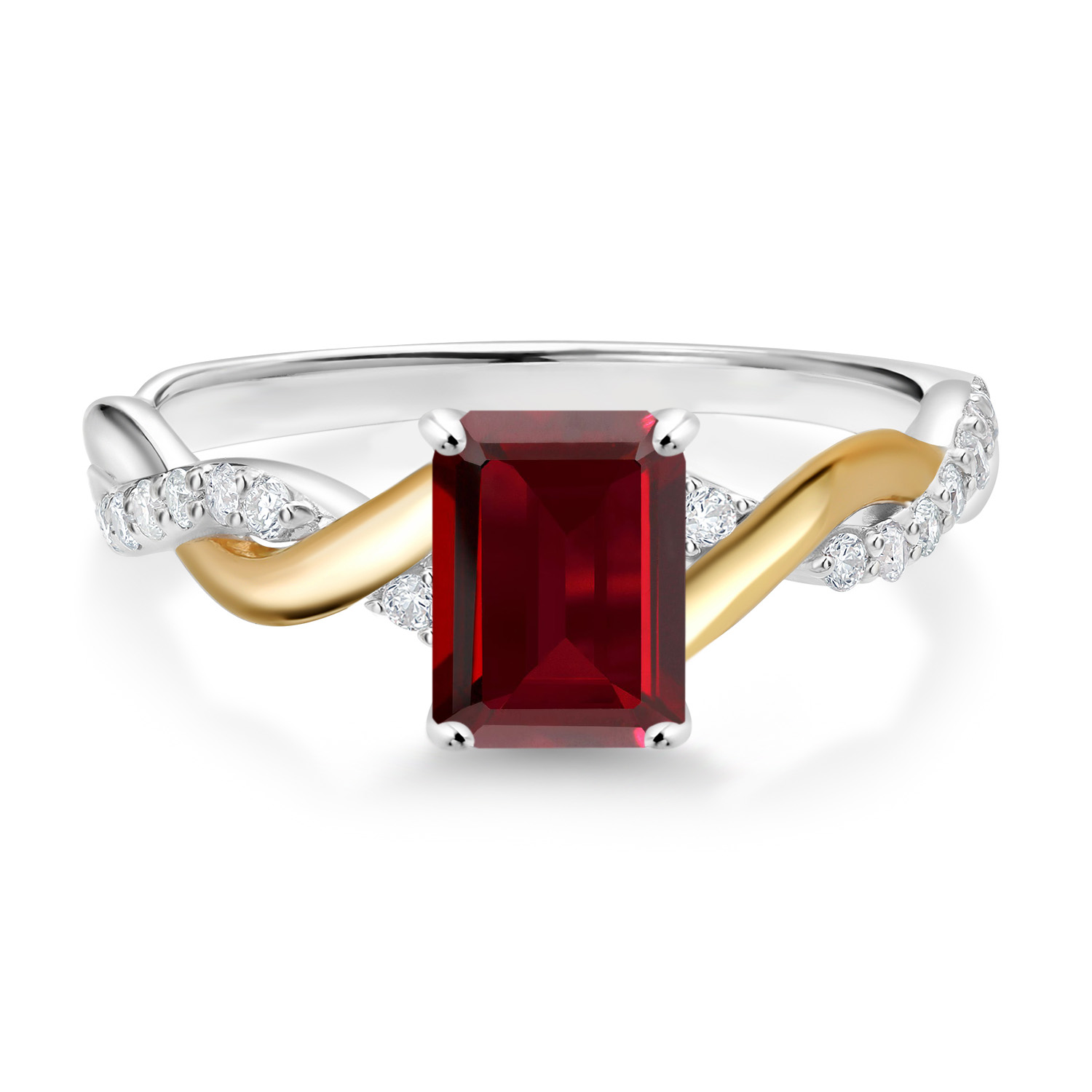ELEGANT EMERALD CUT GEMSTONE: This exquisite ring features a 7X5MM emerald-cut gemstone birthstone, set in a beautiful two-tone setting of 925 sterling silver and 10K yellow gold. The precise cut of the gemstone maximizes its clarity and color, making it a stunning focal point of this engagement ring.