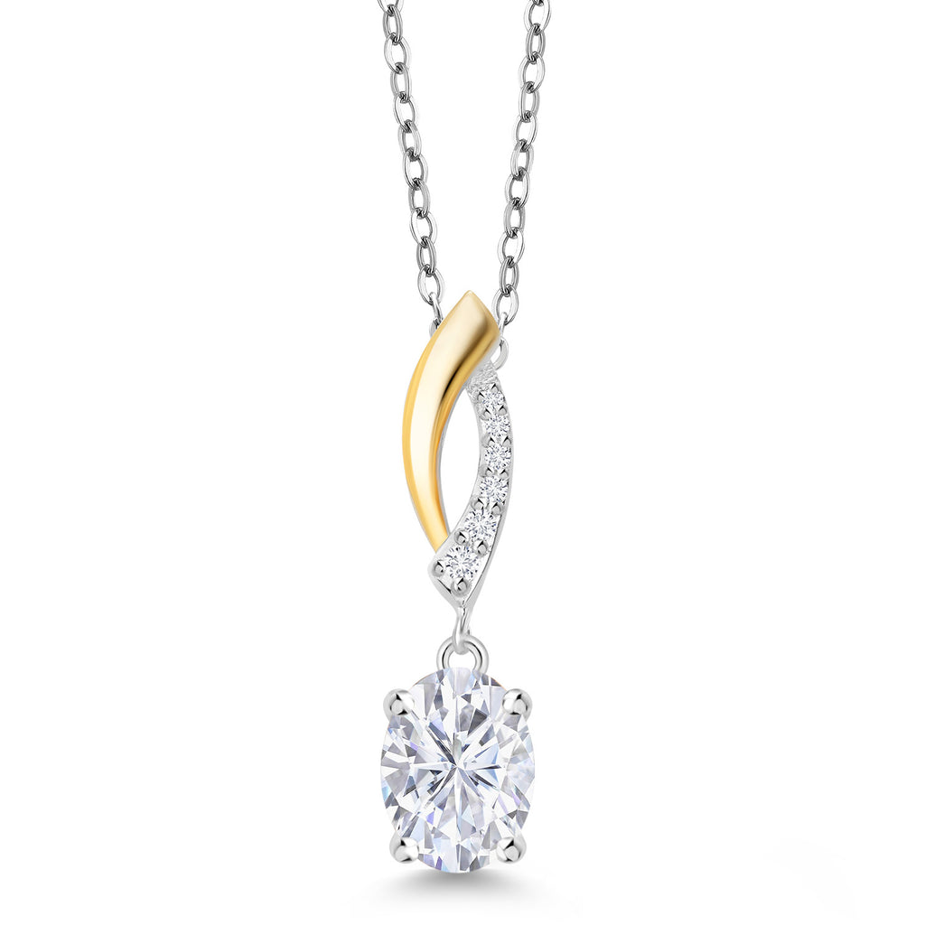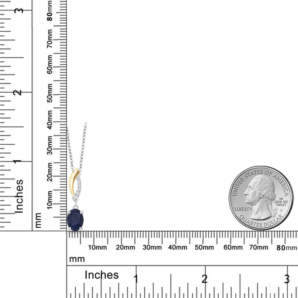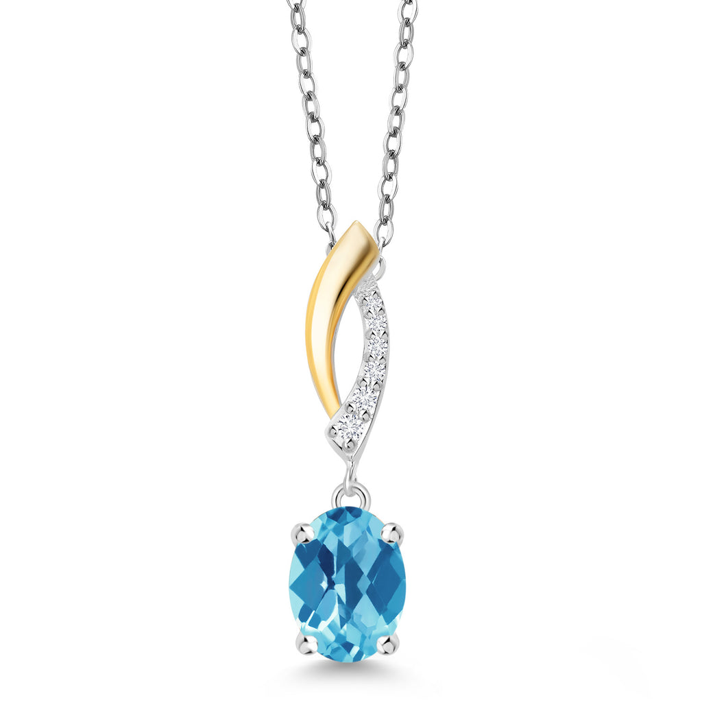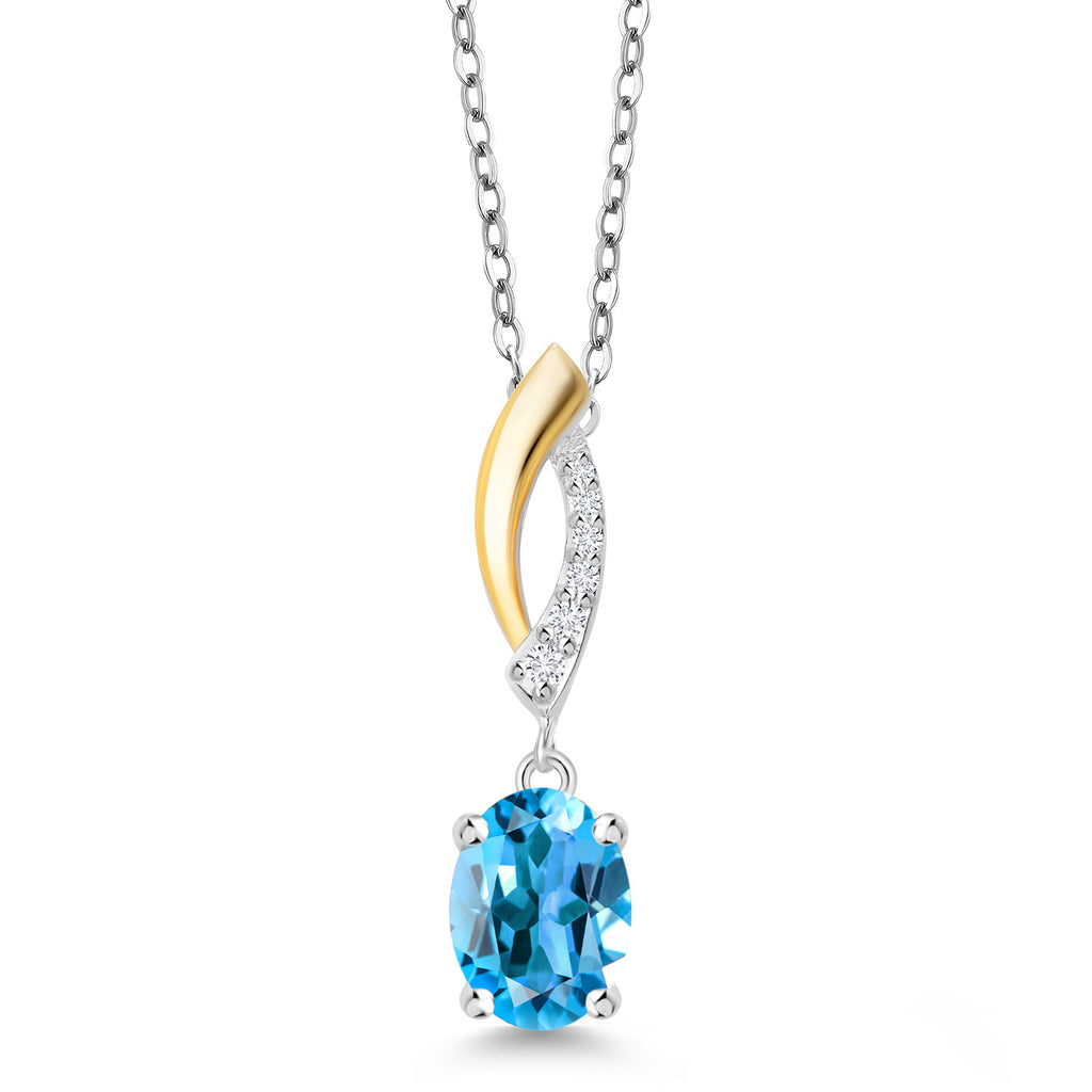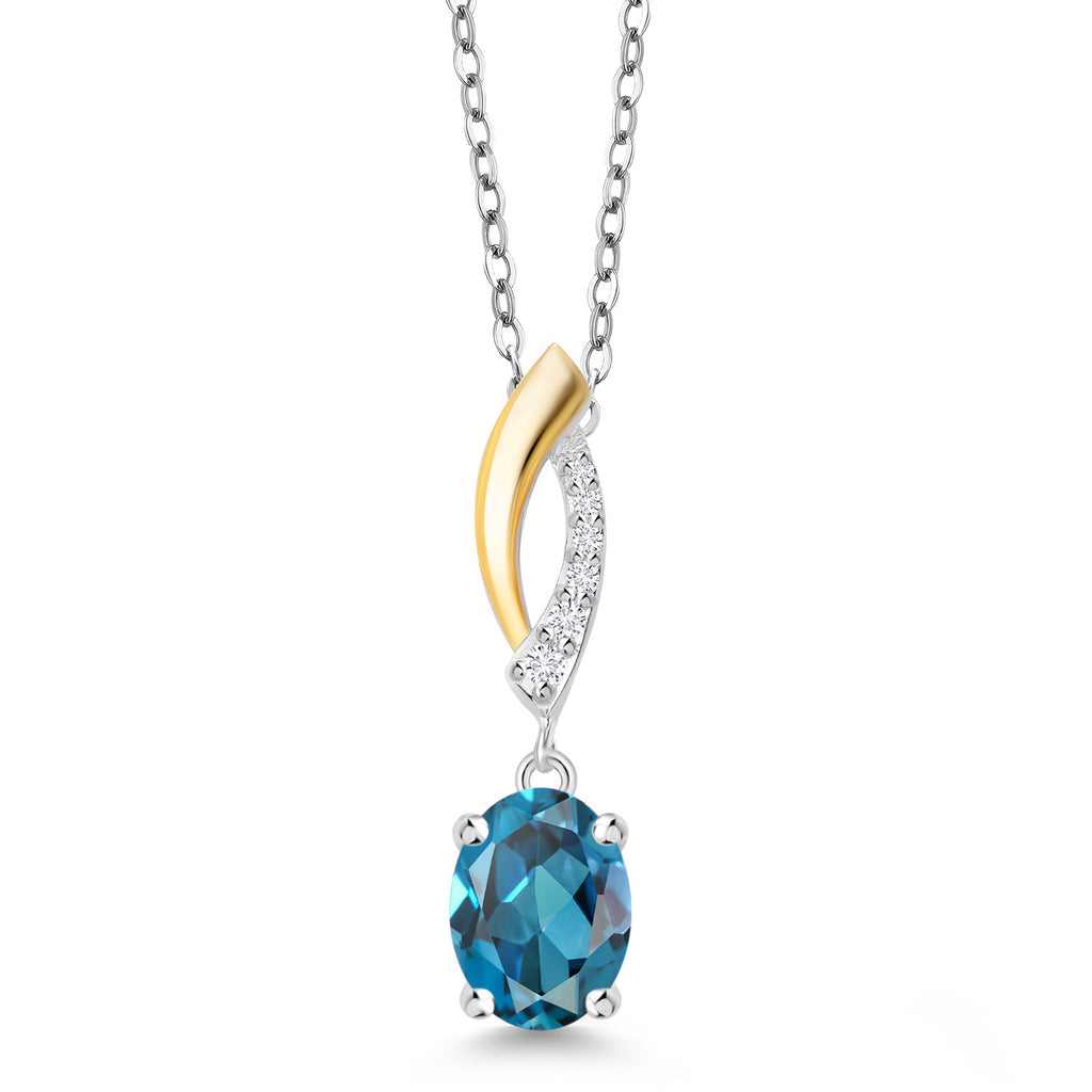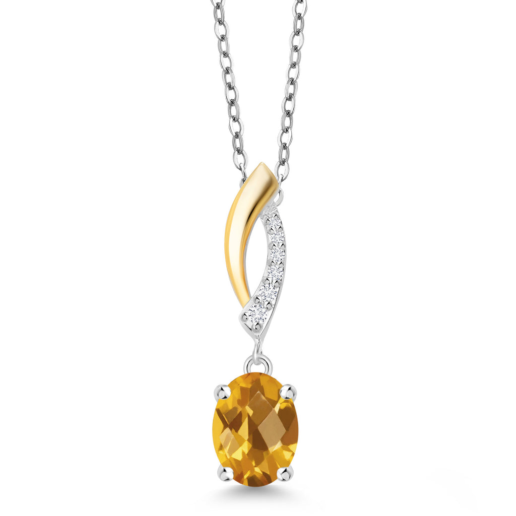 925 Silver and 10K Yellow Gold Gemstone Birthstone and Lab Grown Diamond Pendant Necklace for Women | Oval 8X6MM and Round 1.2MM Accents | Elegant Two-Tone Twisted Drop | 18 Inch Chain