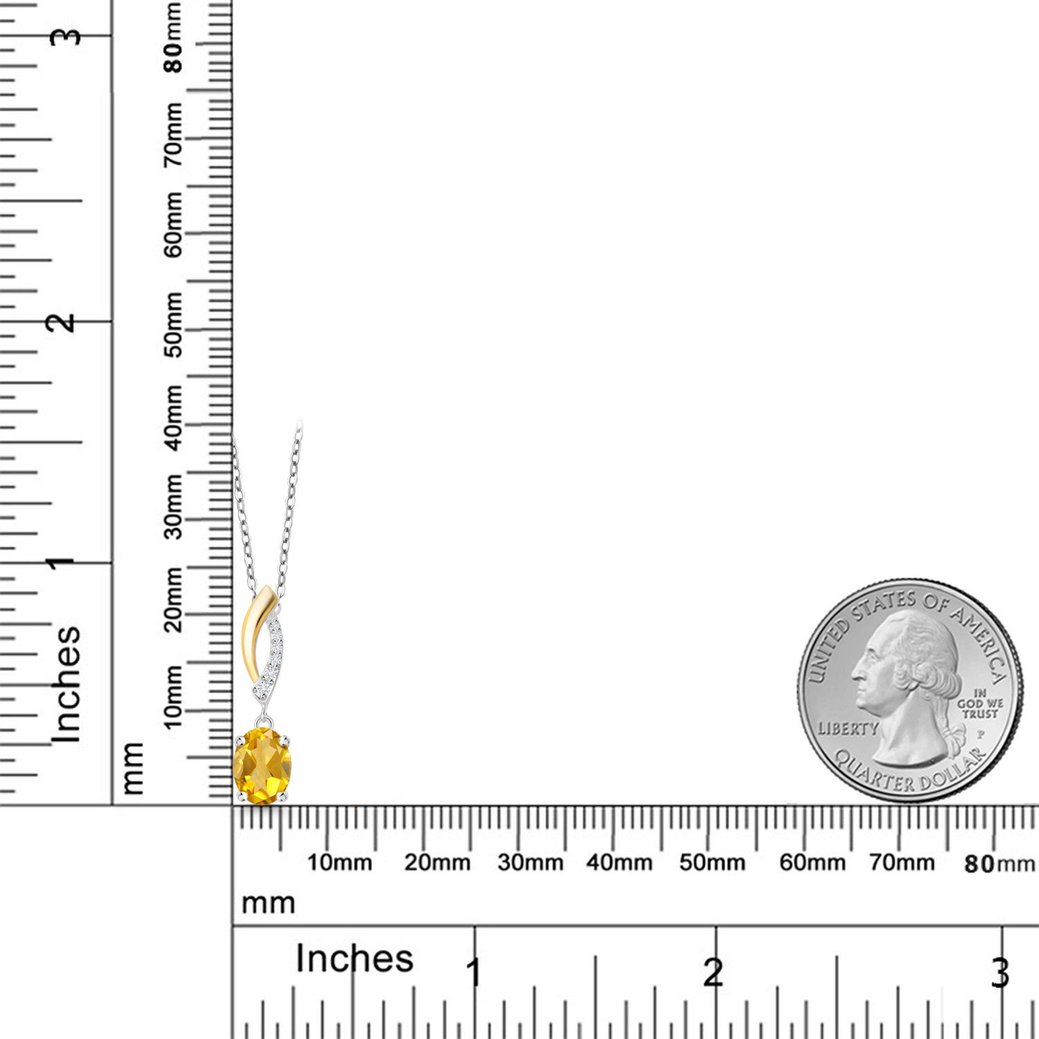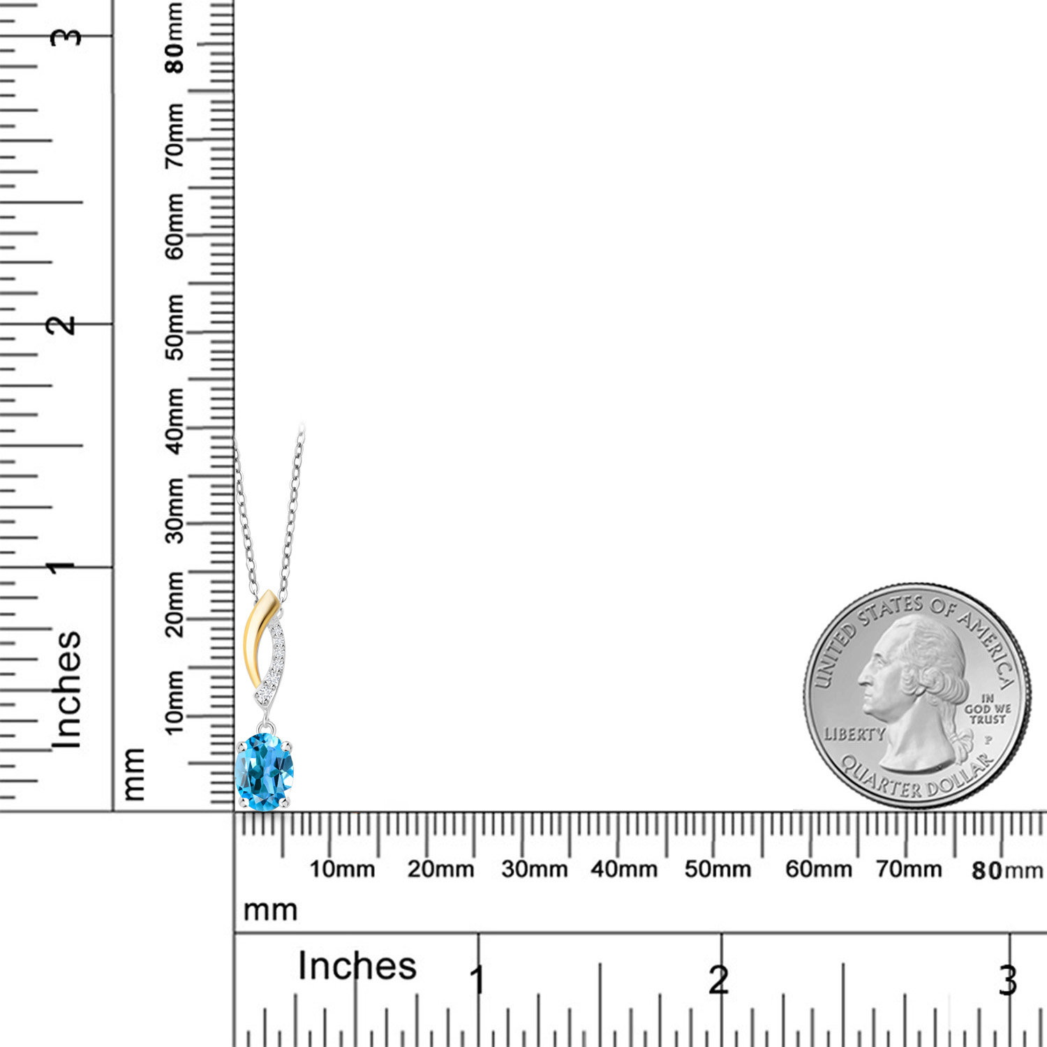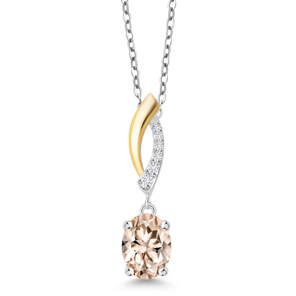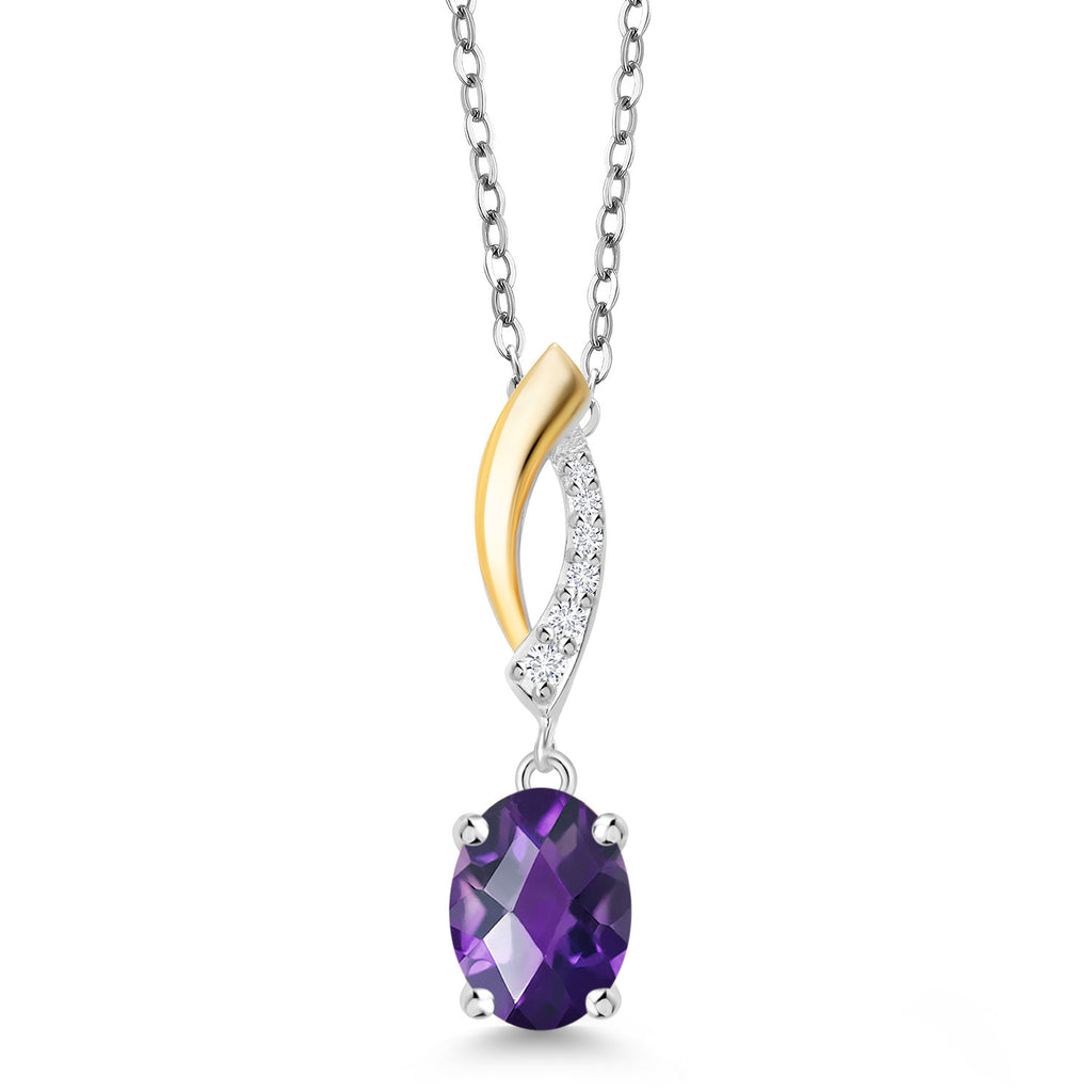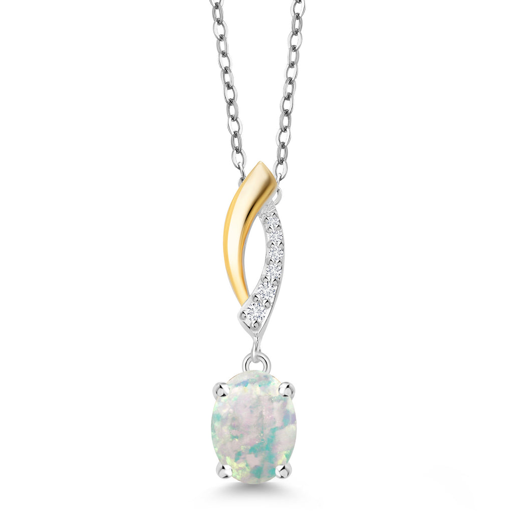 925 Silver and 10K Yellow Gold Gemstone Birthstone and Lab Grown Diamond Pendant Necklace for Women | Oval 8X6MM and Round 1.2MM Accents | Elegant Two-Tone Twisted Drop | 18 Inch Chain