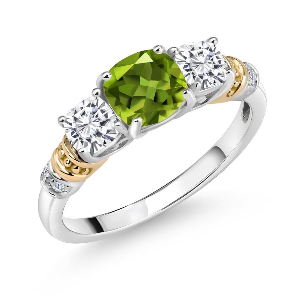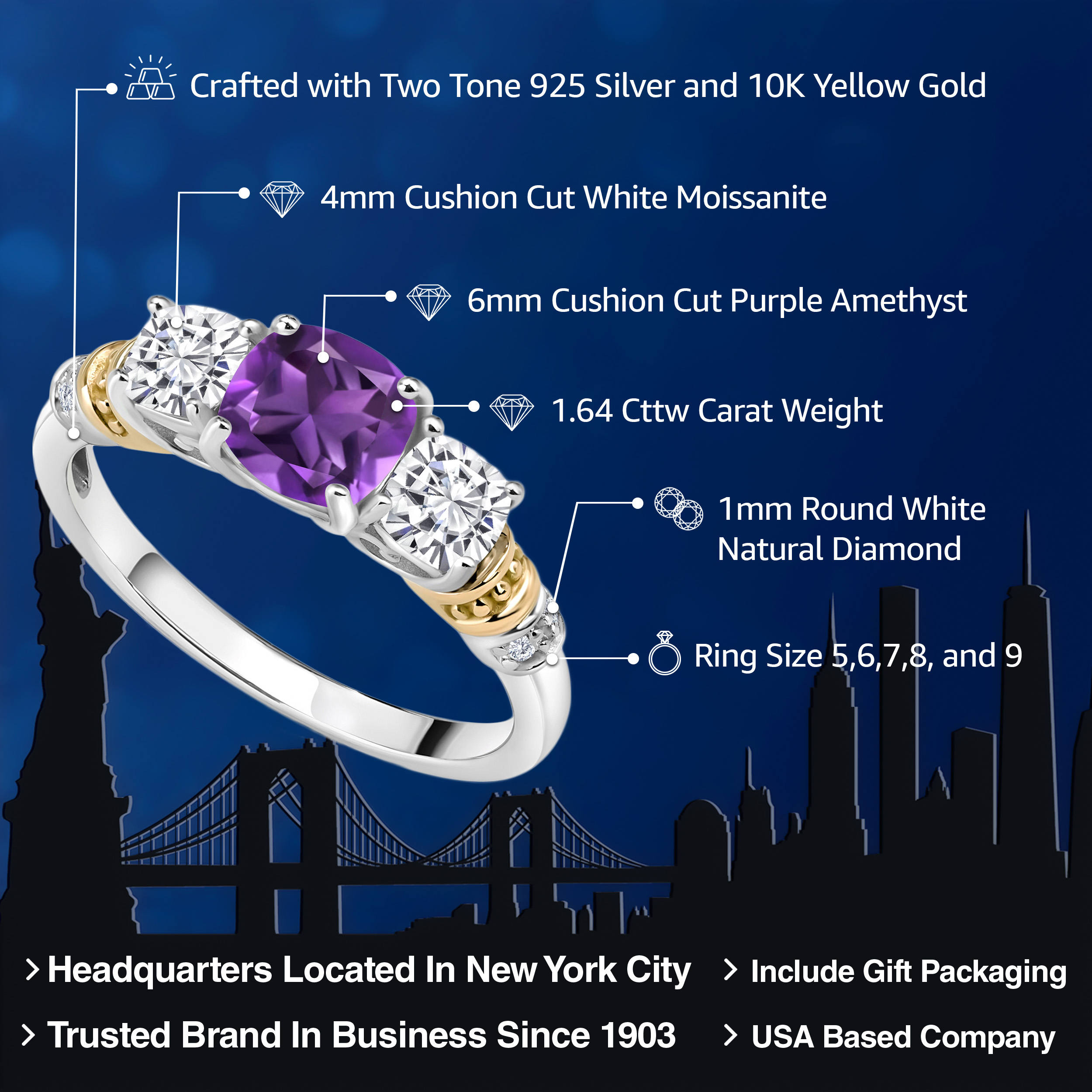 2-Tone Engagement Ring For Women | 925 Silver and 10K Yellow Gold | Gemstone Birthstone | 6MM Cushion Cut | Wedding Anniversary Promise Ring | Available In Size 5, 6, 7, 8, 9