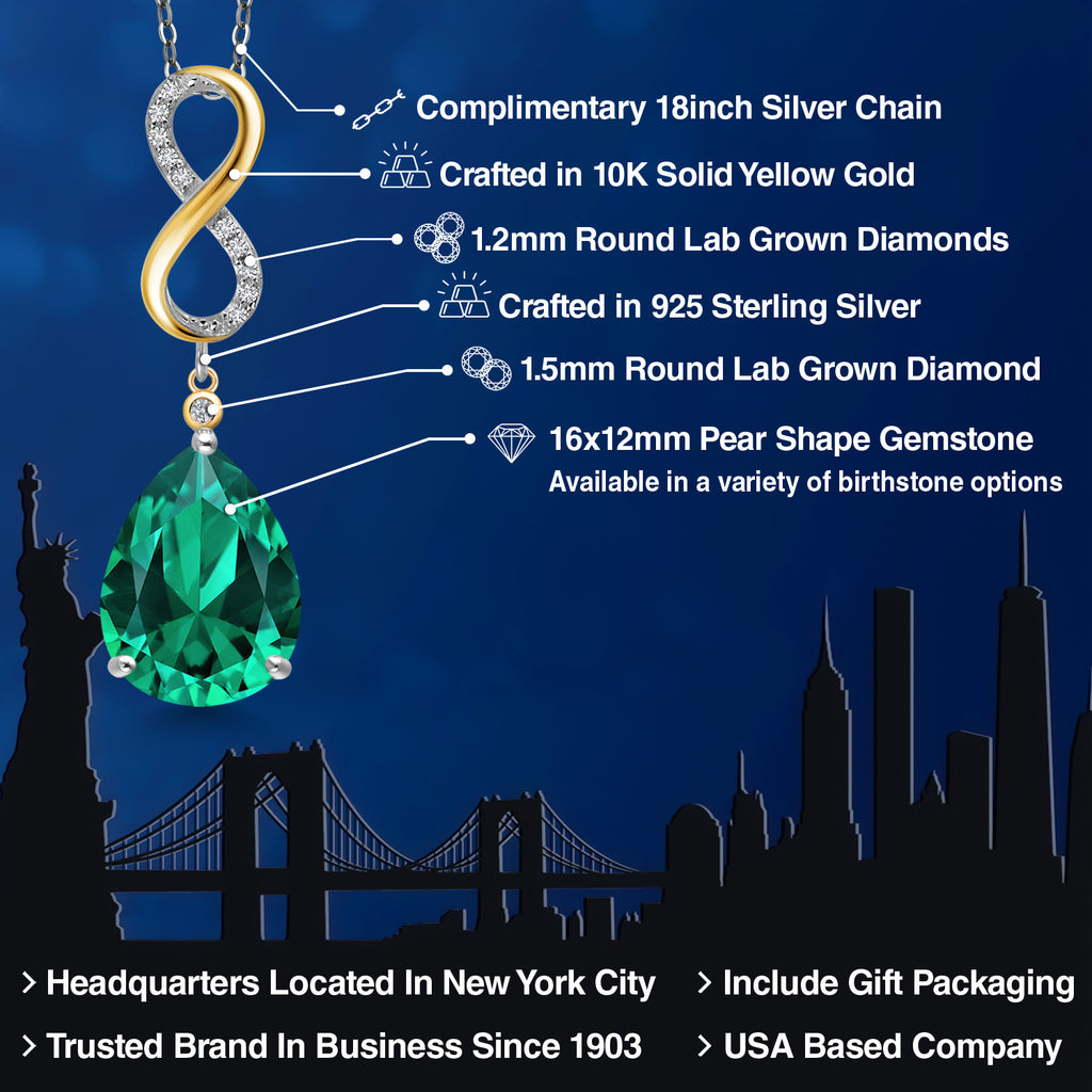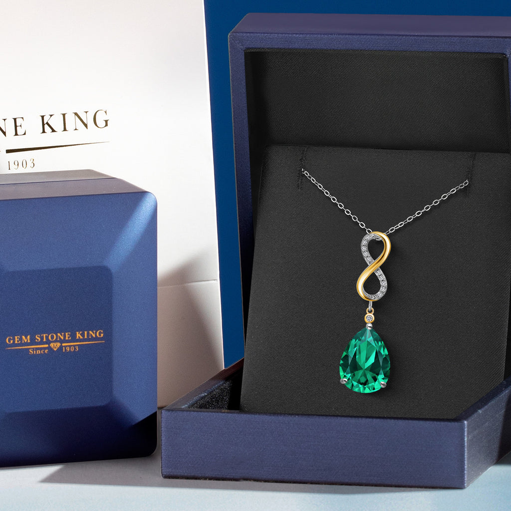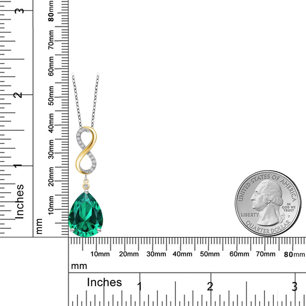 925 Silver and 10K Yellow Gold Green Nano Emerald and White Lab Grown Diamond Pendant Necklace for Women | 8.27 Cttw | Gemstone May Birthstone | Pear Shape 16X12MM | With 18 Inch Chain
