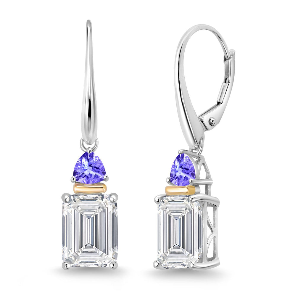 925 Silver and 10K Yellow Gold IGI Certified Lab Grown Diamond & Blue Tanzanite Drop Dangle Earrings For Women | 6.54 Cttw | Emerald Cut Diamonds Each 3 Ct | E-F Color | VS1-VS2 Clarity